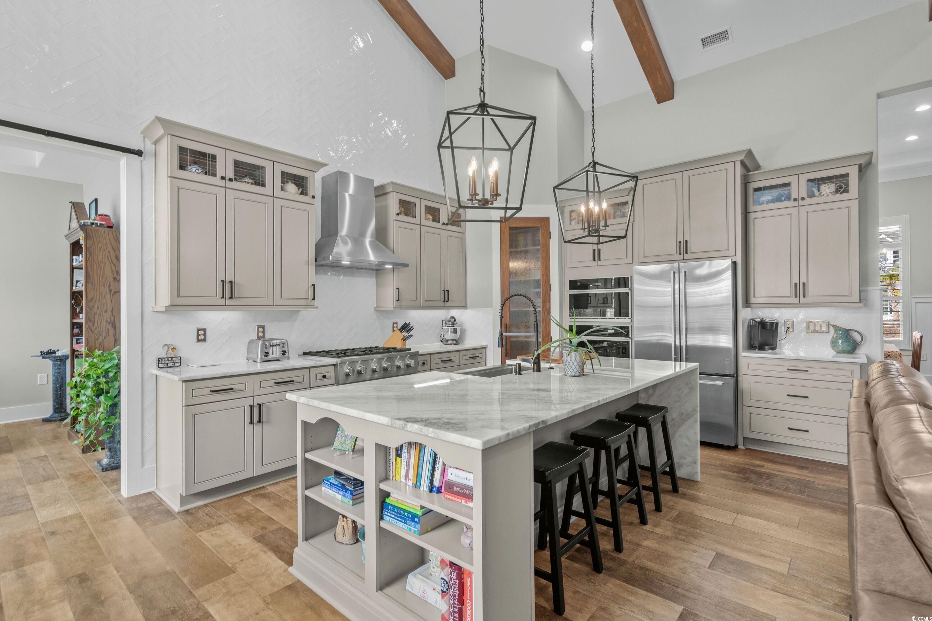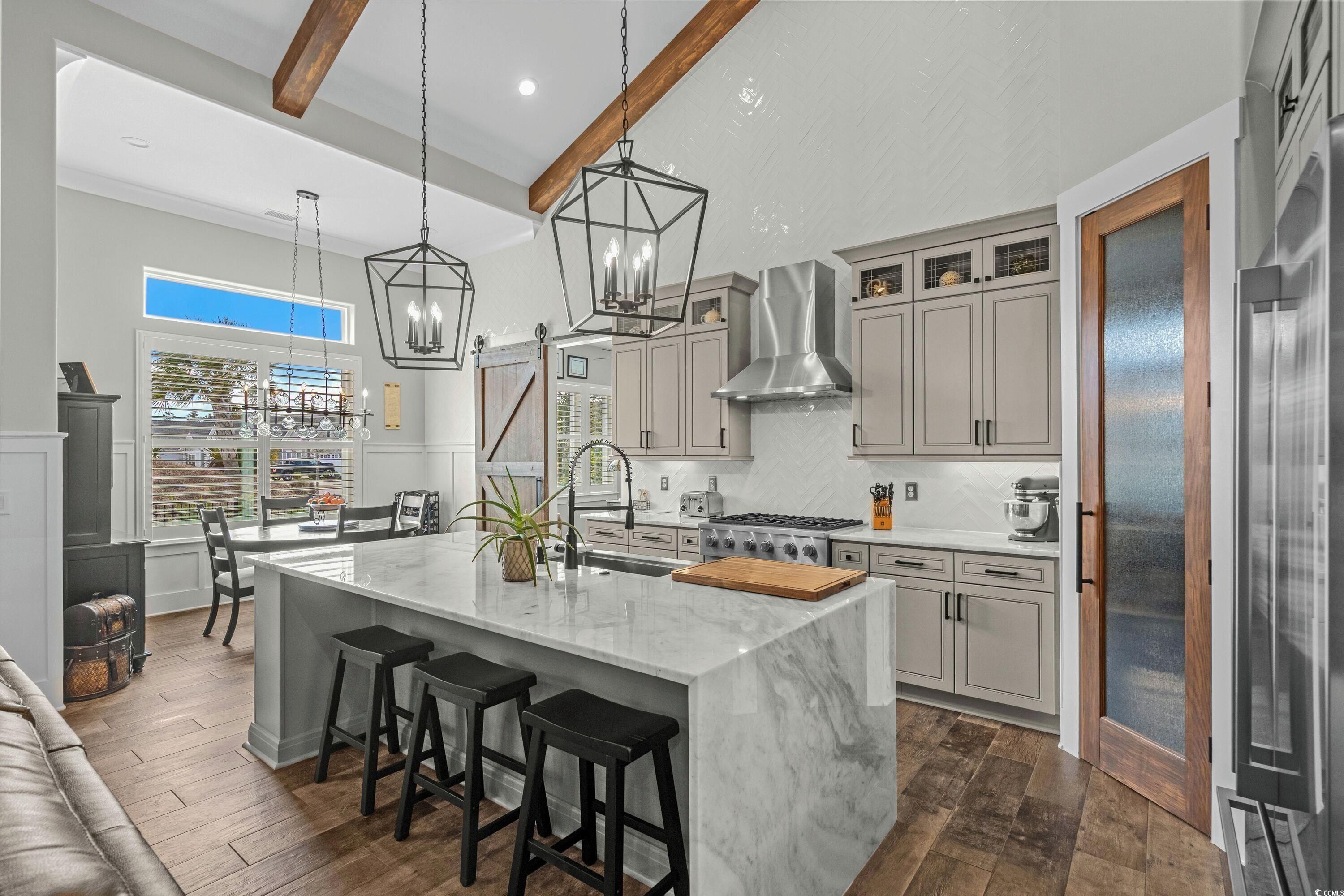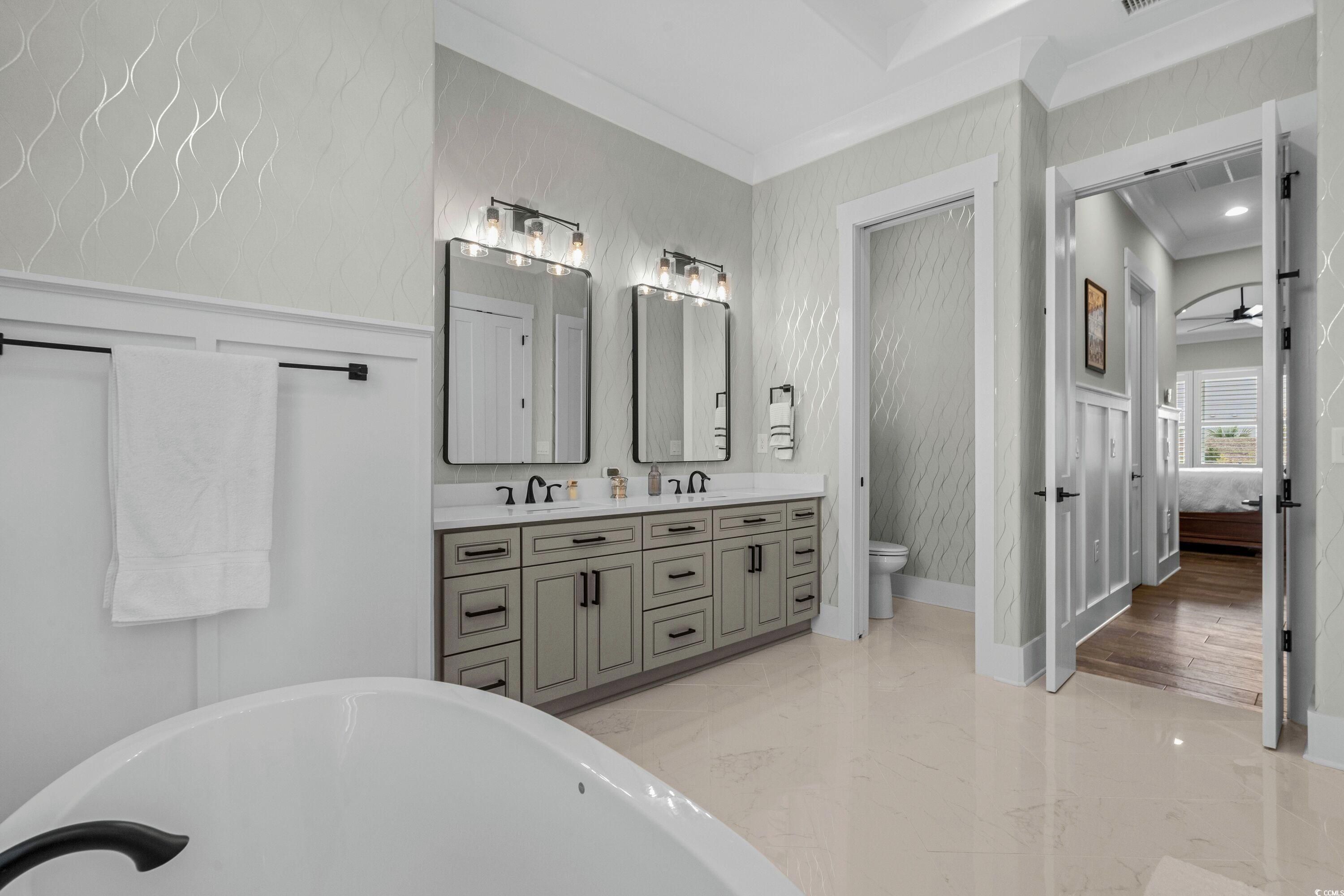 MOTIVATED SELLERS! This home is immaculate! Don't miss out on this stunning 4BR, 4.5BA w/ 2.5 Car Garage home located in the gated community of Waterside Edge - Grande Dunes. This home has been meticulously maintained by the original owners and there have been MANY UPGRADES completed throughout this property since purchasing. Ask your Realtor for a list of ALL of the upgrades! Some of the upgrades include: Top Tier Tile floors throughout entire home including front & rear porches, extended tile showers in all bathrooms, epoxy garage flooring, white melamine shelving in all closets, Outdoor Kitchen w/ Blaze appliances, upgraded granite countertops, 60" board and batten in multiple rooms, 5 Ton Rudd Dual Fuel (gas and electric) HVAC system, fenced in backyard, GE monogram appliance package, four Samsung mounted TV's to convey, plantation shutters, custom shelving, and extended tile backsplash in the kitchen. All bedrooms have an en-suite bathroom with a half bath just off the living room for added convenience. The Primary Suite is located on the first floor and has a tray ceiling, two closets w/ Melamine shelving & drawers, and a stunning Primary Bathroom. The bathroom offers a tiled shower, large soaking tub, and a beautiful dual vanity. Two guest suites are located on the first floor on the opposite side from the Primary for added privacy. The 4th Bedroom is located upstairs and has a private bathroom and custom shelving. Off the kitchen is a beautiful office with lots of natural light. The laundry room is situated off the garage and offers custom shelving and front-loading GE Washer & Dryer set. The exterior features are AMAZING! The screened in porch has a fireplace, mounted tv, tile floors, and shelving. Off the screened in porch is the outdoor kitchen and extended concrete pad which creates the perfect setting for a sitting area around a fire pit and views of the adjacent pond. This home is situated just steps away from the Intracoastal Waterway and the Del Webb Amenity Center. Waterside Edge - Grande Dunes is 55+ community and offers homeowners access to the Grande Dunes OCEAN CLUB as well as the Del Webb amenities including a resort style pool, an indoor pool, clubhouse, fitness center, pickle ball courts, tennis courts, & more! Waterside Edge also has Day Docks on the Intracoastal Waterway that homeowners receive access to! Schedule your showing on this home today!