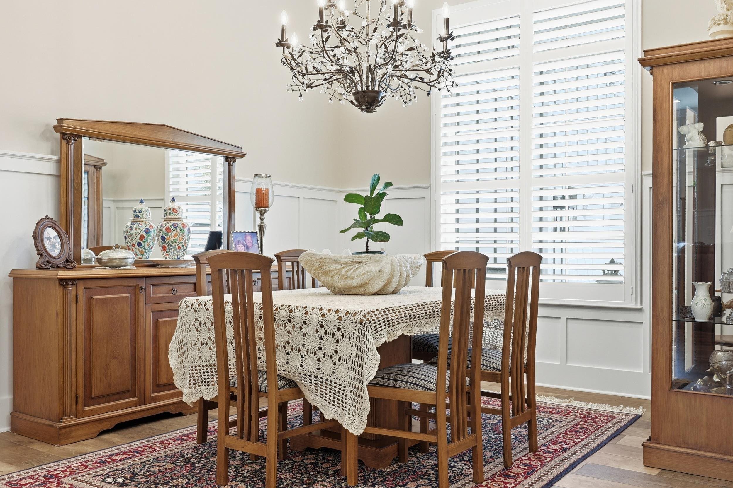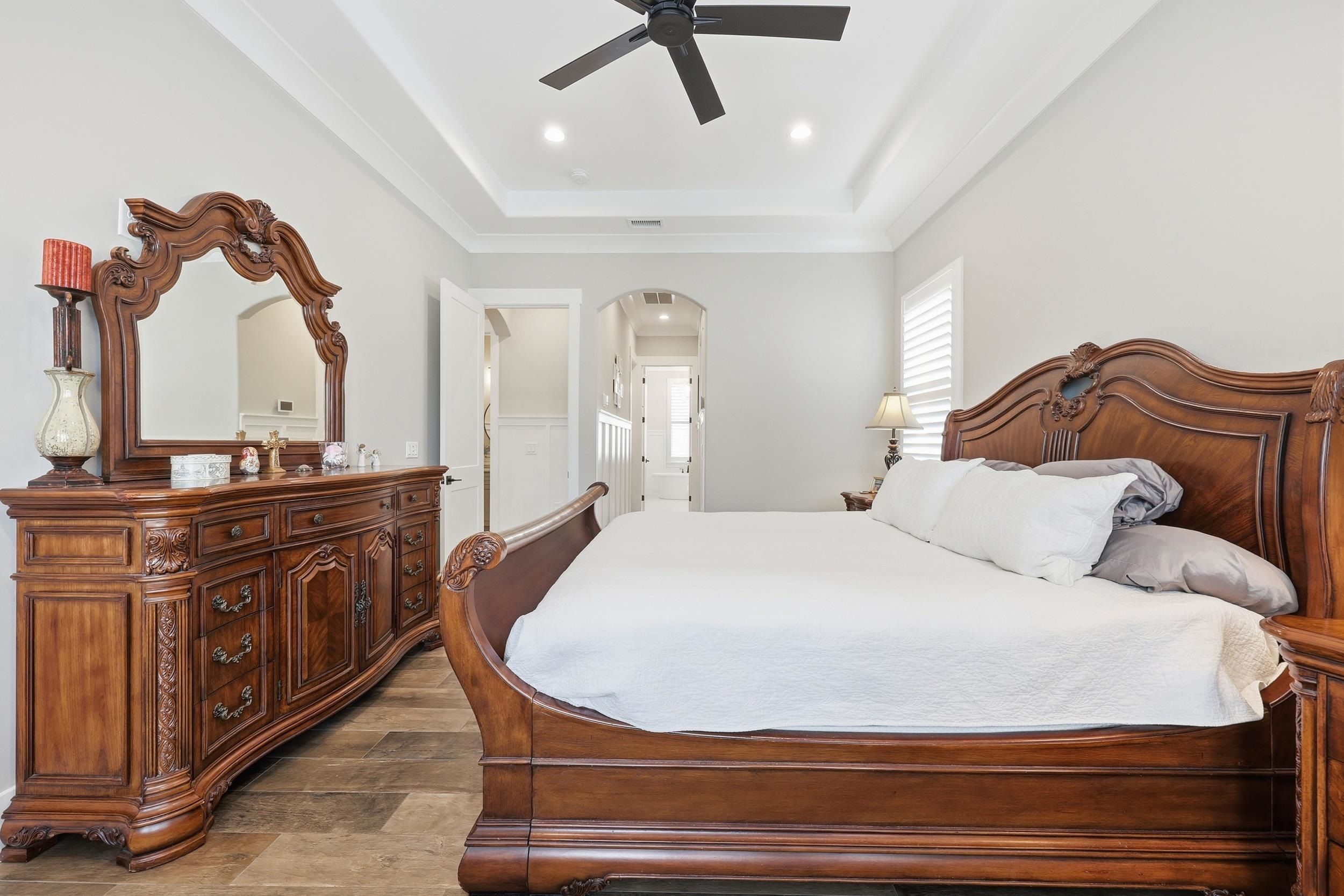 - Dual Sinks, Garden Tub/Roman Tub, Main Level Primary, Separate Shower, Vanity, Walk-In Closet(s), Window Treatments, Bedroom on Main Level, Stainless Steel Appliances, Solid Surface Counters