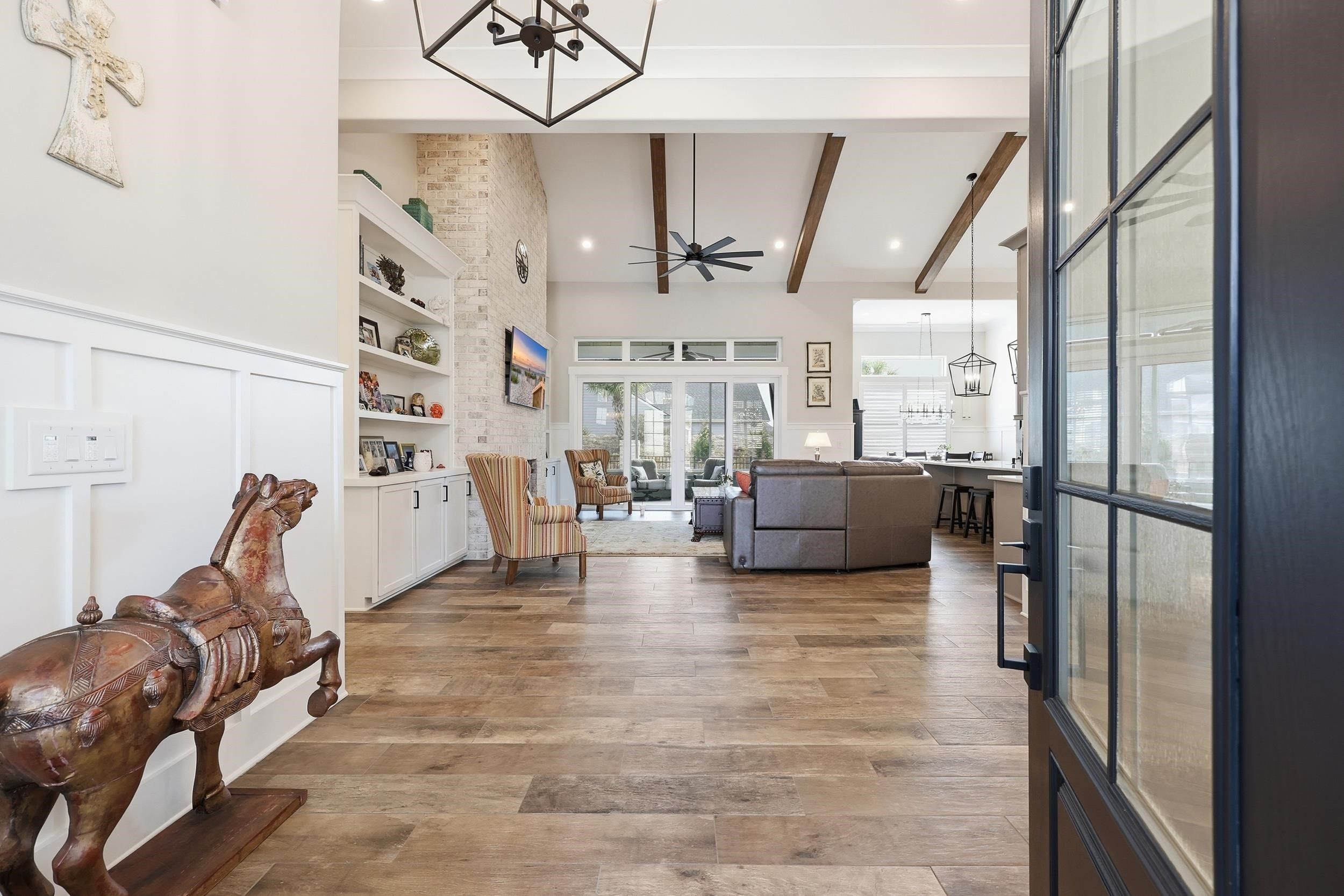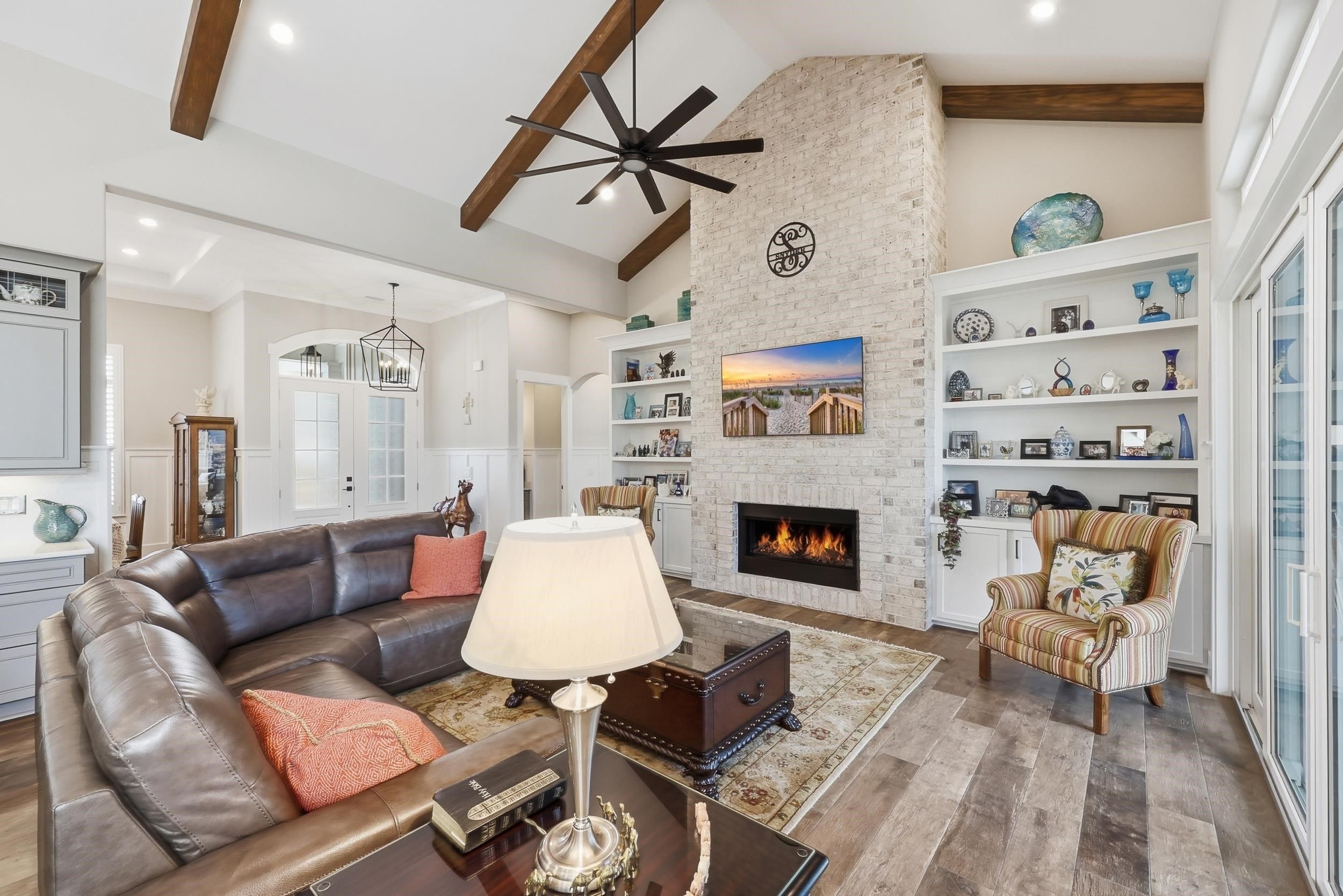 Truly Immaculate! This stunning 4BR, 4.5BA home built by one of Myrtle Beach's premier custom builders, Nations Homes, is located in the gated community of Waterside Edge - Grande Dunes. This home has been meticulously maintained by the original owners and there have been MANY UPGRADES completed throughout this property since purchasing. Ask your Realtor for a list of ALL of the upgrades! Some of the upgrades include: Top Tier Tile floors throughout entire home including front & rear porches, extended tile showers in all bathrooms, epoxy garage flooring, white melamine shelving in all closets, Outdoor Kitchen w/ Blaze appliances, upgraded granite countertops, 60" board and batten in multiple rooms, 5 Ton Rudd Dual Fuel (gas and electric) HVAC system, fenced in backyard, GE Monogram appliance package, four Samsung mounted TV's to convey, plantation shutters, custom shelving, and extended tile backsplash in the kitchen. All bedrooms have an en-suite bathroom with a half bath just off the living room for added convenience. The first floor Primary Suite has a tray ceiling, two closets w/ Melamine shelving & drawers, and a stunning Primary Bathroom. The bathroom offers a tiled shower, large soaking tub, and a beautiful dual vanity. Two guest suites are located on the first floor on the opposite side from the Primary for added privacy. The 4th Bedroom is located upstairs and has a private bathroom and additional custom shelving. Off the kitchen is a beautiful office with lots of natural light. The laundry room is situated off the garage and offers custom shelving and front-loading GE Washer & Dryer set. The exterior features are AMAZING! The screened in porch has a fireplace, mounted tv, tile floors, and shelving. Off the screened in porch is the outdoor kitchen and extended concrete pad which creates the perfect setting for a sitting area around a fire pit and views of the adjacent pond. This home is situated just steps away from the Intracoastal Waterway and the Del Webb Amenity Center. Waterside Edge - Grande Dunes is 55+ community and offers homeowners access to the Grande Dunes OCEAN CLUB as well as the Del Webb amenities including a resort style pool, an indoor pool, clubhouse, fitness center, pickle ball courts, tennis courts, & more! Waterside Edge also has Day Docks on the Intracoastal Waterway that homeowners receive access to! Schedule your showing on this home today!