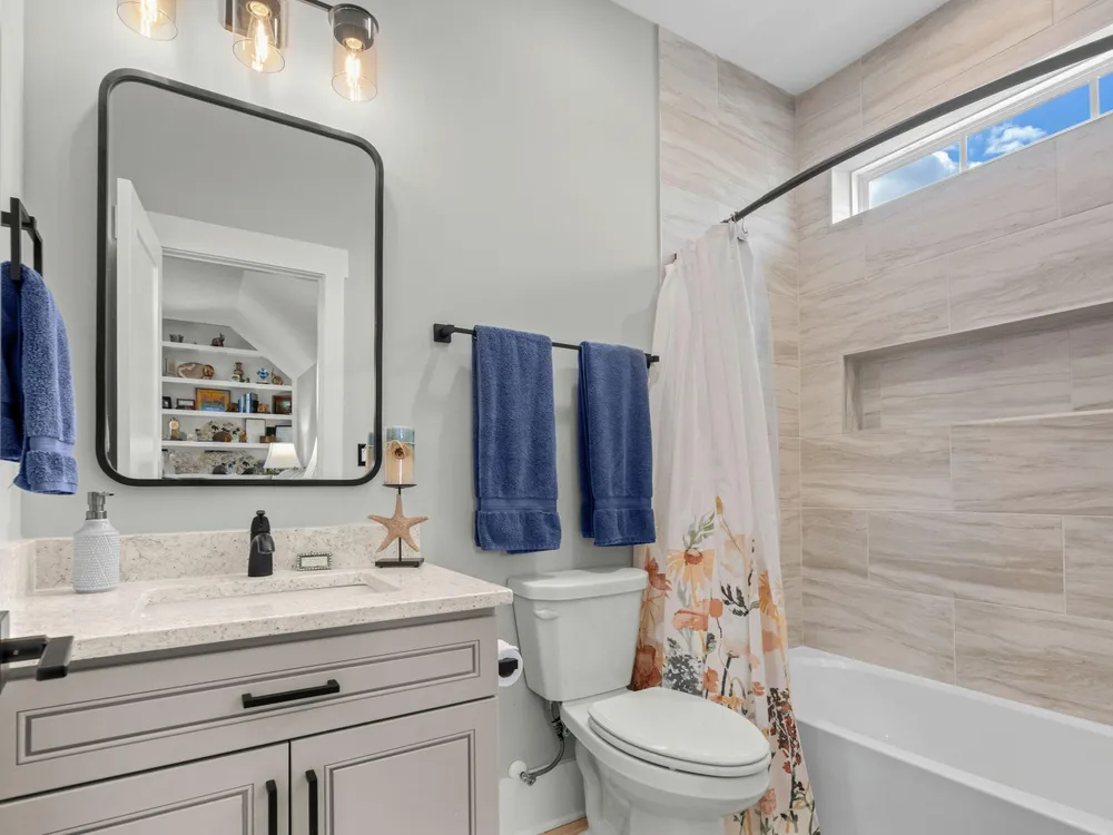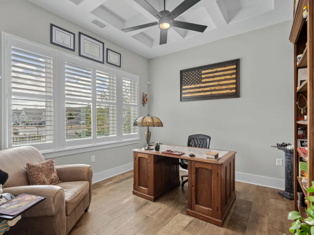 Truly Immaculate! Don't miss out on this stunning 4BR, 4.5BA w/ 2.5 Car Garage home located in the gated community of Waterside Edge - Grande Dunes. This home has been meticulously maintained by the original owners and there have been MANY UPGRADES completed throughout this property since purchasing. Ask your Realtor for a list of ALL of the upgrades! Some of the upgrades include: Top Tier Tile floors throughout entire home including front & rear porches, extended tile showers in all bathrooms, epoxy garage flooring, white melamine shelving in all closets, Outdoor Kitchen w/ Blaze appliances, upgraded granite countertops, 60" board and batten in multiple rooms, 5 Ton Rudd Dual Fuel (gas and electric) HVAC system, fenced in backyard, GE monogram appliance package, four Samsung mounted TV's to convey, plantation shutters, custom shelving, and extended tile backsplash in the kitchen. All bedrooms have an en-suite bathroom with a half bath just off the living room for added convenience. The Primary Suite is located on the first floor and has a tray ceiling, two closets w/ Melamine shelving & drawers, and a stunning Primary Bathroom. The bathroom offers a tiled shower, large soaking tub, and a beautiful dual vanity. Two guest suites are located on the first floor on the opposite side from the Primary for added privacy. The 4th Bedroom is located upstairs and has a private bathroom and custom shelving. Off the kitchen is a beautiful office with lots of natural light. The laundry room is situated off the garage and offers custom shelving and front-loading GE Washer & Dryer set. The exterior features are AMAZING! The screened in porch has a fireplace, mounted tv, tile floors, and shelving. Off the screened in porch is the outdoor kitchen and extended concrete pad which creates the perfect setting for a sitting area around a fire pit and views of the adjacent pond. This home is situated just steps away from the Intracoastal Waterway and the Del Webb Amenity Center. Waterside Edge - Grande Dunes is 55+ community and offers homeowners access to the Grande Dunes OCEAN CLUB as well as the Del Webb amenities including a resort style pool, an indoor pool, clubhouse, fitness center, pickle ball courts, tennis courts, & more! Waterside Edge also has Day Docks on the Intracoastal Waterway that homeowners receive access to! Schedule your showing on this home today!