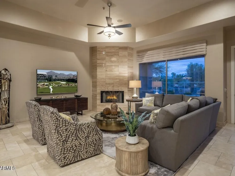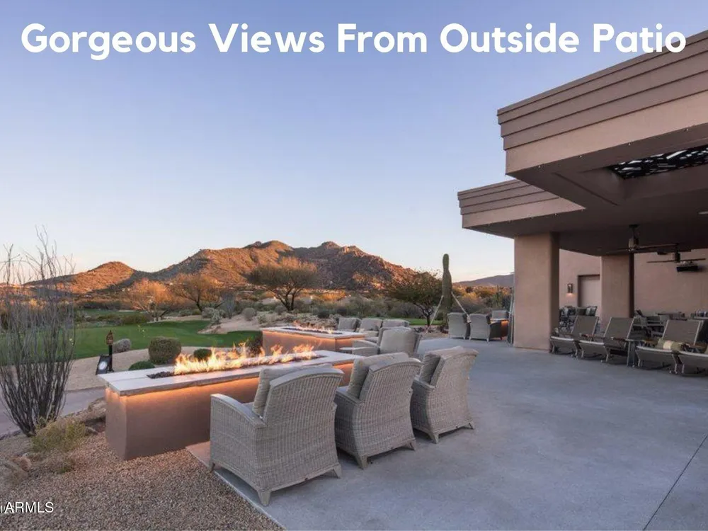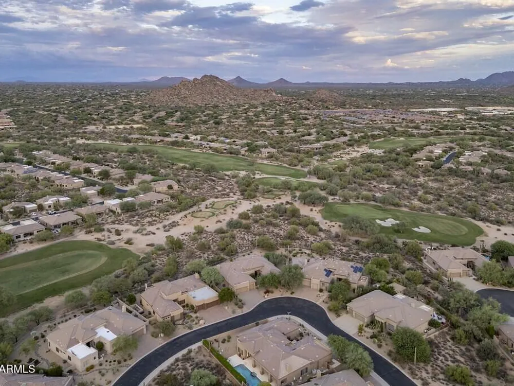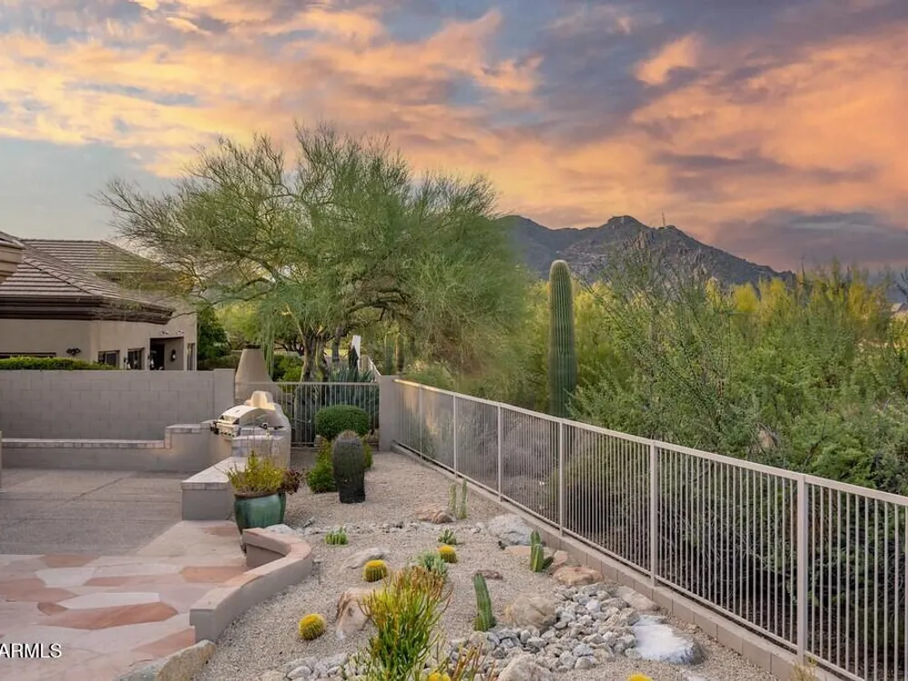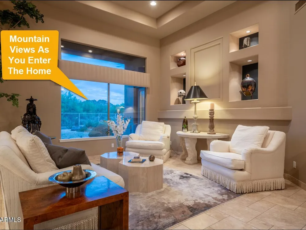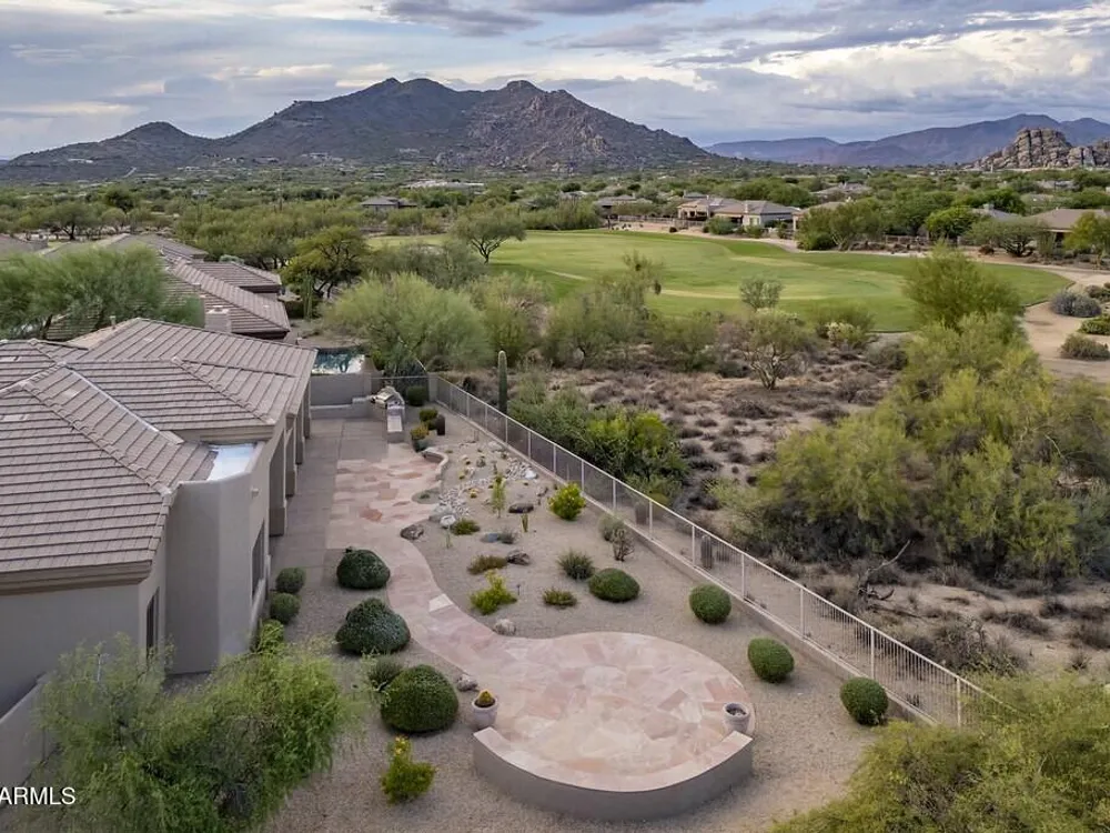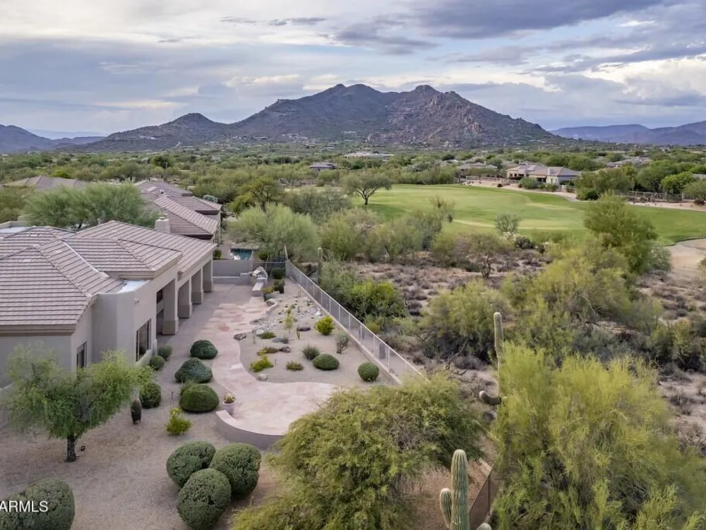 Private. Peaceful. Perfect. You will feel like you live on acreage living in this 5 bedroom 3.5 bath home with possibly Terravitas largest backyard offering over 190 feet of view fence overlooking acres of lush Sonoran Desert preserve and golf course with two stunning mountain views. (The only lot that might be as large as this is right next door but in truth it hardly matters because together they give you an extraordinary sense of space distance from neighbors and unmatched privacy.) Gorgeous Series 4 Sentis model with soaring 14 foot ceilings and 8 foot interior doors. Open concept design that blends classic Scottsdale luxury with contemporary livability. Every detail feels intentional from the polished travertine stone floors and baseboards to the creamy raised panel cabinetry and dra dramatic crown soffits. The large island and level 7 granite counters create a gathering space for family and friends while the built in Sub Zero refrigerator gas cooktop and wine cooler make entertaining effortless. This Terravita home offers bright open living spaces and panoramic desert scenery. The sunny family room fills with light and frames views of Winfield Mountain and the Boulders. The owners have loved the high ceilings and the spacious open floor plan that create a warm and welcoming feeling. The private backyard faces the golf course yet is set far enough away to provide peace and quiet with no golf balls ever. The outdoor area is perfect for dining and relaxing surrounded by natural desert beauty and endless mountain views. Holidays in the living room with family and friends have been treasured memories. Located at the top of a quiet street this Scottsdale North home enjoys a calm setting with very little traffic. Outdoor living includes a fountain built in stainless barbecue warmer sink and mountain views that change color with every sunset. Extra sliding doors connect indoor and outdoor spaces for true Arizona lifestyle living. The primary suite offers raised vanities elegant finishes and relaxing privacy. Guests will appreciate comfortable secondary bedrooms and a custom built in guest bed. The home has been impeccably maintained by the original owners with a new roof under a 10 year warranty HVAC replaced 2017 two new water heaters with recirc pumps epoxy garage floor and rear yard access door. Plantation shutters dual built in desks surround sound and thoughtful upgrades show pride of ownership throughout. Being sold turnkey and as is with all furnishings included so all you need is your toothbrush. The sellers have enjoyed friendly neighbors active golf and fitness options and dining at the Terravita clubhouse. The community offers events classes and a welcoming social atmosphere plus proximity to Carefree and Cave Creek for shopping dining and outdoor recreation. This home combines elegance comfort and privacy in a location that captures the best of Terravita and Scottsdale North living every day. Dear Prospective Homebuyer, If you're considering making Terravita your home, know that you're not just buying a property; you're embracing a lifestyle that's rich, engaging, and brimming with opportunities. Terravita stands as a testament to a community that values experiences, relationships, and personal growth over mere bricks and mortar. Here, the house you buy is simply a gateway to the life you desire. A visit to Terravita's clubhouse and a brief tour of the amenities is essential - it's not just recommended; it's crucial. It is literally what you are buying. If you are just looking for a house, this is likely not the place for you. Dialing 480-488- 3456 can set you on a path to discovering a world where every day is a new adventure. This initial tour is more than just a walkthrough; it's an eye-opener to the vibrant, active lifestyle that awaits you. Many have said that understanding the depth and breadth of Terravita's amenities was a pivotal moment in their decision to join our community. We invite you to take the first step towards discovering if Terravita is the right fit for you. It's not just about finding a home; it's about finding a place where you can live your life to the fullest. The lifestyle you've dreamed of is here, waiting for you to embrace it. Remember, exploring Terravita starts with a tour of our clubhouse and amenities. Make that choice today and open the door to a world where life is rich, full, and wonderfully yours. Terravita is a guard gated 823 acre planned community which consists of many amenities including an 18 hole championship golf course, a 39,000 square foot newly remodeled clubhouse facility with 2 dining areas, a heated 25 meter pool with easy beach front entrance and hot tub, 6 tennis courts and a full-time tennis pro, a 13,000 square foot health and fitness center, community-wide 6 mile long walking and jogging trails, and extensive event calendar with fun-filled events for the dozens of social organizations. Terravita Golf and Country Club has been voted Best Master Planned Community and Best Private Golf Club numerous times by Ranking Arizona. Terravita was created by Del Webb and was their first non-age restricted community. Terravita golf course was created by PGA Hall of Fame member Billy Casper and designer Greg Nash. Terravita golf amenities include a pro shop, a large driving range, and four separate areas to practice chipping and putting.
