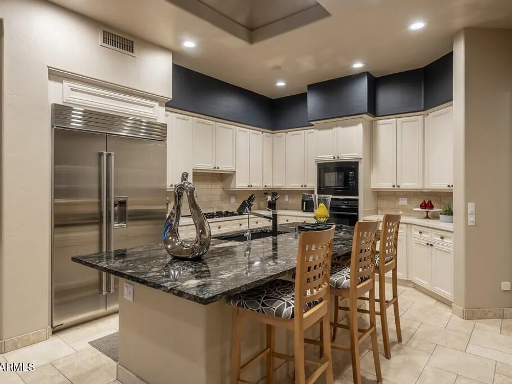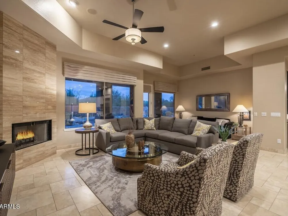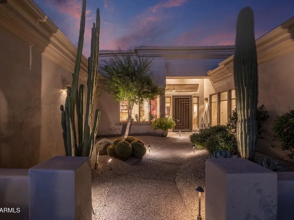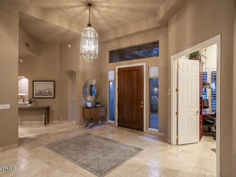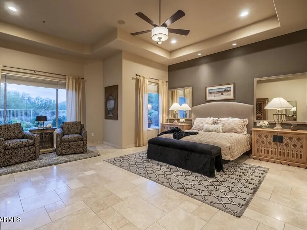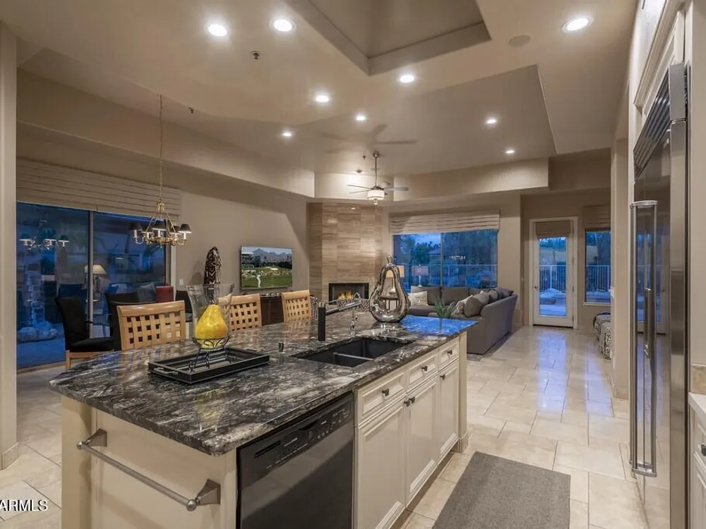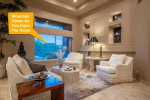 Private. Peaceful. Perfect. You will feel like you live on acreage living in this 5 bedroom 3.5 bath home with possibly Terravitas largest backyard offering over 190 feet of view fence overlooking acres of lush Sonoran Desert preserve and golf course with two stunning mountain views. (The only lot that might be as large as this is right next door but in truth it hardly matters because together they give you an extraordinary sense of space distance from neighbors and unmatched privacy.) Gorgeous Series 4 Sentis model with soaring 14 foot ceilings and 8 foot interior doors. Open concept design that blends classic Scottsdale luxury with contemporary livability. Every detail feels intentional from the polished travertine stone floors and baseboards to the creamy raised panel cabinetry and dra dramatic crown soffits. The large island and level 7 granite counters create a gathering space for family and friends while the built in Sub Zero refrigerator gas cooktop and wine cooler make entertaining effortless. This Terravita home offers bright open living spaces and panoramic desert scenery. The sunny family room fills with light and frames views of Winfield Mountain and the Boulders. The owners have loved the high ceilings and the spacious open floor plan that create a warm and welcoming feeling. The private backyard faces the golf course yet is set far enough away to provide peace and quiet with no golf balls ever. The outdoor area is perfect for dining and relaxing surrounded by natural desert beauty and endless mountain views. Holidays in the living room with family and friends have been treasured memories. Located at the top of a quiet street this Scottsdale North home enjoys a calm setting with very little traffic. Outdoor living includes a fountain built in stainless barbecue warmer sink and mountain views that change color with every sunset. Extra sliding doors connect indoor and outdoor spaces for true Arizona lifestyle living. The primary suite offers raised vanities elegant finishes and relaxing privacy. Guests will appreciate comfortable secondary bedrooms and a custom built in guest bed. The home has been impeccably maintained by the original owners with a new roof under a 10 year warranty HVAC replaced 2017 two new water heaters with recirc pumps epoxy garage floor and rear yard access door. Plantation shutters dual built in desks surround sound and thoughtful upgrades show pride of ownership throughout. Being sold turnkey and as is with all furnishings included so all you need is your toothbrush. The sellers have enjoyed friendly neighbors active golf and fitness options and dining at the Terravita clubhouse. The community offers events classes and a welcoming social atmosphere plus proximity to Carefree and Cave Creek for shopping dining and outdoor recreation. This home combines elegance comfort and privacy in a location that captures the best of Terravita and Scottsdale North living every day. Dear Prospective Homebuyer, If you're considering making Terravita your home, know that you're not just buying a property; you're embracing a lifestyle that's rich, engaging, and brimming with opportunities. Terravita stands as a testament to a community that values experiences, relationships, and personal growth over mere bricks and mortar. Here, the house you buy is simply a gateway to the life you desire. A visit to Terravita's clubhouse and a brief tour of the amenities is essential - it's not just recommended; it's crucial. It is literally what you are buying. If you are just looking for a house, this is likely not the place for you. Dialing 480-488- 3456 can set you on a path to discovering a world where every day is a new adventure. This initial tour is more than just a walkthrough; it's an eye-opener to the vibrant, active lifestyle that awaits you. Many have said that understanding the depth and breadth of Terravita's amenities was a pivotal moment in their decision to join our community. We invite you to take the first step towards discovering if Terravita is the right fit for you. It's not just about finding a home; it's about finding a place where you can live your life to the fullest. The lifestyle you've dreamed of is here, waiting for you to embrace it. Remember, exploring Terravita starts with a tour of our clubhouse and amenities. Make that choice today and open the door to a world where life is rich, full, and wonderfully yours. Terravita is a guard gated 823 acre planned community which consists of many amenities including an 18 hole championship golf course, a 39,000 square foot newly remodeled clubhouse facility with 2 dining areas, a heated 25 meter pool with easy beach front entrance and hot tub, 6 tennis courts and a full-time tennis pro, a 13,000 square foot health and fitness center, community-wide 6 mile long walking and jogging trails, and extensive event calendar with fun-filled events for the dozens of social organizations. Terravita Golf and Country Club has been voted Best Master Planned Community and Best Private Golf Club numerous times by Ranking Arizona. Terravita was created by Del Webb and was their first non-age restricted community. Terravita golf course was created by PGA Hall of Fame member Billy Casper and designer Greg Nash. Terravita golf amenities include a pro shop, a large driving range, and four separate areas to practice chipping and putting.