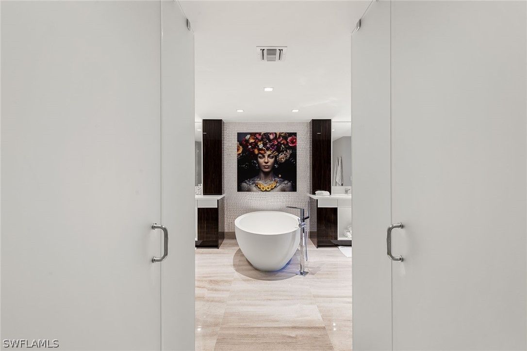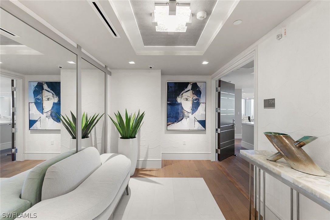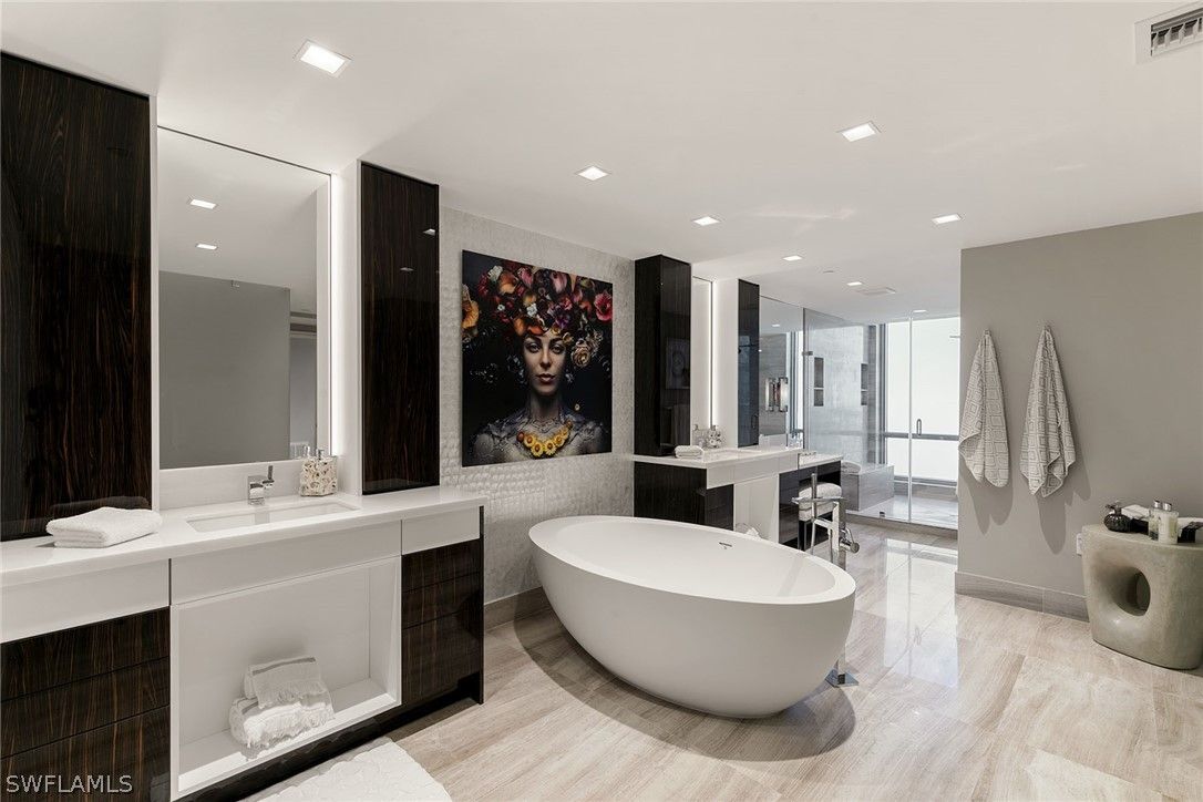 Rarely available end-unit condominium, offering forever unobstructed Gulf views from the entire northwest side of the building, with floor-to-ceiling windows framing breathtaking views to the west and northwest overlooking the Gulf and serene eastern views of the golf course. High above the Gulf, Mystique is the newest gem in Pelican Bay’s skyline, offering majestic vistas of the sparkling blue waters and mesmerizing sunsets. Recently reimagined by a renowned interior designer, this home showcases a refined design palette, blending luxury and tranquility in a spacious open floor plan, ideal for entertaining and relaxation. Enter into this exceptional residence and be welcomed by a series of refined finishes that exemplify casual elegance. The chef-inspired kitchen is outfitted with exquisite Carrara marble countertops, Wolf and Sub-Zero appliances, and sleek white cabinetry, while the beauty of Legno Bastone Italian wood floors flows throughout. The primary suite offers a private retreat with panoramic Gulf views from the bedroom and the spa-like bath. Complete with five-bedroom suites and abundant storage, this home is designed for comfortable living at every level. Includes EV charger. Mystique isn’t just about stunning aesthetics, it’s about an elevated lifestyle. Enjoy the convenience of 24/7 concierge services, making every need effortless. As a resident of Pelican Bay, you gain access to an array of world-class amenities, including private beachfront dining, beach access with chair and umbrella service, tennis and pickleball courts, fitness center, and miles of scenic recreational and biking paths. Just minutes from Artis-Naples and upscale Waterside Shops, Mystique offers a balance of peaceful living and easy access to culture and shopping. Accept this invitation to experience a life of unparalleled luxury, beauty and convenience.