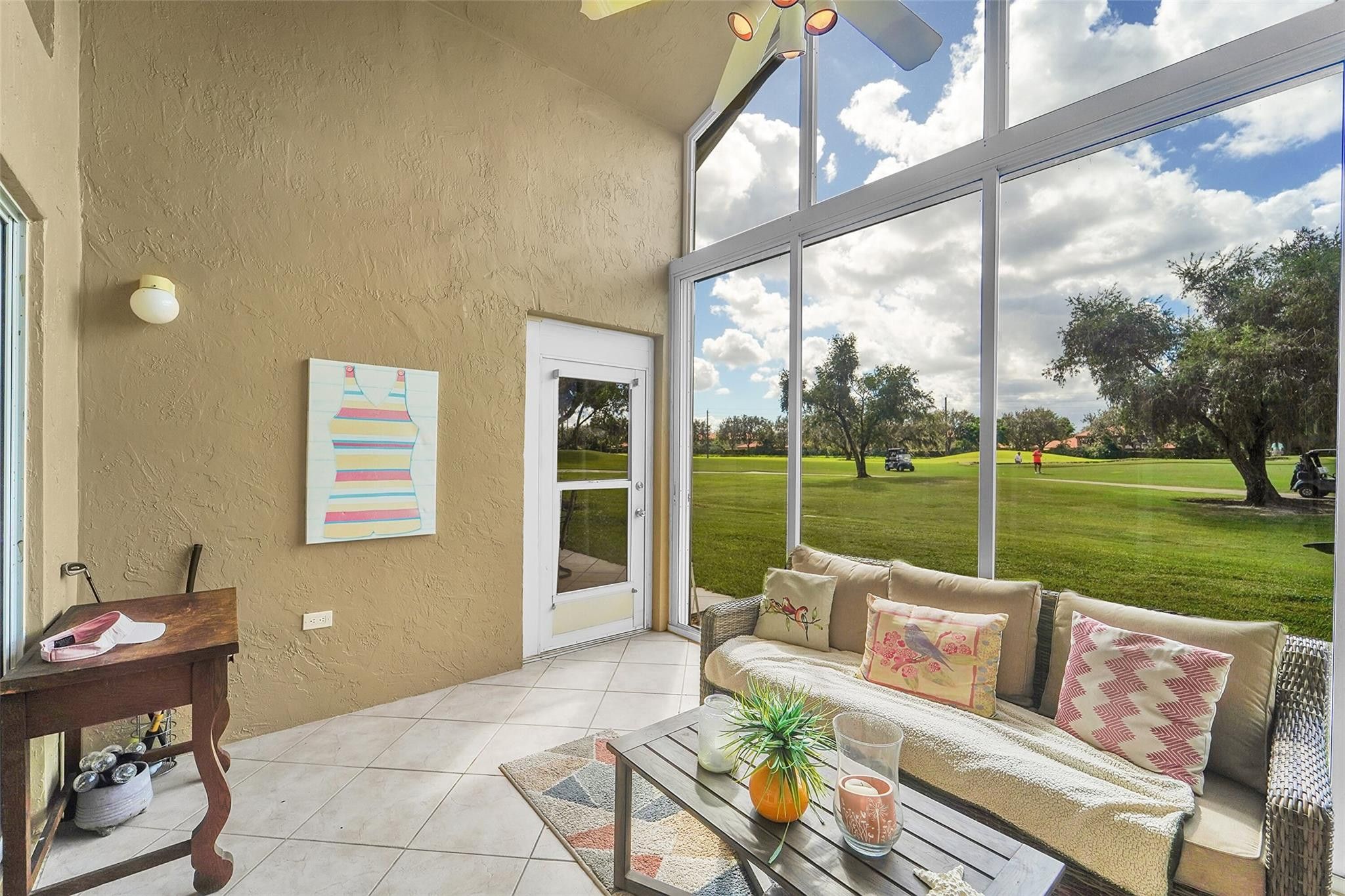 Make me an offer! This beautifully designed single-family residence offers luxury living on the green. Featuring a modern open-concept floor plan, this home blends spaciousness a & style, perfect for both entertaining & everyday living. From the moment you step inside, you're greeted by soaring ceilings, abundant natural light, and seamless flow between the living, dining, and kitchen areas & opens to a generous family room and bonus enclosed Florida room, with sweeping views of the golf course & manicured fairways. Your enclosed Florida room is the ideal setting for morning coffee or sunset gatherings. Enjoy resort-style living with community amenities include stunning pool area, tennis, clubhouse access, & 24/7 security; all just minutes from world class shopping, & dining.