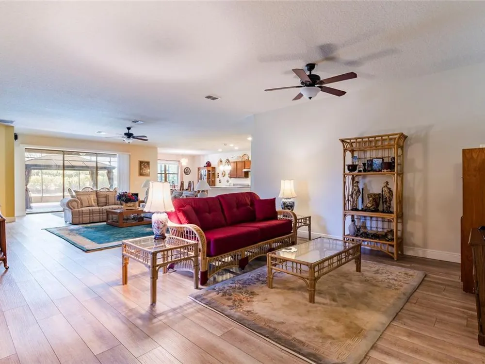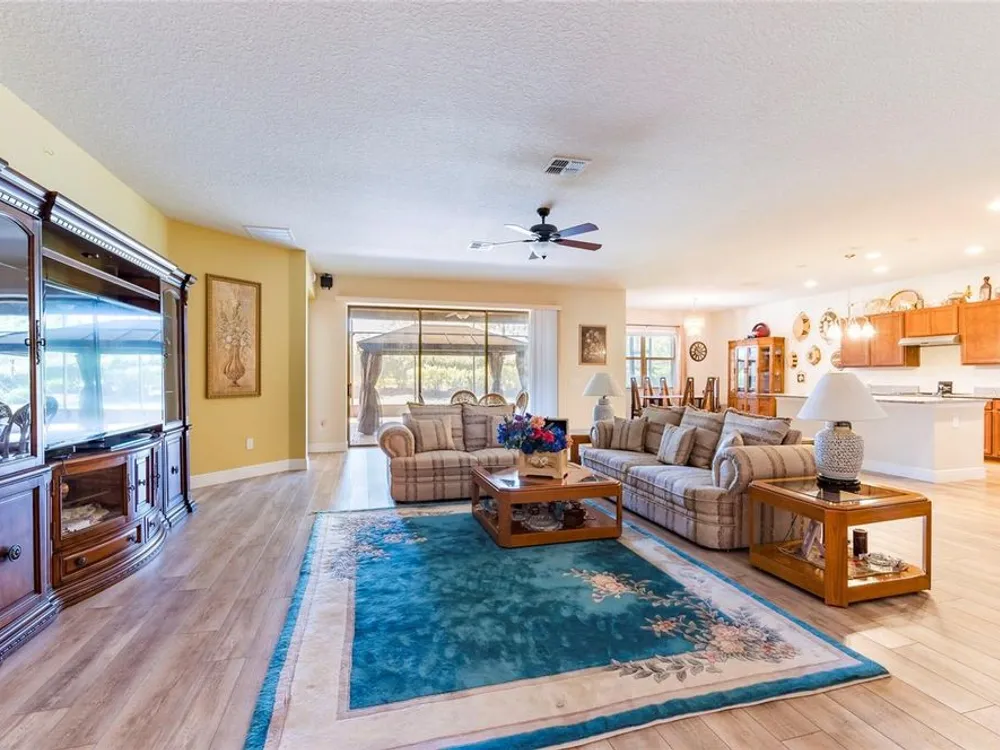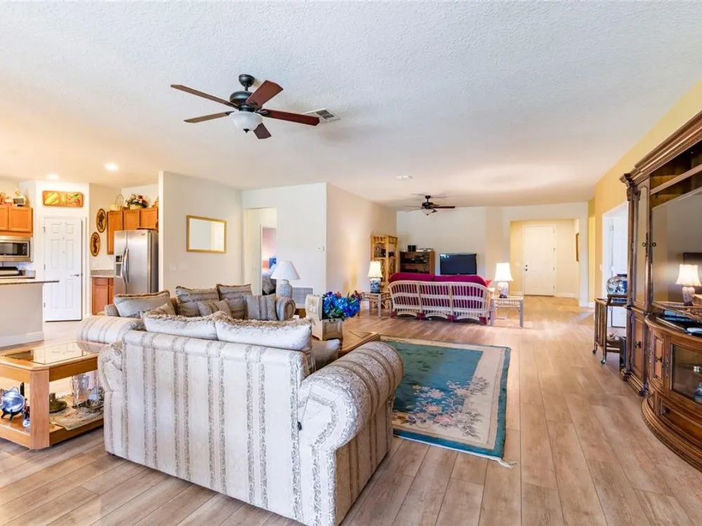 - Ceiling Fan(s), Kitchen/Family Room Combo, Living/Dining Room, Open Floorplan, Window Treatments