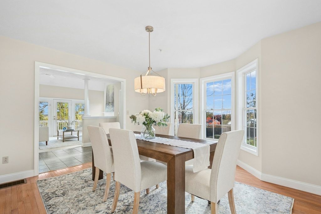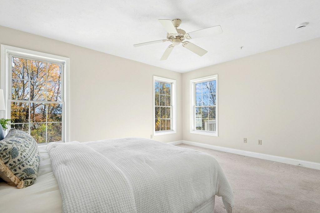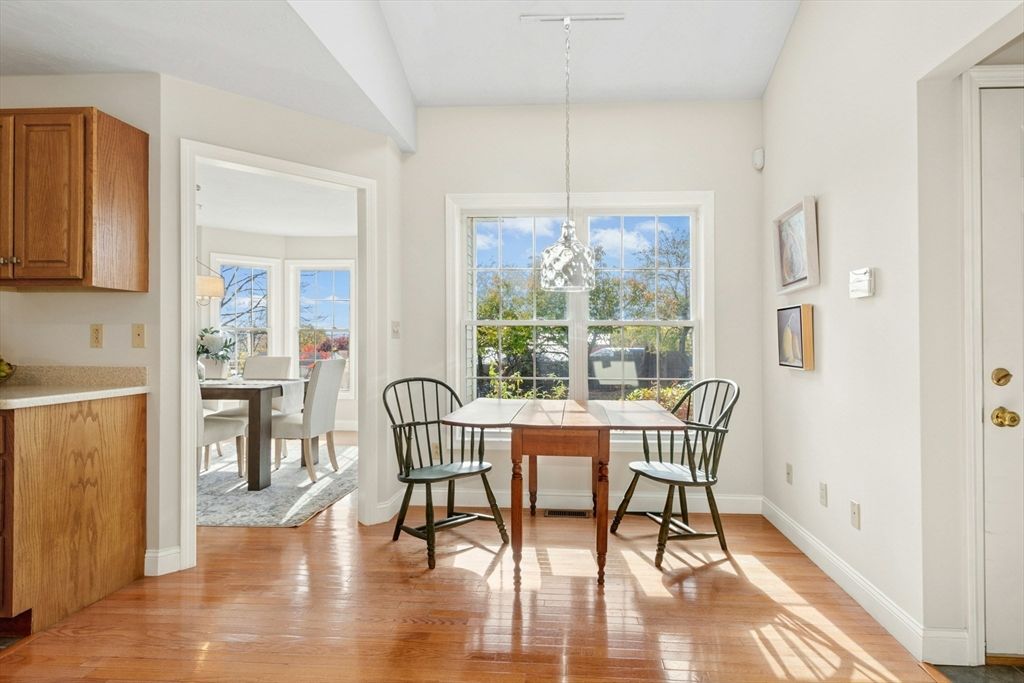 This sun-filled end unit stands apart for its exceptional privacy & expansive yard-like outdoor space within this 55+ community. Freshly repainted interior, updated bathrooms & refreshed dining room. Main level offers a cathedral-ceiling living room, gas fireplace, & eat in kitchen with skylight & laundry. First-floor primary suite features a walk-in closet and updated bath. Upstairs, a generous loft & guest suite provide flexible space for visitors, an office, or hobbies. Bonus room in the walk-out lower level is perfect for a home gym, studio, or den — there’s abundant storage throughout. Step outside to enjoy your private composite deck overlooking manicured grounds and mature landscaping. Recent updates include full interior paint (2025), refreshed bathrooms and dining area, newer roof, skylights, gutters, heating system, composite deck. Located minutes from Route 9, shopping, dining, medical facilities, this home combines the ease of condo with the feeling of a private residence.
