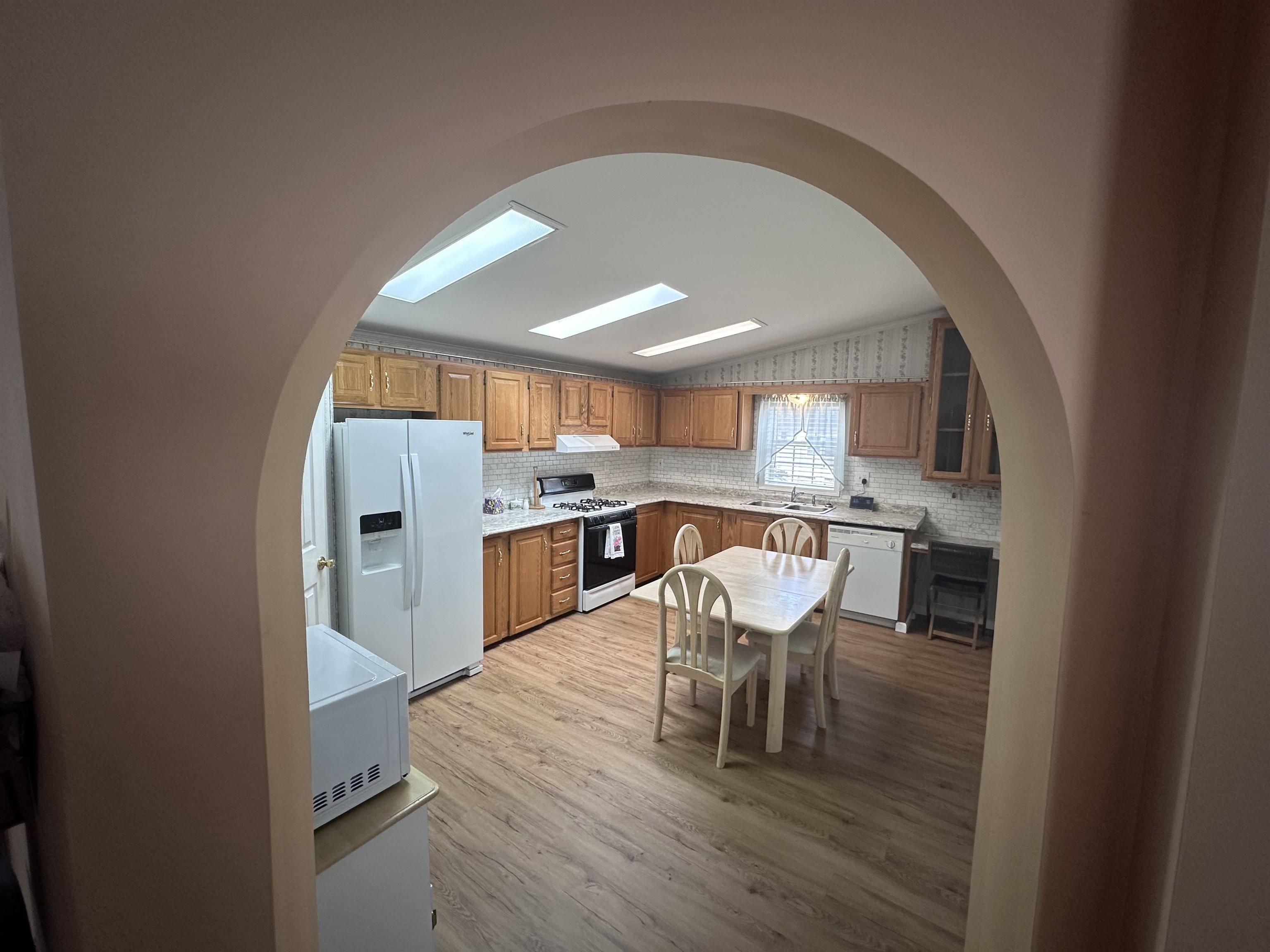 Come view this lovely, well-maintained home in the sought after 55+ community of The Oaks of Weymouth. Home features two bedrooms, two full baths and a den, which could be a third bedroom or office. Enter into a large living room with vaulted ceilings and an open concept to the dining room and french doors to den. Large eat-in kitchen with newer counters and backsplash, a pantry and a skylight for plenty of natural light. The primary suite includes 2 walk-in closets and bath with double sinks. Hot water heater is 5 years old and heater is 1-2 years old. Current lot rent is $564 ( but will increase with new owner) and includes water, sewer, snow removal, trash as well as use of clubhouse with pool, gym billiards, tennis and pickleball courts. Ideally located just minutes to Ocean City, Atlantic City and shopping. Come see this one before it's gone! =