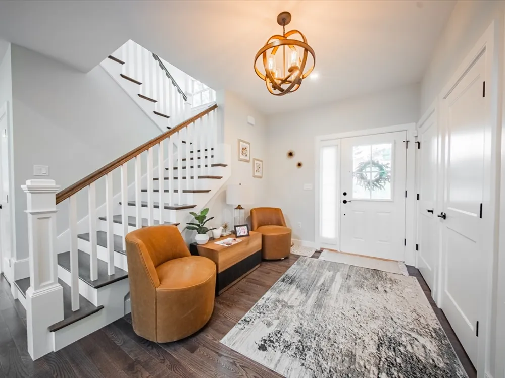 Discover the ease of living in the distinguished Adams design at Wolcott Woods, a premier 55+ community just outside Boston. This thoughtfully crafted home features a bright, open layout, stunning fireplace and a living room with dramatic cathedral ceilings. The chef’s kitchen connects seamlessly to a sunlit breakfast nook and private deck, perfect for morning coffee or casual entertaining. The first-floor primary suite offers a peaceful retreat, while the upstairs loft and guest bedroom provide comfortable space for visitors or hobbies. A walk-out lower level adds flexibility, with the potential to finish for even more living area.