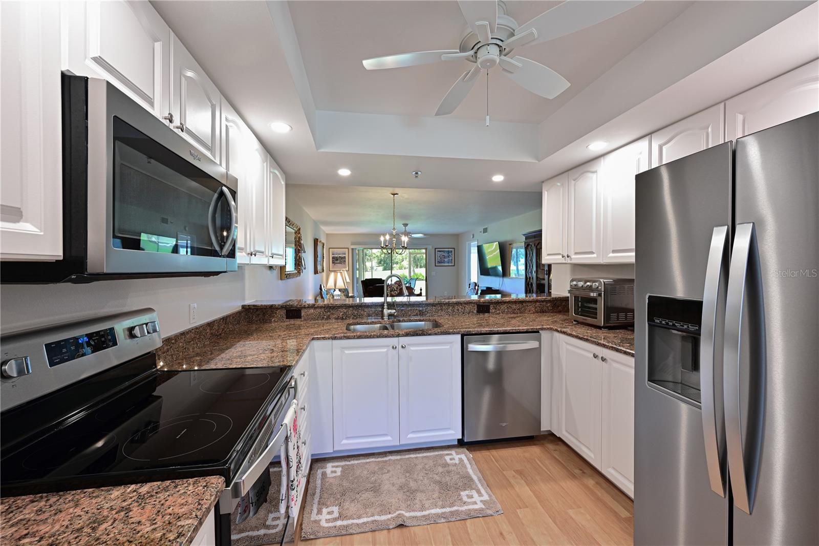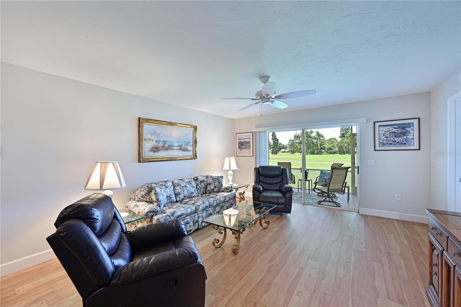 IMPROVED PRICE*MOTIVATED SELLERS* Fabulous first floor 2/2 updated condo w/ Garage at the Village of Tara Golf and Country Club could now be yours! Stunning home that has been updated from floor to ceiling and everywhere in between! Spectacular southern views, of the 10th hole at TGCC from your screened in lanai. Enjoy your morning Coffee or curl up with a good book on one of the two screened in lanais this home offers allowing year-round enjoyment of the beauty and nature that surrounds you in this gorgeous home. As a golfer you will appreciate the deeded Class A membership that comes with this home providing a top rated private course allowing you to easily schedule your tee time and hop on your golf cart to play as desired. Living in Tara isn’t just about Golf, it’s a lifestyle community rich in amenities, clubs, and social events. This home is a must see with a great open floor plan featuring luxury vinyl plank floors, updated kitchen, and baths. New baseboards throughout, custom shelving in the closets, new blinds, all new appliances, all popcorn ceilings removed, and freshly painted. Eat in kitchen has pantry closets and sliders out to a back lanai for further outdoor dining. Stone counters, new stainless appliances and loads of cabinet space give you all you need for the perfect kitchen. Living/dining room has sliders out to the second lanai, which gives you the Birdseye view to the 10th hole of the golf course. Gorgeous sunsets and breathtaking sunrises await you from this southern exposure home. Primary bedroom has two walk-in closets, en suite bath with renovated walk-in shower and vanity. Bay window and sliders to the lanai capture the green golf course view from your bedroom. Split bedrooms, the second bedroom has access to its own full bath and laundry area. This home even comes with Upgraded transparent Hurricane Shutters !!! Ownes are happy to leave the bedroom set and sleeper sofa for buyers who are interested. Class A membership at Tara Golf and Country Club gives you golf, bocce, tennis, pickle ball,( new pickle ball center being built with 5 courts) full fitness center, community pool and much more. Golf course was renovated in 2023, new tee boxes, fairways and greens w/ No assessments to the members. No CDDs. Many social clubs and activities to meet all your active Florida lifestyle requirements. Close to highways, shopping, great dining, and the best beaches in the Sarasota/Bradenton area. Welcome to the best Golf community in the area, welcome to Taradise! Comes with ONE YEAR HOME WARRANTY!!!