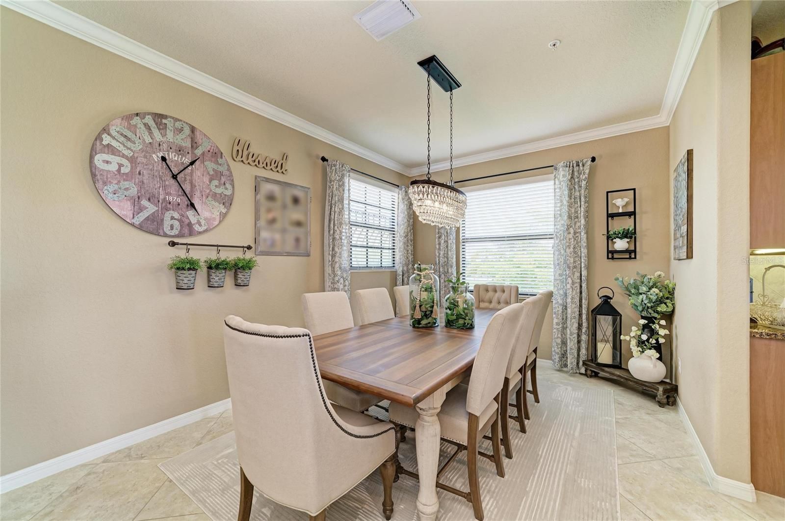 - Ceiling Fan(s), Crown Molding, Eat-in Kitchen, Solid Surface Counters, Solid-Wood Cabinets, Split Bedrooms, Walk-In Closet(s), Window Treatments