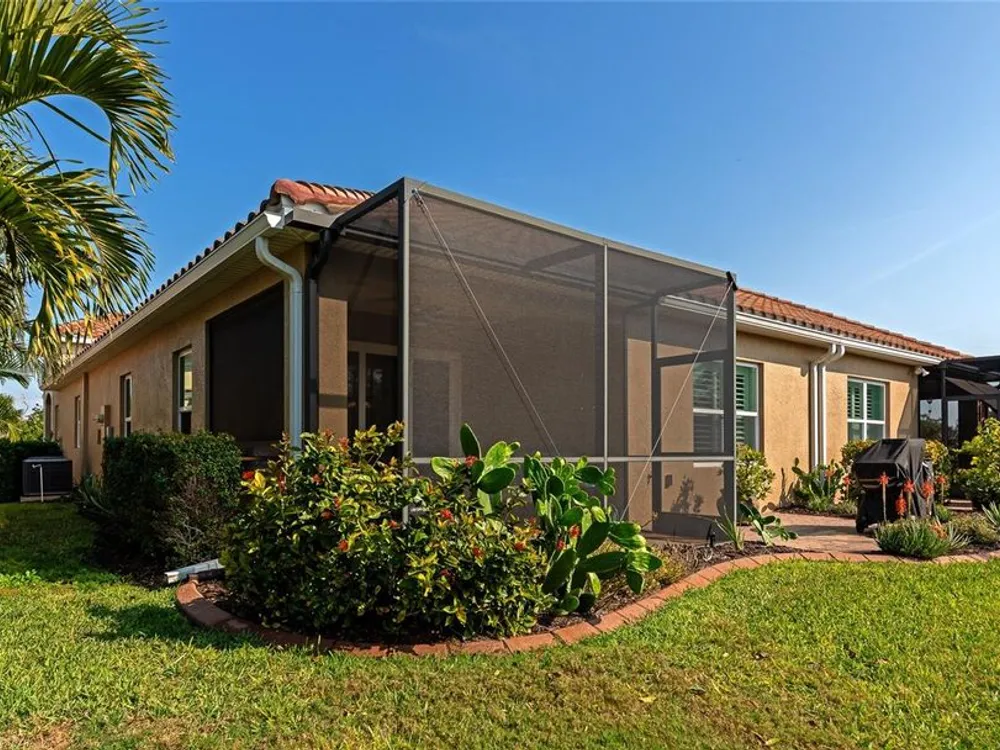 Are you ready to make the move! This Beautiful villa checks all the boxes for Florida living and it's the best value in Mirabella! Mirabella is 55+ gated community located in desirable Village Green in West Bradenton. Built in 2018 with Hurricane Impact Windows and Trifold Slider, there was no damage from 2024 storms! FLOOD ZONE X. NO FLOOD INSURANCE REQUIRED. The photos were taken with furnishing, the villa is now unfurnished and READY FOR YOUR IDEAS AND STYLE! Come see it and make it your own!! The 3 bedroom plus BONUS ROOM is planned perfectly. The center entry foyer opens to the heart of the home, perfect for entertaining or simply relaxing. The kitchen features a gas stove, granite counters and an island for casual dining open to the great room. The great room features a high tray ceiling and plantation shutters. The adjacent BONUS ROOM may be used as a formal dining room, media room, office, craft/game room, library, so many possibilities! Triple hurricane sliders open to the screened lanai, a perfect spot for morning coffee! The split bedroom plan affords privacy for guests and owners. The master bedroom, with en-suite bath, overlooks a brick patio area. The en-suite bath has 2 closets, double vanities and a step in shower. Crown molding throughout, high ceilings and 8 ft, doors show attention to detail. Mirabella has amenities for an active lifestyle! Join in for water aerobics, work out in the fitness center, play pickleball on the park courts, take a walk or bike ride on the spacious grounds. Mirabella is pet friendly, with pets and owners socializing in the dog park. Mirabella's location is another standout feature. You are short drive to the beaches on Anna Maria Island and you are just minutes away from dining, Fresh Market, Publix and Target. So close to everything yet harbored in a lovely, gated community. LOW HOA. MAINTENENCE FREE. MOTIVATED SELLERS. This could be the perfect place for you!