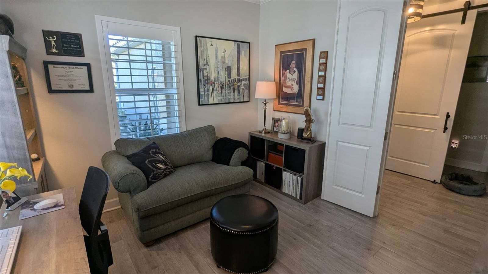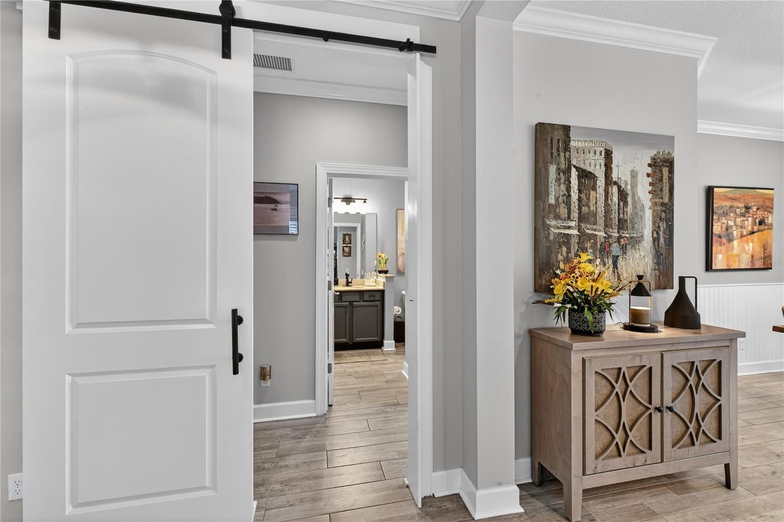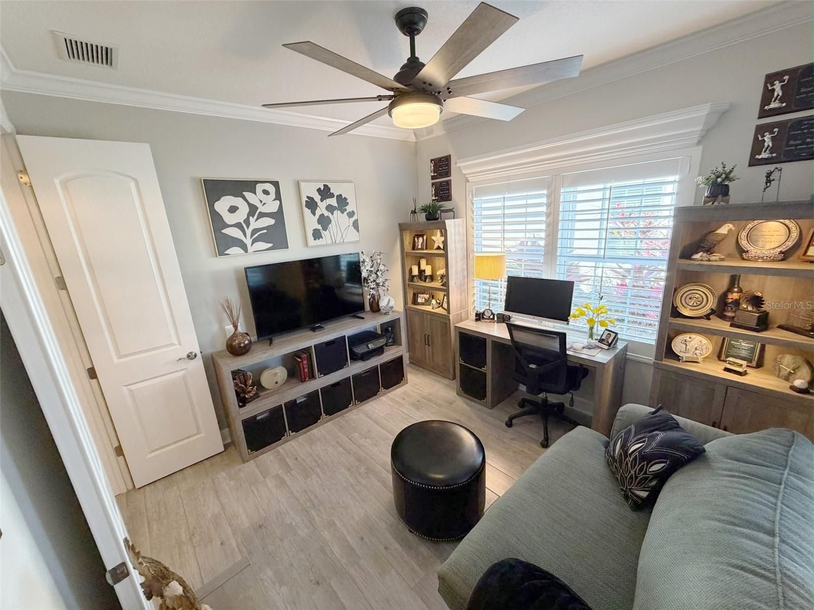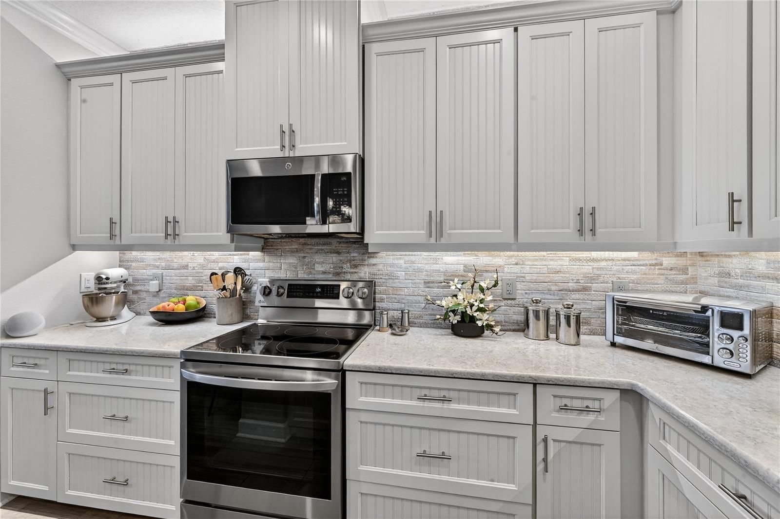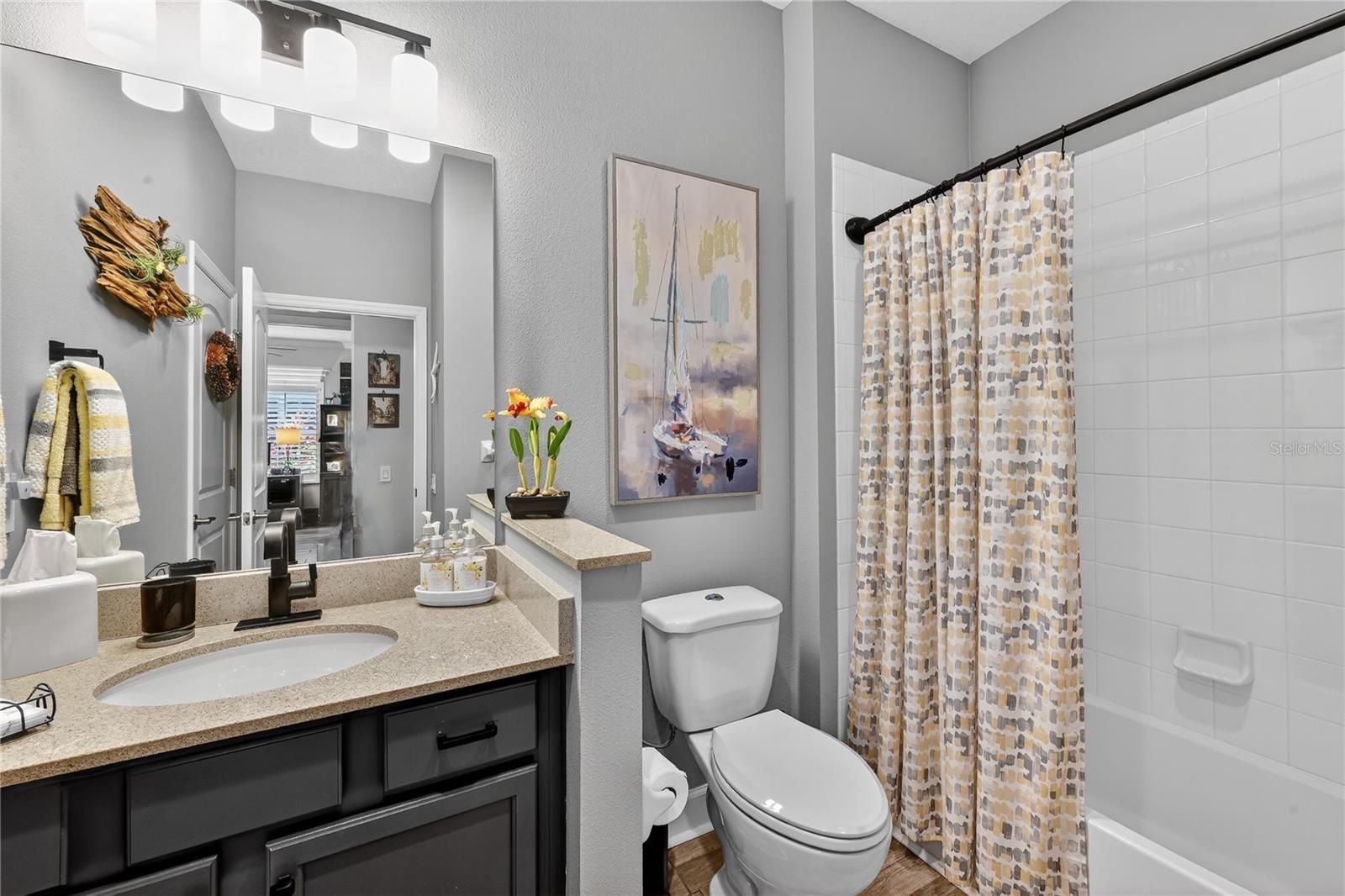 Welcome to Mirabella, a gated 55+ community celebrated for its award-winning LEED Platinum design, where energy efficiency, comfort, and peace of mind come together. This upgraded 2 bedroom 2 bathroom home with a den offers 1,524 square feet of bright, inviting living space built to exceptional standards. Southern exposure fills the home with natural light, enhancing its open feel while supporting consistent indoor comfort year-round. High-end porcelain tile flooring runs throughout, complemented by custom paint and a thoughtfully designed lighting package. The kitchen features brand-new stainless appliances, a spacious island, custom pantry cabinetry, and soft-close drawers and cabinets designed for everyday ease. The primary suite offers a calm retreat with an upgraded bathroom, while the flexible den adapts easily to your lifestyle. A custom-upgraded laundry room adds storage and organization, continuing the home’s polished feel. This home also features a fully solar powered home and the solar is paid off. Newly replaced window coverings with Plantation shutters. The extra-large extended lanai provides an ideal space for relaxing or entertaining, framed by professionally designed landscaping and protected by remote-controlled hurricane-rated Kevlar screens. With fully paid solar power, homeowners enjoy lower utility costs and long-term efficiency. This home also features a complete water filtration system. Located in Flood Zone X(no flood insurance needed) and within one of the highest elevation areas in Manatee County, flood insurance is not required—offering added confidence and savings. The HOA covers internet, cable, exterior maintenance, and painting, and provides access to outstanding amenities including pickleball courts, a beautiful pool, a luxurious hot spa, a modern fitness center, an expansive dog park, and an active 55 plus community room. Close to beaches, shopping, dining, and medical facilities, this home offers a welcoming, energy-smart Florida lifestyle. Whether you are a snowbird or year-round come see why Mirabella is the right community for you.
