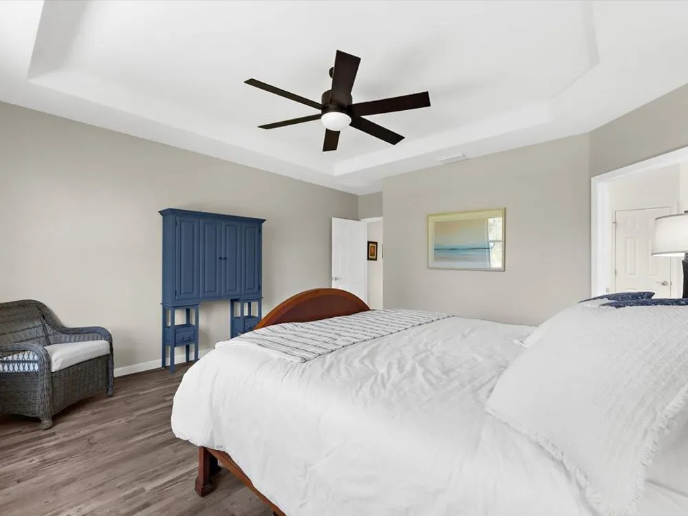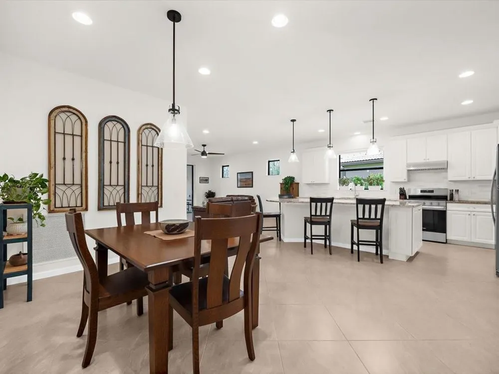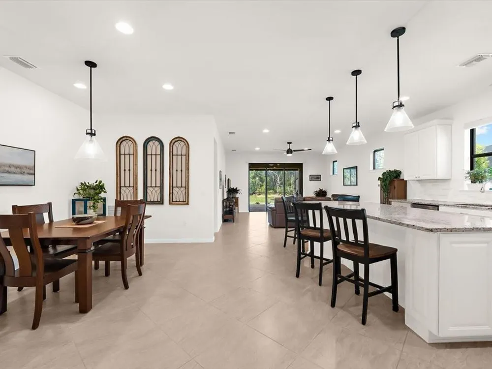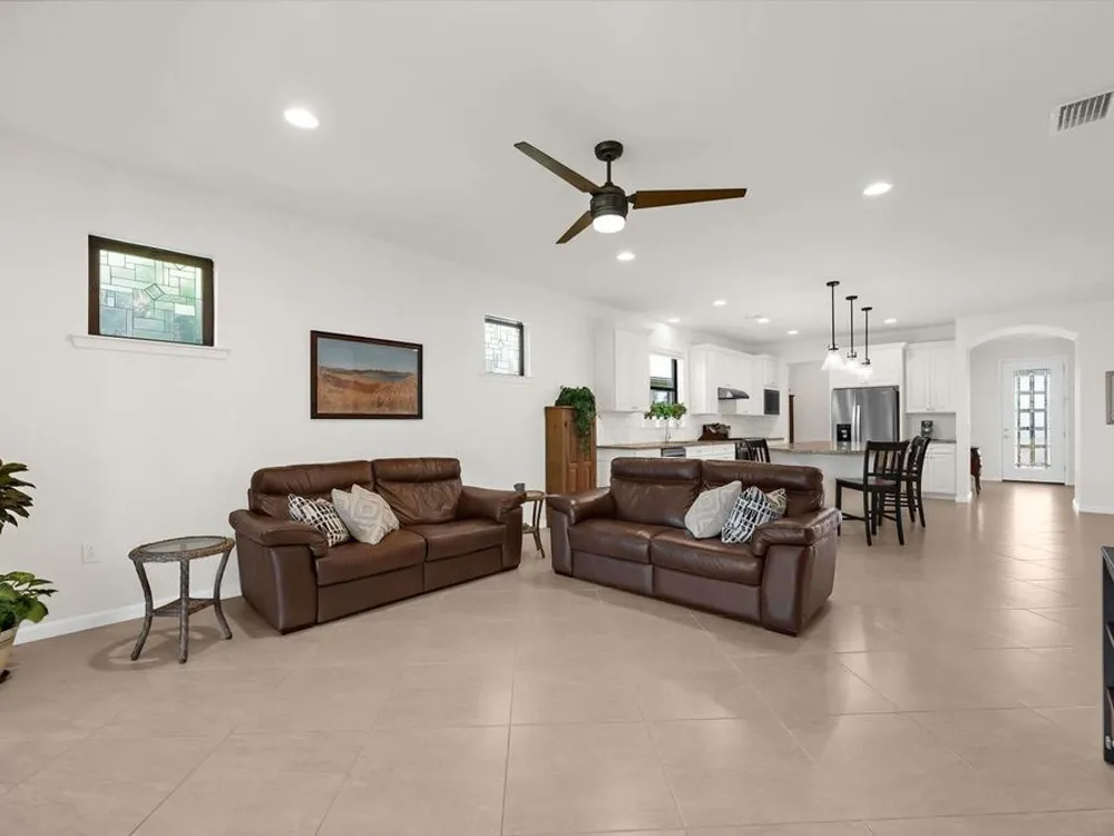 - Ceiling Fan(s), Eat-in Kitchen, In-Wall Pest Control, Kitchen/Family Room Combo, Living/Dining Room, Open Floorplan, Main Level Primary, Solid-Wood Cabinets, Split Bedrooms, Stone Counters, Thermostat, Walk-In Closet(s), Window Treatments