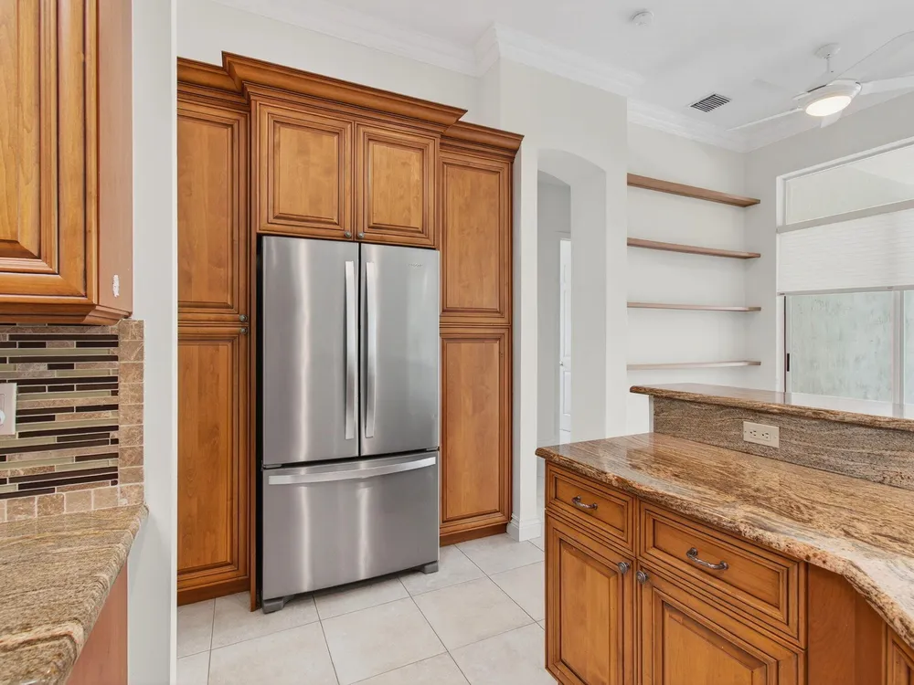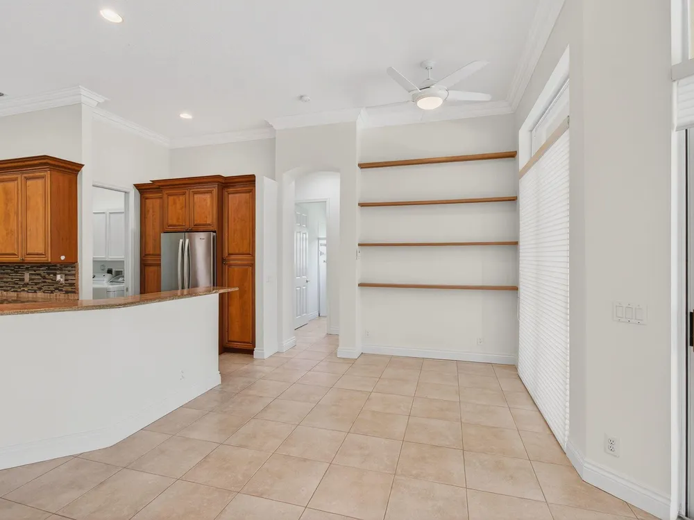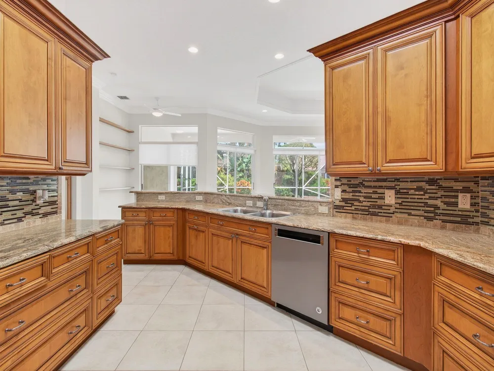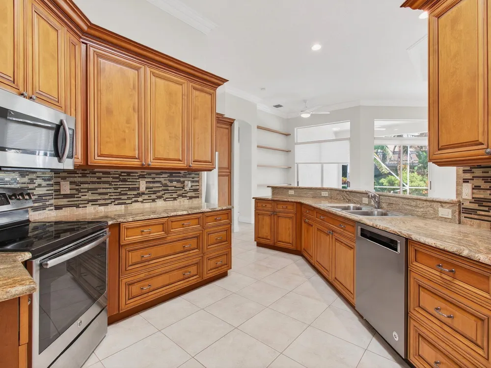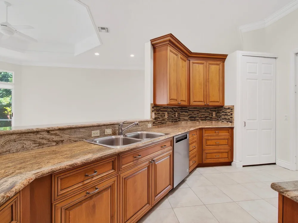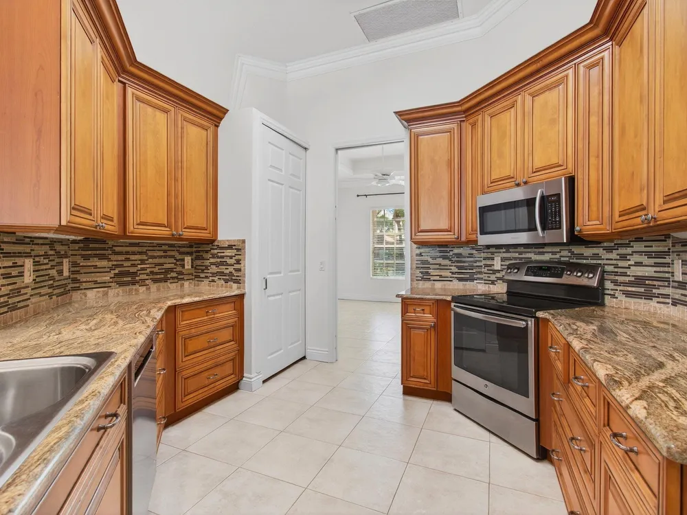 Beautifully maintained Heritage model in the Cascades, offering over 2,400 sq ft of living space and a true 3-bedroom, 3-bath layout. This home has been freshly painted inside and features a new roof replaced in 2021, providing peace of mind for years to come.The spacious floor plan begins with a double-door entry opening to bright living and dining areas with plenty of room for entertaining. The kitchen is a standout, designed with 42'' cabinetry for added height and style, granite countertops, stainless steel appliances, and three large pantry and storage areas with pull-out drawers for maximum organization and convenience. A breakfast nook adds an inviting spot for casual dining, while the open design flows naturally into the main living areas.