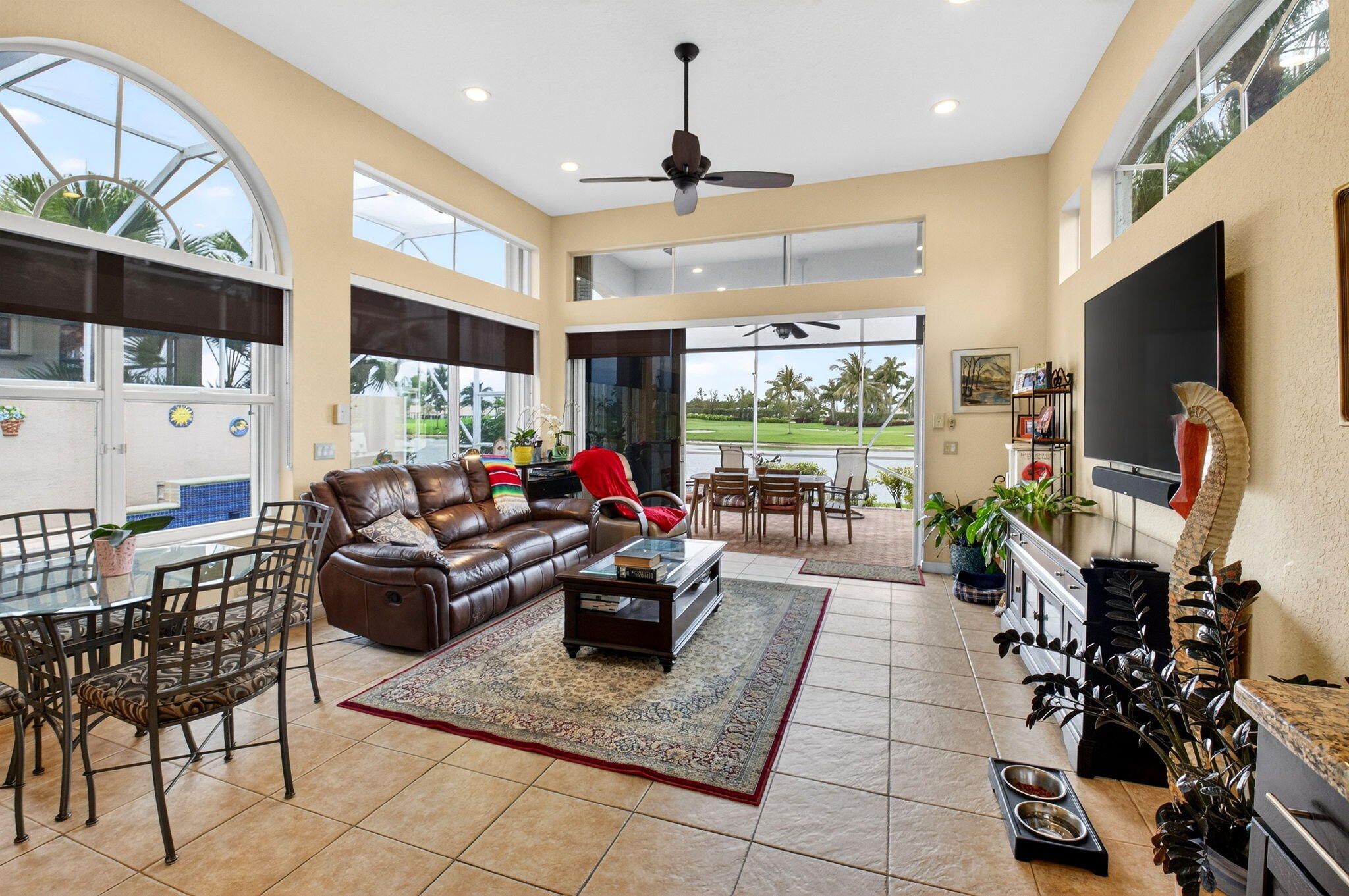 Welcome to the section for the best views in Aberdeen! Turnberry Isle has a reputation of having the best golf, water & sunset views. The 3BR/2.5BA/2car Chelsea is the largest home in the Fairways-3249 total sq ft. Enter this popular model through double glass doors. Enjoy a large living room, spacious den with a casual dining & separate dining room. The triple split floorplan offers guests privacy & room to roam. Roof replaced 2021, AC 2020, accordion shutters are present for hurricane protection. The pool is private & has a heater (not warrantied to work). There is a covered & screened lanai so you can enjoy your outdoors during rain showers. An excellent chef has lived & worked in this kitchen with granite stone counters & wood cabinetry. see more... A convenient wine frig also conveys. The garage also has a chest freezer that conveys. A therapeutic walk-in tub is in the primary bath as well as a huge walk-in shower & 2 sinks. A separate water closet is excellent for privacy. The primary bedroom also has 2 walk-in closets, a sitting area & a door out to your private pool. The 2nd bedroom has an ensuite full bath. A 3rd half bath is next to the office/3rd Br. There are numerous high hats giving the home a bright ambiance. Aberdeen is a mandatory membership club, please see attachments for fee info. Aberdeen features a challenging & immaculate Jim Fazio 18-hole golf course, 14 har-tru tennis courts, 6 pickleball courts, state of the art fitness, 3 pools at main clubhouse, 3 golf & 3 racquet pros, golf & tennis pro shops, 2 bocce ball courts league play for all sports, card rooms, 2 restaurants with indoor & outdoor dining, the sunset lounge with daily happy hour & complimentary hors d'oeuvres, entertainment, & tons of clubs within a club. Buyer/Buyers agent to verify all info contained herein.