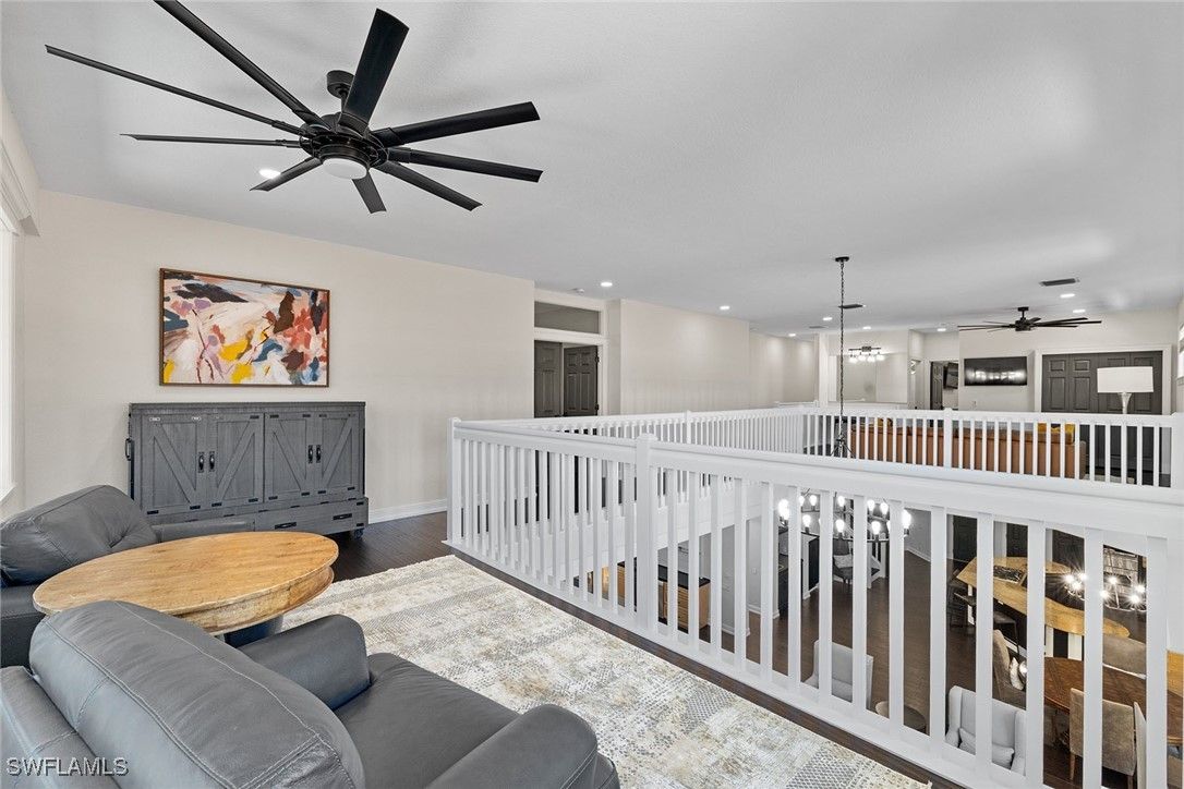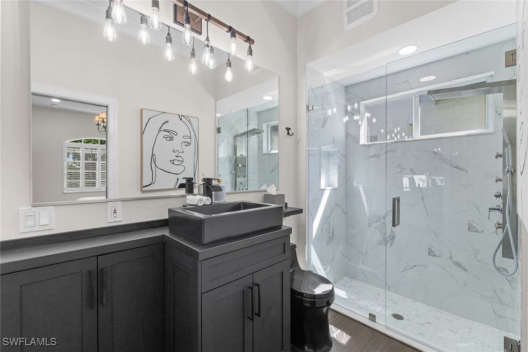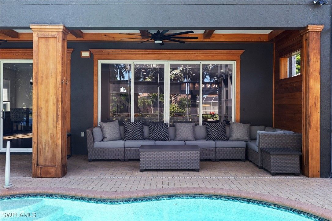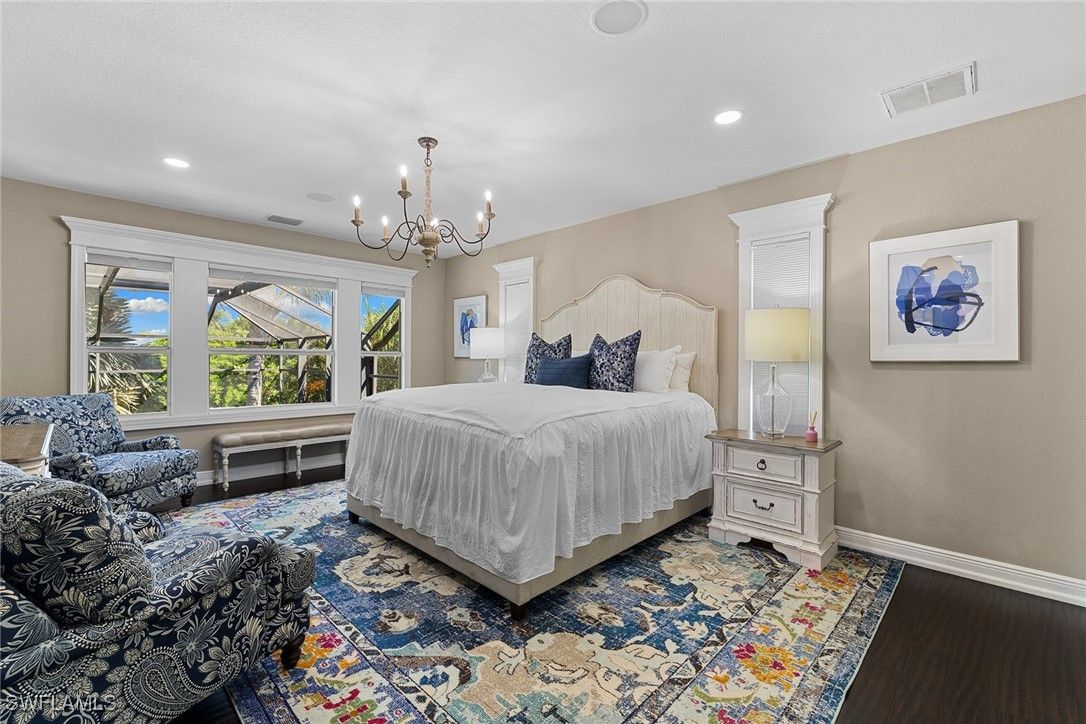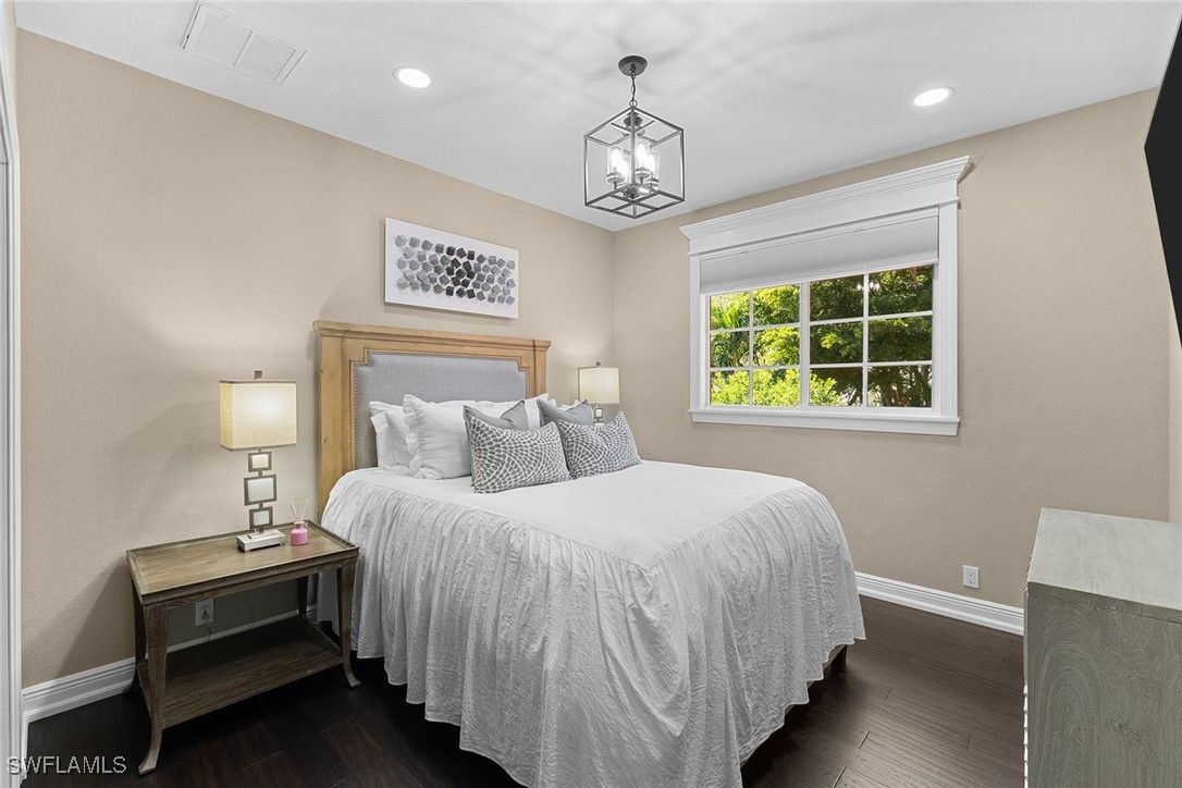 This recently renovated furnished residence in the sought-after Lely Resort offers 3,100 square feet of elegant living space with four bedrooms and three full baths. Designed for both daily comfort and sophisticated entertaining, the home features an expansive kitchen anchored by a 20-foot island, granite countertops, custom cabinetry, a gas cooktop, high-end stainless steel appliances and a coffee bar with a beverage cooler. A second gathering room provides an additional 8-by-5-foot island, a built-in ice maker, a wine cooler and a secondary dishwasher, creating a seamless setting for hosting. Throughout the home, wood flooring, recessed lighting and two fireplaces add warmth and style. The first-floor bedroom provides convenience and privacy for guests, while the upstairs suites include a spacious primary retreat with a spa-inspired bath. The outdoor living space is enhanced by a soaring screened lanai with paver decking, tongue-and-groove accents, ceiling fans, and privacy screens. Overlooking the peaceful lake, the heated pool offers a tranquil backdrop for relaxation. Other key updates include impact windows and doors, a whole-home generator, a buried propane gas tank, a whole-home water filtration system, custom garage cabinet organization and much more! Residents may also take advantage of optional membership at the award-winning Players Club and Spa, which includes resort-style pools, a fitness center, dining venues, tennis, pickleball, and more. Lely Resort also offers three championship golf courses. The home is minutes from the beaches of Naples and Marco Island as well as the cultural and dining attractions of Fifth Avenue South.