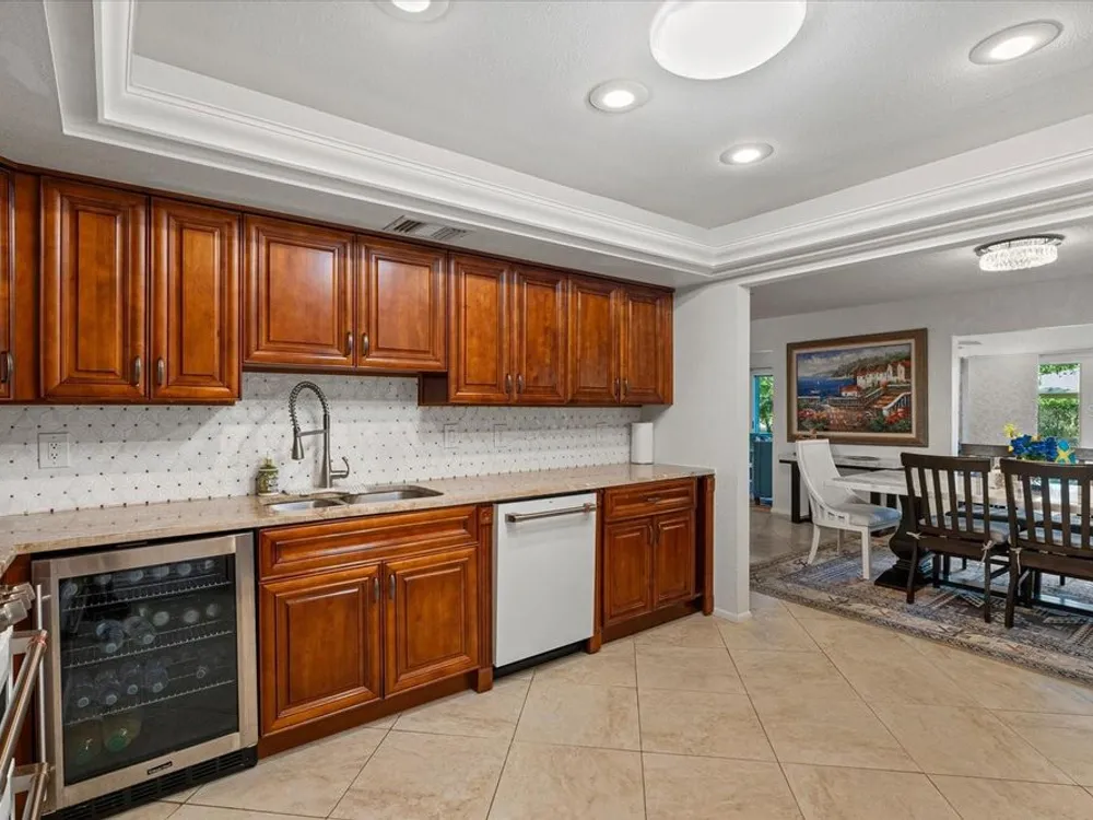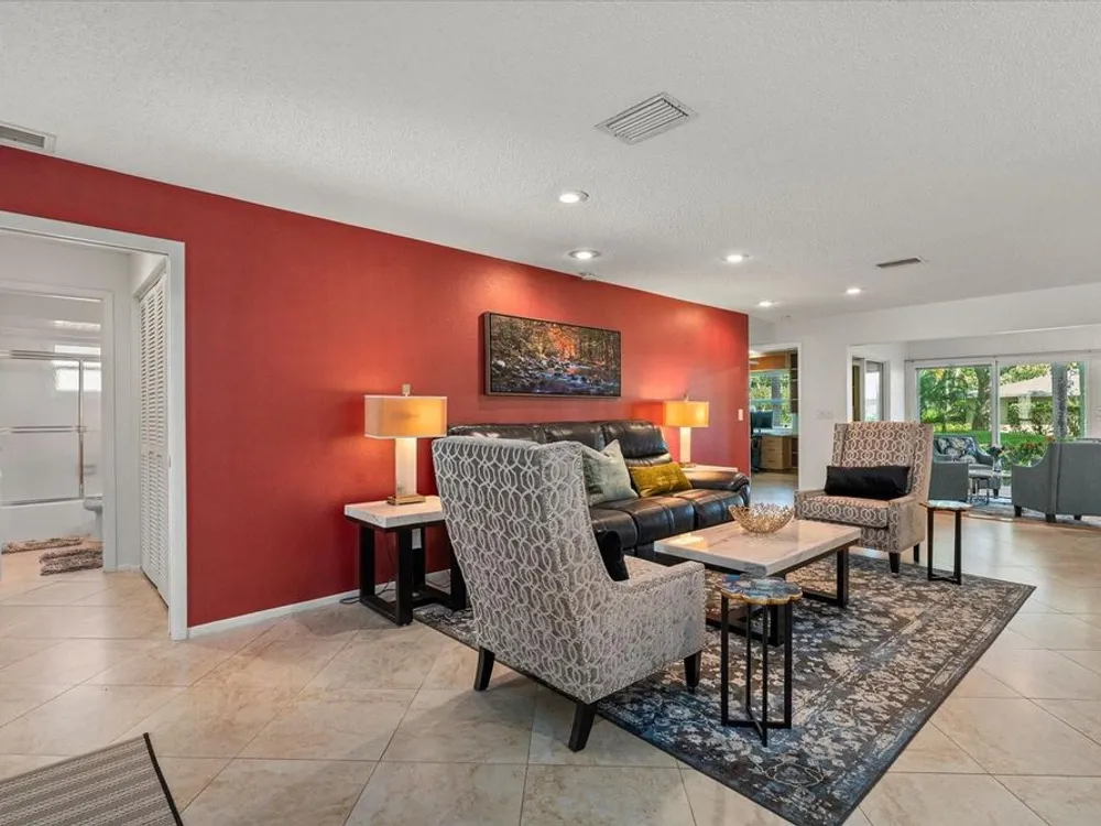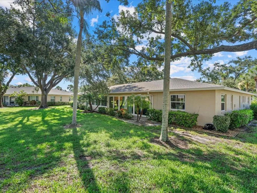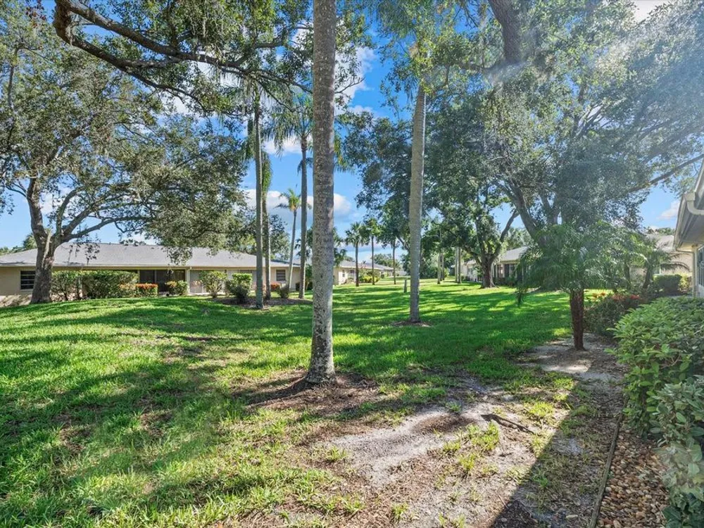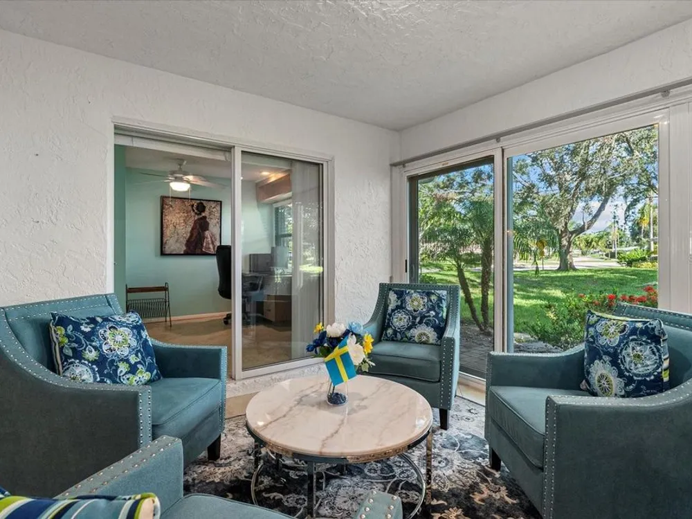 This beautifully renovated villa on a desirable corner lot in Fairway Point offers the ultimate in maintenance-free living just minutes from downtown Sarasota and the Gulf beaches. Step through the paved courtyard and double-door entry into a bright and open floor plan featuring neutral ceramic tile throughout and HIGH IMPACT windows and doors and NEWER ROOF for peace of mind. The gourmet kitchen is a showstopper with solid wood cabinetry, rollout shelves, granite countertops, tile backsplash, and a sleek GE Café appliance package in matte white—including an undercounter beverage fridge—all new in 2022. The spacious living and dining areas flow into a sunny Florida room, perfect for entertaining or relaxing. The primary suite boasts an oversized walk-in closet and a beautifully updated en-suite bath with handicap-accessible modifications. The second bedroom, office, and updated guest bath offer privacy and flexibility thanks to smart pocket doors. Enjoy added features like indoor laundry, a 2020 A/C system, an oversized 1-car garage with epoxy floors and storage, and an expanded paver driveway. Located just a golf cart ride away from the optional Palm Aire Country Club with two golf courses, pools, tennis, pickleball, fitness center, and dining, this home is also close to shopping, restaurants, SRQ Airport, medical facilities, and Sarasota’s top attractions. Don't miss this move-in ready gem in one of Sarasota’s most sought-after communities!