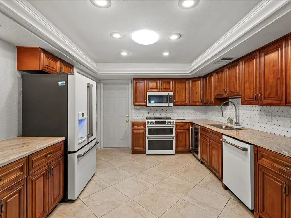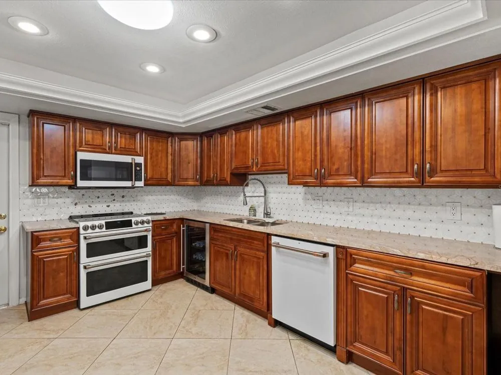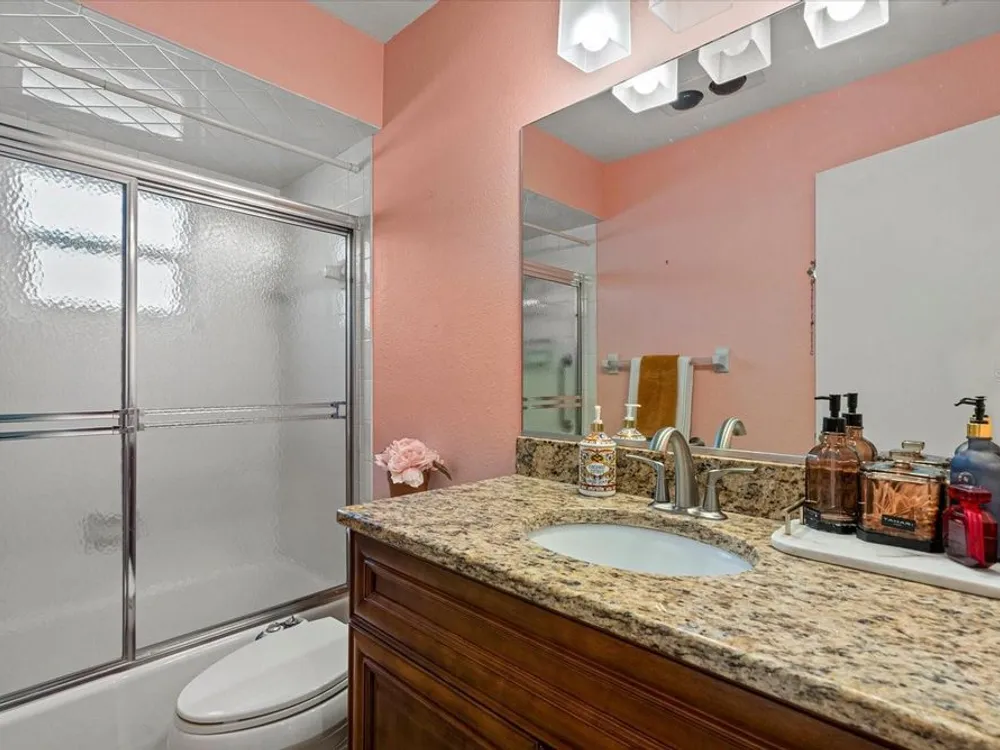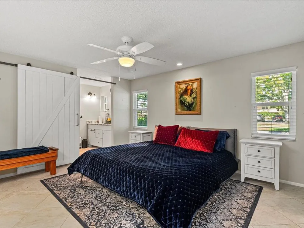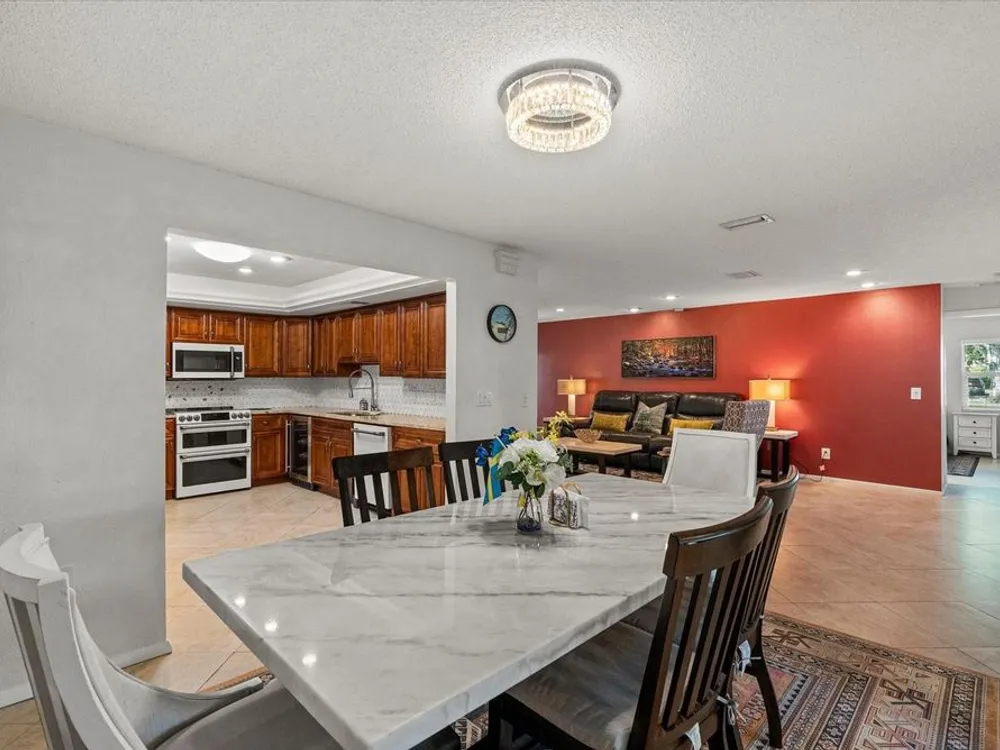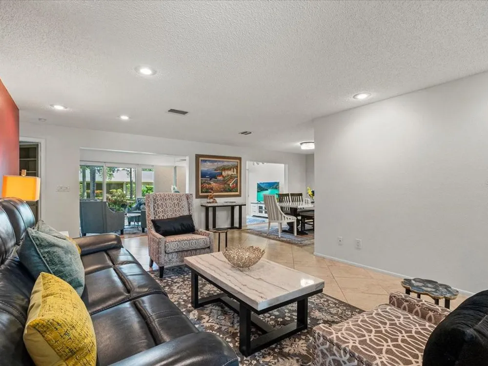 This beautifully renovated villa on a desirable corner lot in Fairway Point offers the ultimate in maintenance-free living just minutes from downtown Sarasota and the Gulf beaches. Step through the paved courtyard and double-door entry into a bright and open floor plan featuring neutral ceramic tile throughout and HIGH IMPACT windows and doors and NEWER ROOF for peace of mind. The gourmet kitchen is a showstopper with solid wood cabinetry, rollout shelves, granite countertops, tile backsplash, and a sleek GE Café appliance package in matte white—including an undercounter beverage fridge—all new in 2022. The spacious living and dining areas flow into a sunny Florida room, perfect for entertaining or relaxing. The primary suite boasts an oversized walk-in closet and a beautifully updated en-suite bath with handicap-accessible modifications. The second bedroom, office, and updated guest bath offer privacy and flexibility thanks to smart pocket doors. Enjoy added features like indoor laundry, a 2020 A/C system, an oversized 1-car garage with epoxy floors and storage, and an expanded paver driveway. Located just a golf cart ride away from the optional Palm Aire Country Club with two golf courses, pools, tennis, pickleball, fitness center, and dining, this home is also close to shopping, restaurants, SRQ Airport, medical facilities, and Sarasota’s top attractions. Don't miss this move-in ready gem in one of Sarasota’s most sought-after communities!