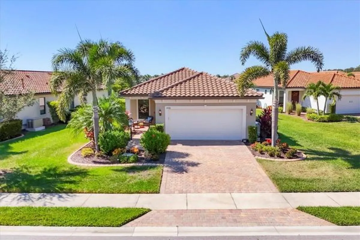 WHY WAIT TO BUILD? GORGEOUS, WATER VIEW POOL HOME IS READY NOW AND WITH A NEW PRICE! Welcome to Del Webb Lakewood Ranch and this adorable, highly upgraded Contour model featuring a superb water view and a gorgeous 2 year new saltwater pool surrounded by custom travertine pavers and an oversized lanai with remote-control storm shutters all the way around. The custom landscaping with decorative curbing and accent lighting enhances the expansive curb appeal, which offers exceptional privacy and a perfect setting to enjoy sunset views over the pond while relaxing in your no-see-um screened lanai. Step inside this meticulously maintained home, where porcelain tile floors and custom crown molding set an elegant tone throughout. The chef’s kitchen is a showstopper, featuring KitchenAid appliances, granite countertops, a custom tile backsplash with under-cabinet lighting, pull-out shelving in all lower cabinets, and an oversized island that seats three—ideal for cooking, entertaining, or casual dining. The master bedroom suite offers a tranquil retreat with water views, porcelain tile flooring, ceiling fan, and a spa-like bath complete with dual sink vanity with drawers, a tiled step-in shower with upgraded glass door, private water closet, linen closet, and a large walk-in closet. The guest bedroom is spacious and bright, featuring a walk-in closet, recessed lighting, and easy access to the guest bath. The cozy den provides flexible space for a home office, craft room, or additional guest area. Additional highlights include a whole-house generator, remote-control hurricane blinds, hurricane panels, epoxy garage floor, designer lighting and hardware, upgraded trim package, and a new water heater (2024). Del Webb Lakewood Ranch offers a vibrant, amenity-rich 55+ lifestyle with tennis, pickleball, bocce, fitness center, resort and lap pools, on-site restaurant and bar ($500 annual food & bev fee) & a full-time Lifestyle Director curating endless activities—all within a golf cart-friendly gated community. Ideally located near Sarasota, Bradenton, Tampa, and award-winning Gulf Coast beaches, this move-in ready home is your perfect opportunity to embrace Florida living at its best—schedule your showing today!