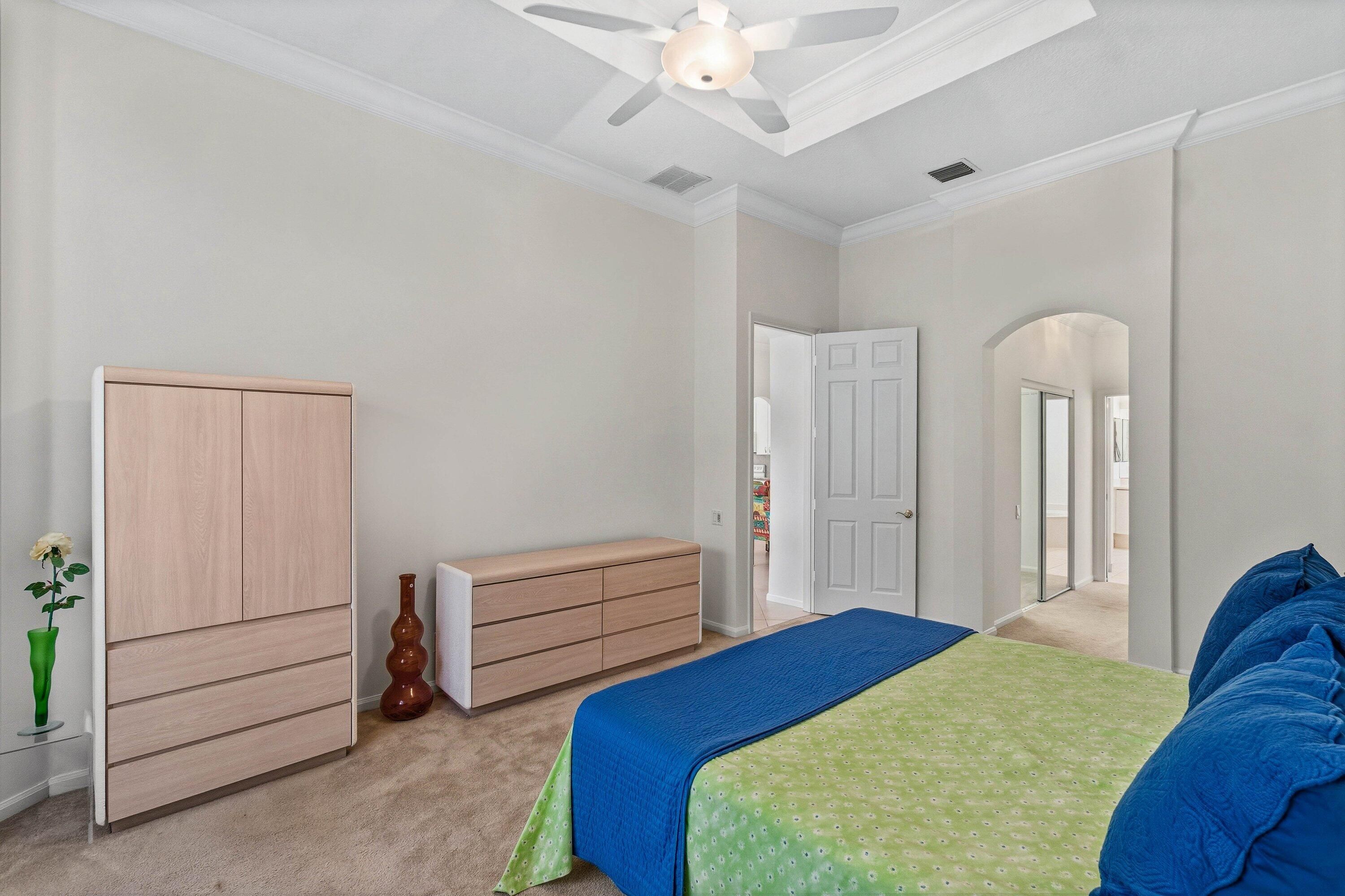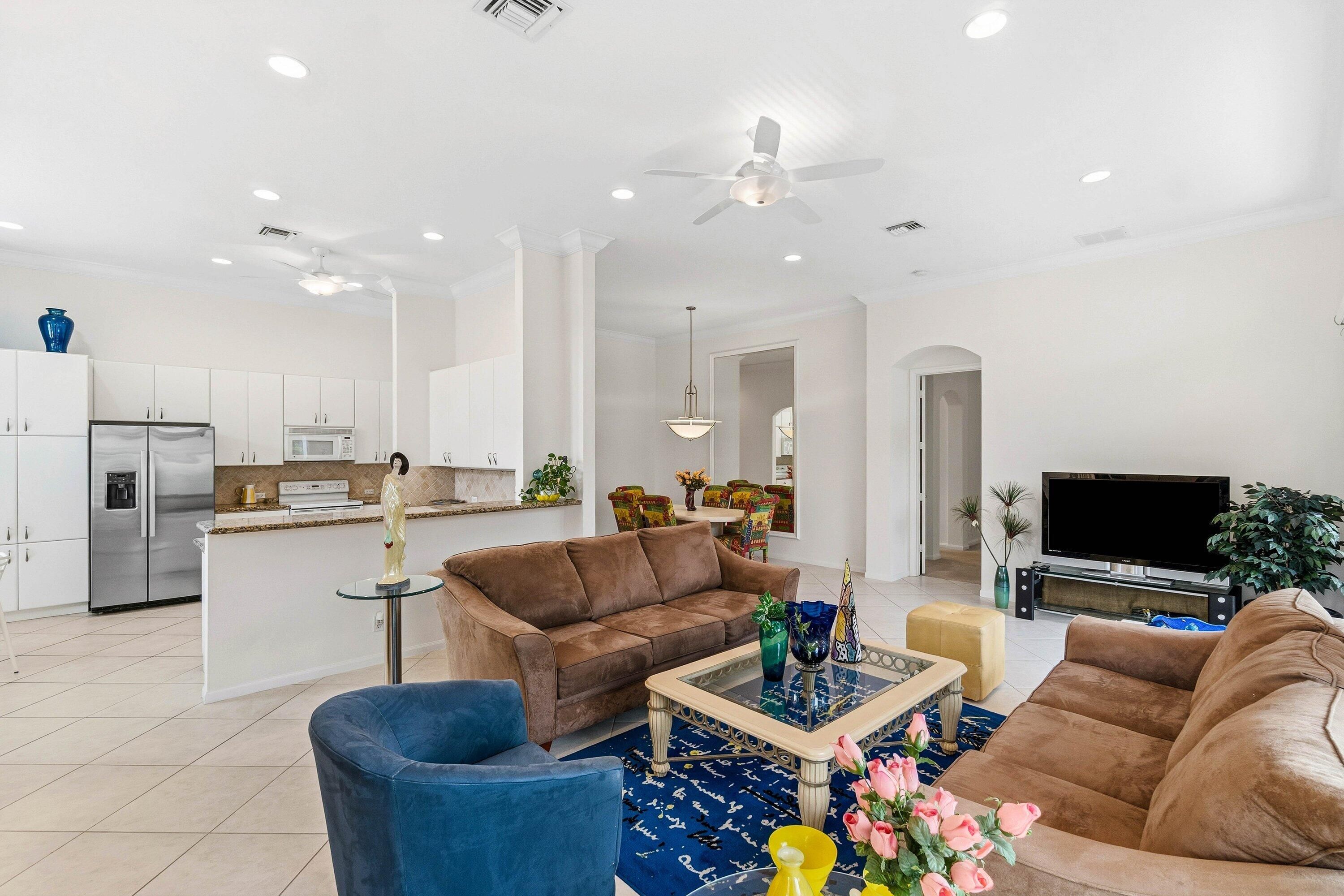 Charming Alexander great room design placed on a quiet cut de sac street in desirable Bellaggio. Recently refreshed with fresh interior paint, this home offers a bright, clean canvas ready for its next owner. Privacy galore in this luscious garden view home. Oversized screen enclosure to bring the living space to the outdoor space. Tranquility to enjoy any of your outside hobbies of reading, listing to music or just communing with nature. Inside you can enjoy one of the most popular floor plans offering volume ceilings and open kitchen /great room design. Newer A/C 2021/ Electric blinds on great room sliding doors, accordion shutter protection. Some furniture available.