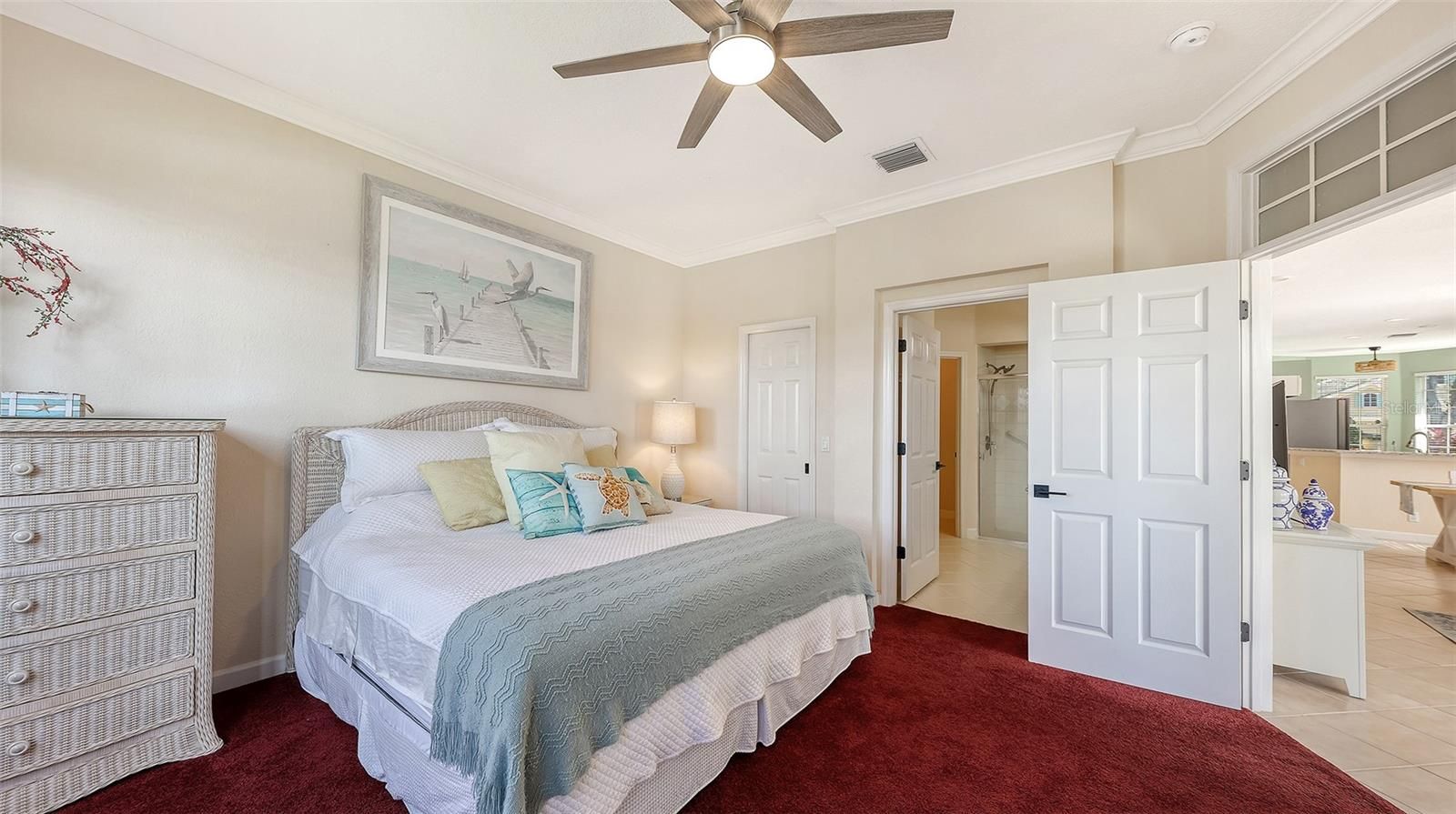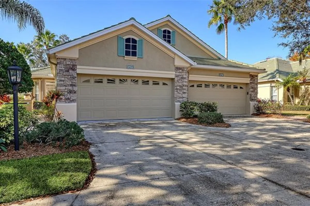 Charming lakeside villa in the gated Avalon at the Villages, ideally located in Sarasota’s sought-after Palm Aire area. This secure, maintenance-free community offers a relaxed, low-maintenance lifestyle with strong appeal for both full-time residents and seasonal owners. Built as a model home, the residence features 2 bedrooms, 2 baths, a den, and a 2-car garage. The open floor plan feels light and inviting, designed for comfortable living and effortless entertaining. The primary suite includes a walk-in shower and thoughtful layout for everyday ease. Recent improvements and added peace-of-mind features include a 2020 roof, Bosch dishwasher (2021), lanai re-screening (2023), hurricane shutters, upgraded lighting, fans and hardware (2024), new stainless steel refrigerator, oven/stove, and microwave (2024), powered blinds and more. Optional golf and social memberships are available at the Palm Aire Golf & Country Club, offering additional recreation and community connection. HOA fees are exceptionally reasonable and include exterior painting, roof pressure washing, cable TV, landscaping, and access to the heated community pool. The location is minutes from UTC Mall and surrounded by top-tier dining, shopping, and entertainment options, making it one of Sarasota’s most convenient and desirable villa settings.