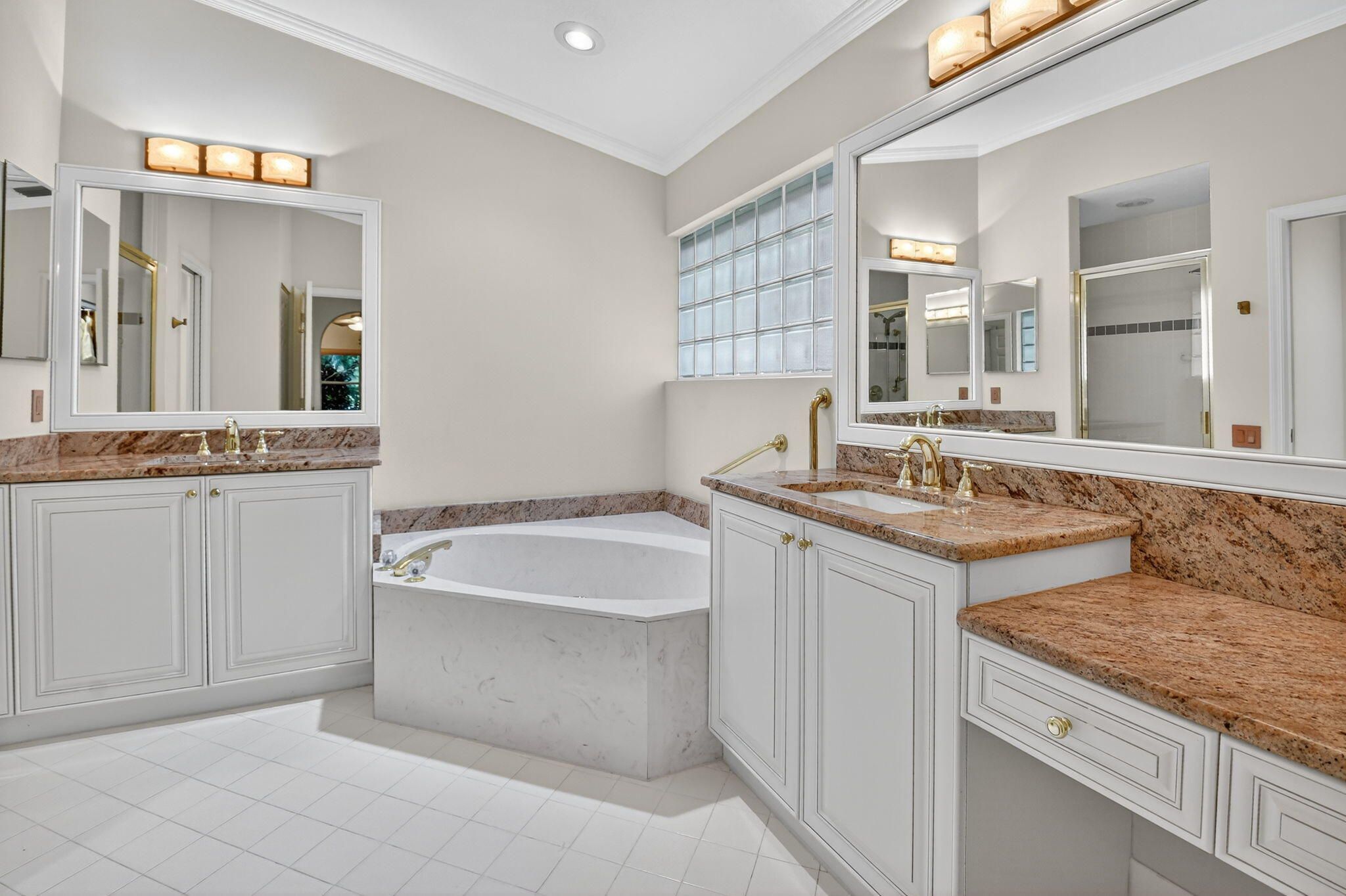 - Walk-In Closet(s), Split Bedrooms, Eat-in Kitchen, Separate/Formal Dining Room, Dual Sinks, Main Level Primary, Separate Shower, Whirlpool
