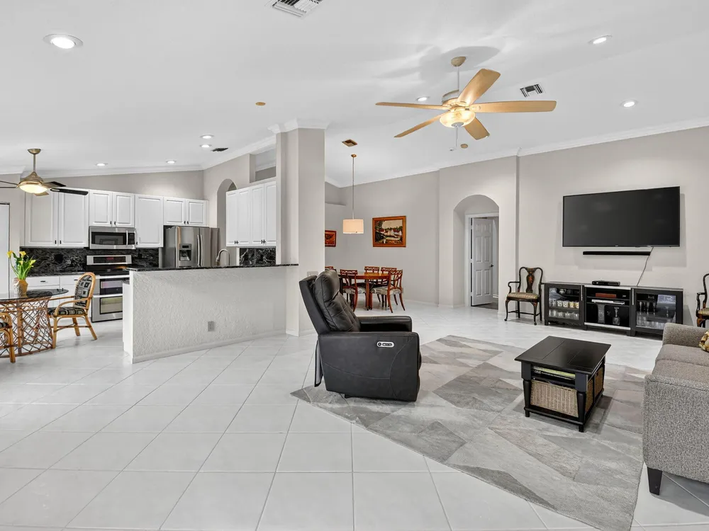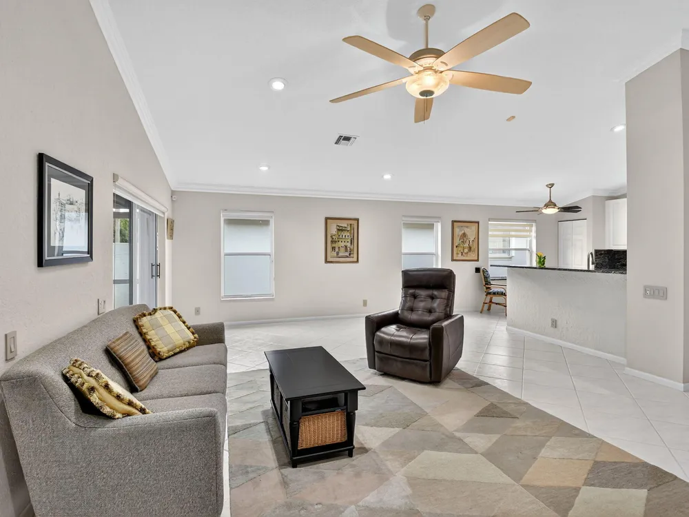 Welcome Home. This is the Balmoral Model w/ the Wall removed which offers an open concept Home. Light, Bright and Airy . Updated in all aspects. Kitchen ,and Both Bathrooms have been updated. Bedrooms are outfitted with Custom Closet systems. Bathroom and Kitchen Cabinets have sleek granite countertops, and cabinets have pull-out drawers for convenience and ease. Hi Hats, Ceiling Fans throughout. Accordion Shutters for Hurricane Protection. Enjoy your morning beverage on an Extended Screened in Lanai with beautiful shrubs, and a view of Golf Course. The Lanai provides Privacy and Relaxation. Amenities Abound! in this premier 55+ Community., Pickleball, Resort Style Pool, Clubhouse and Cafe on premises! Come live the Lifestyle. Country Club Living without Country Club Fees.