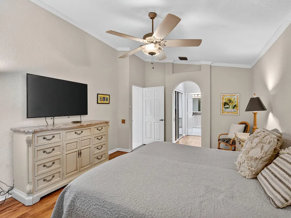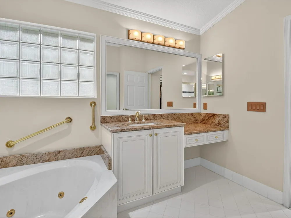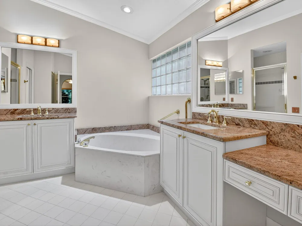 - Split Bedrooms, Walk-In Closet(s), Eat-in Kitchen, Separate/Formal Dining Room, Blinds, Dual Sinks, Primary Downstairs, Separate Shower, Whirlpool, Storm Shutters