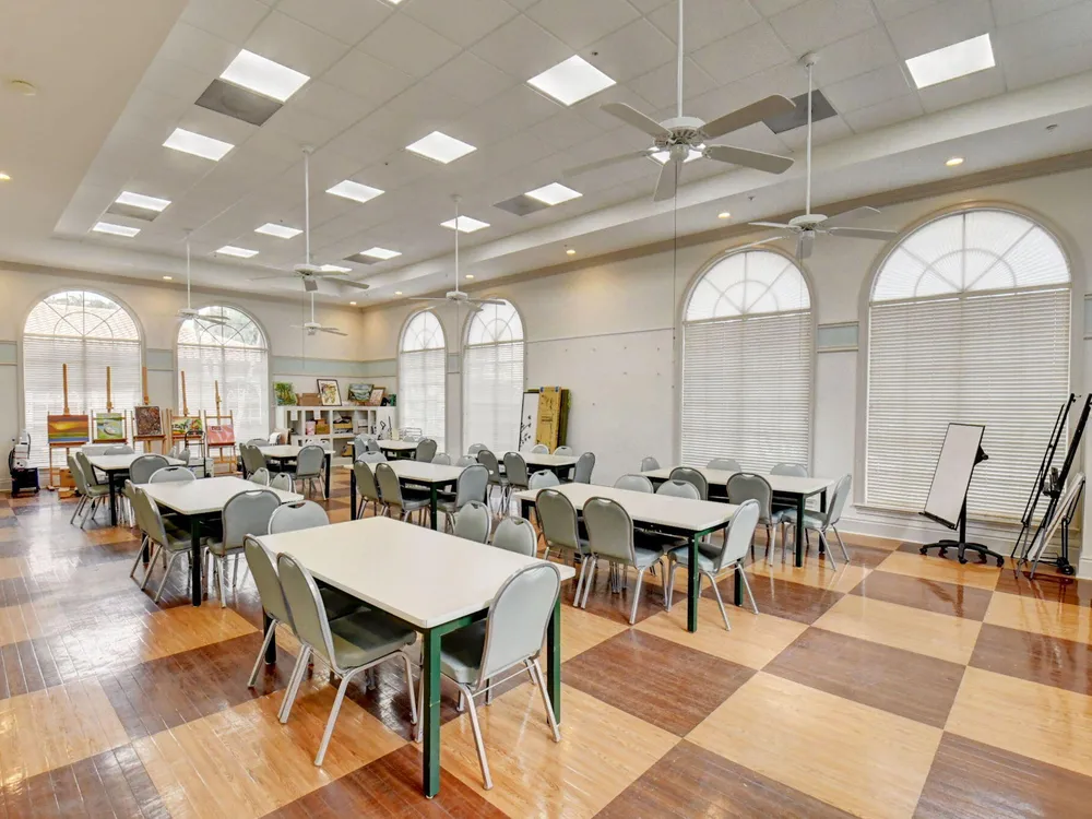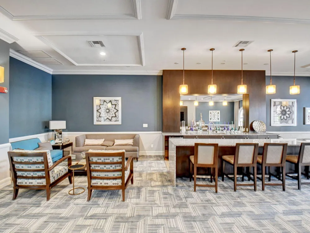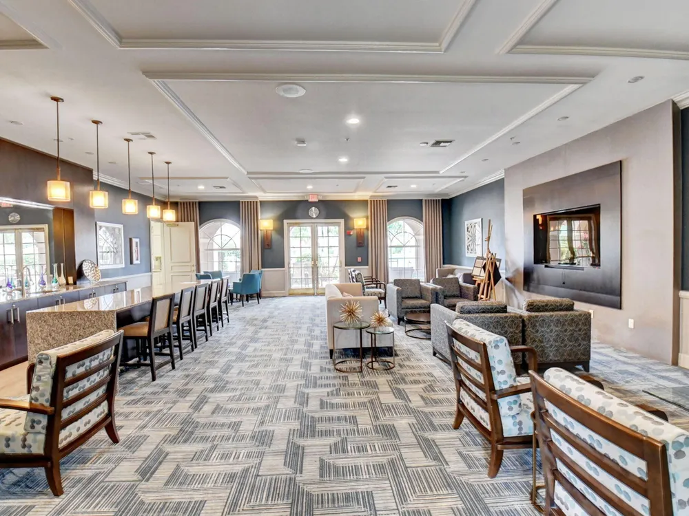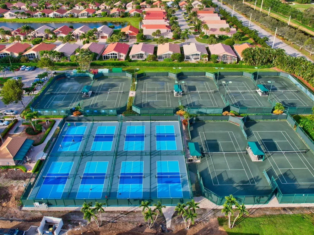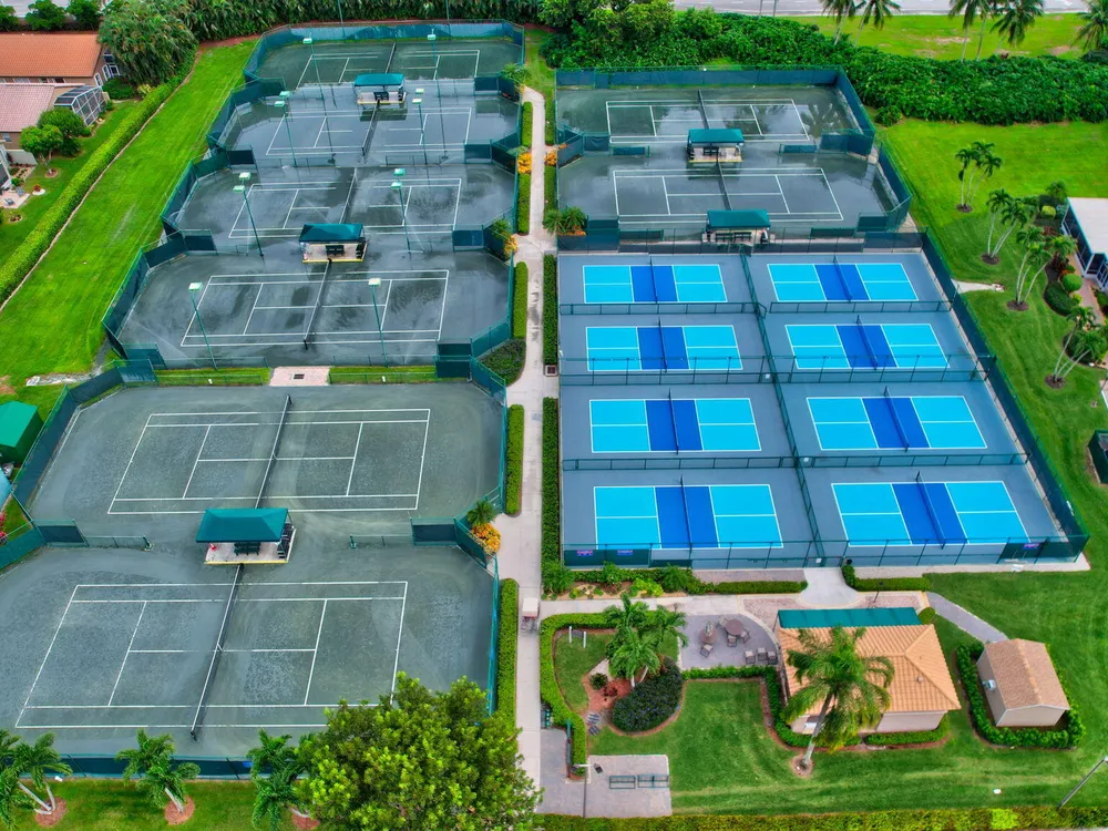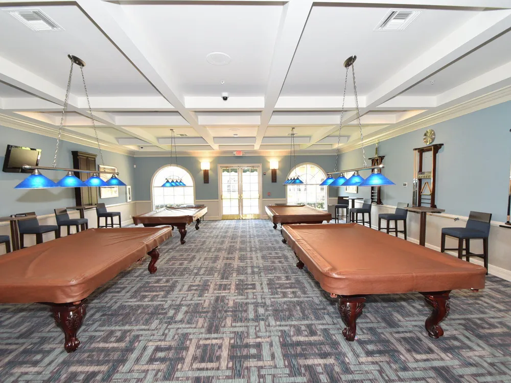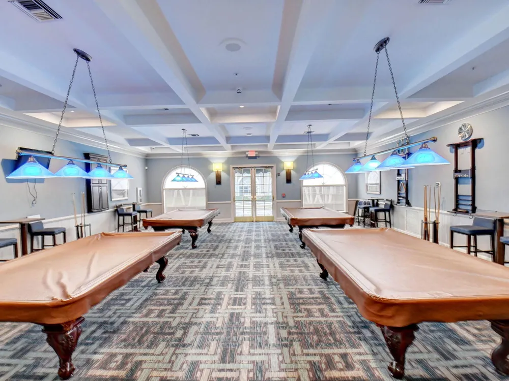 - Billiard Room, Bocce, Restaurant, Clubhouse, Community Room, Fitness Center, Game Room, Sidewalks, Tennis Court(s), Whirlpool