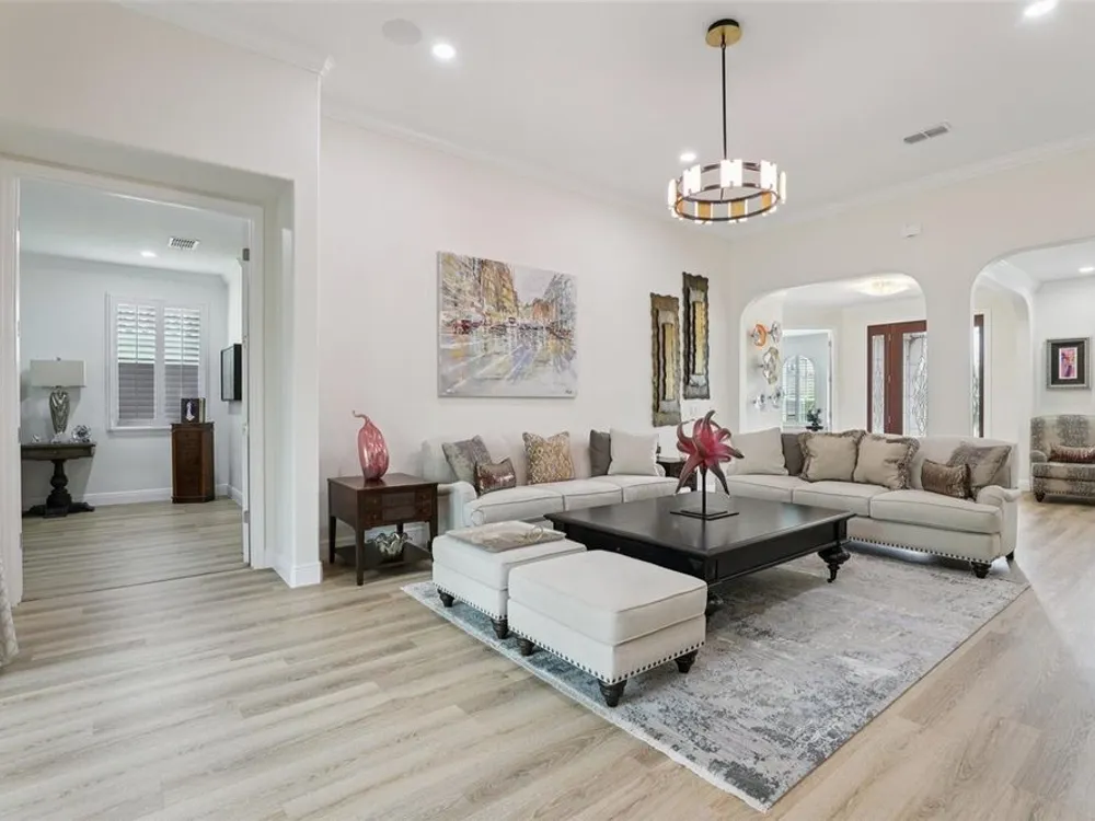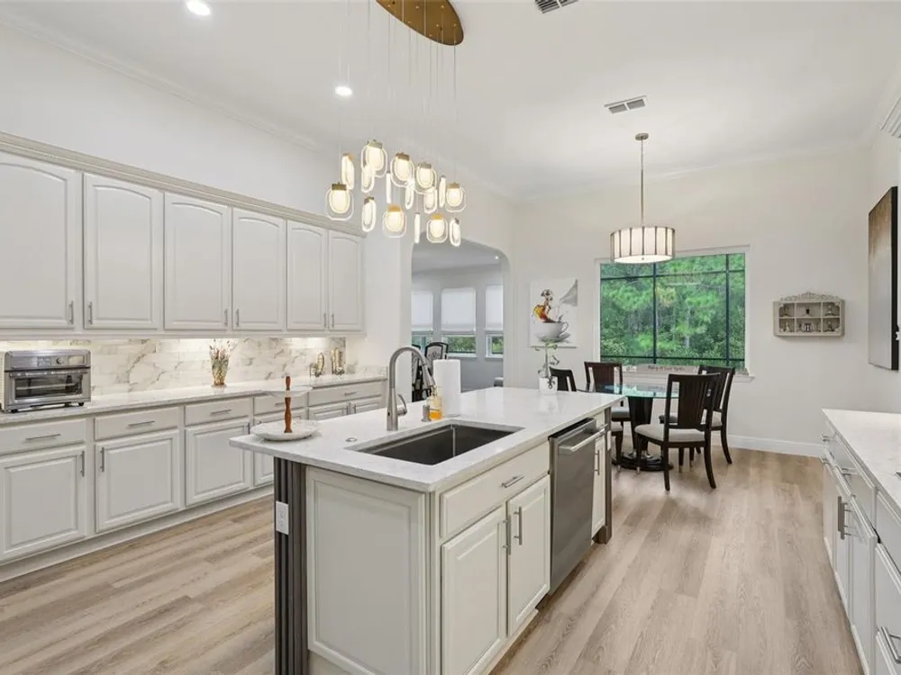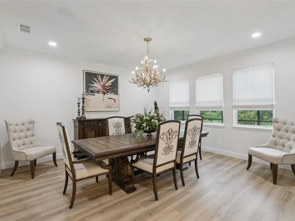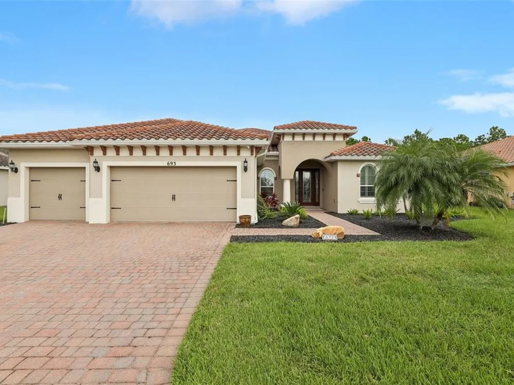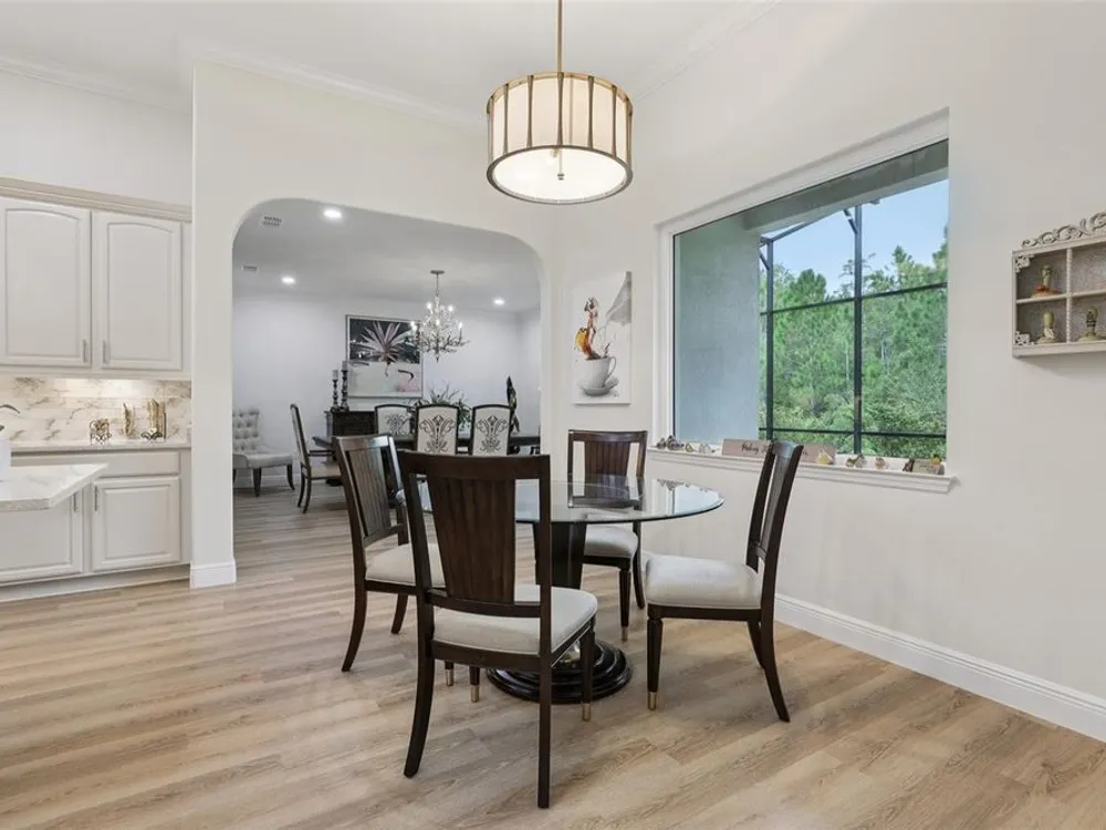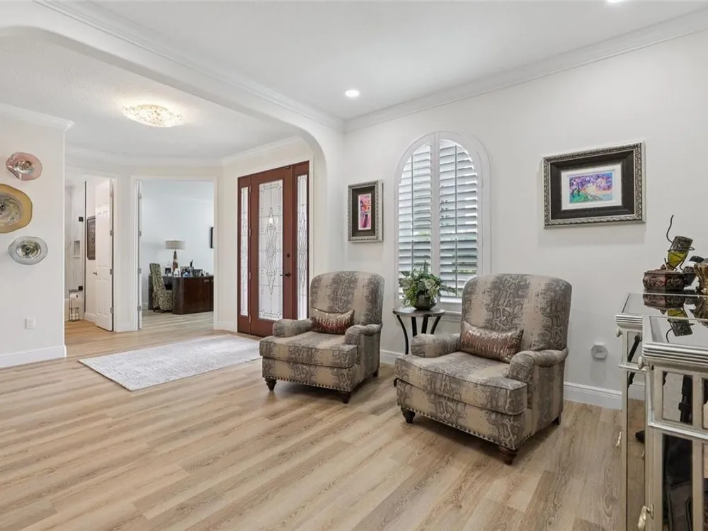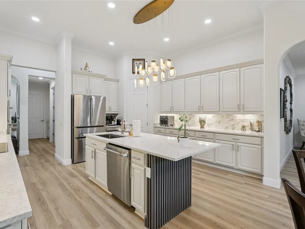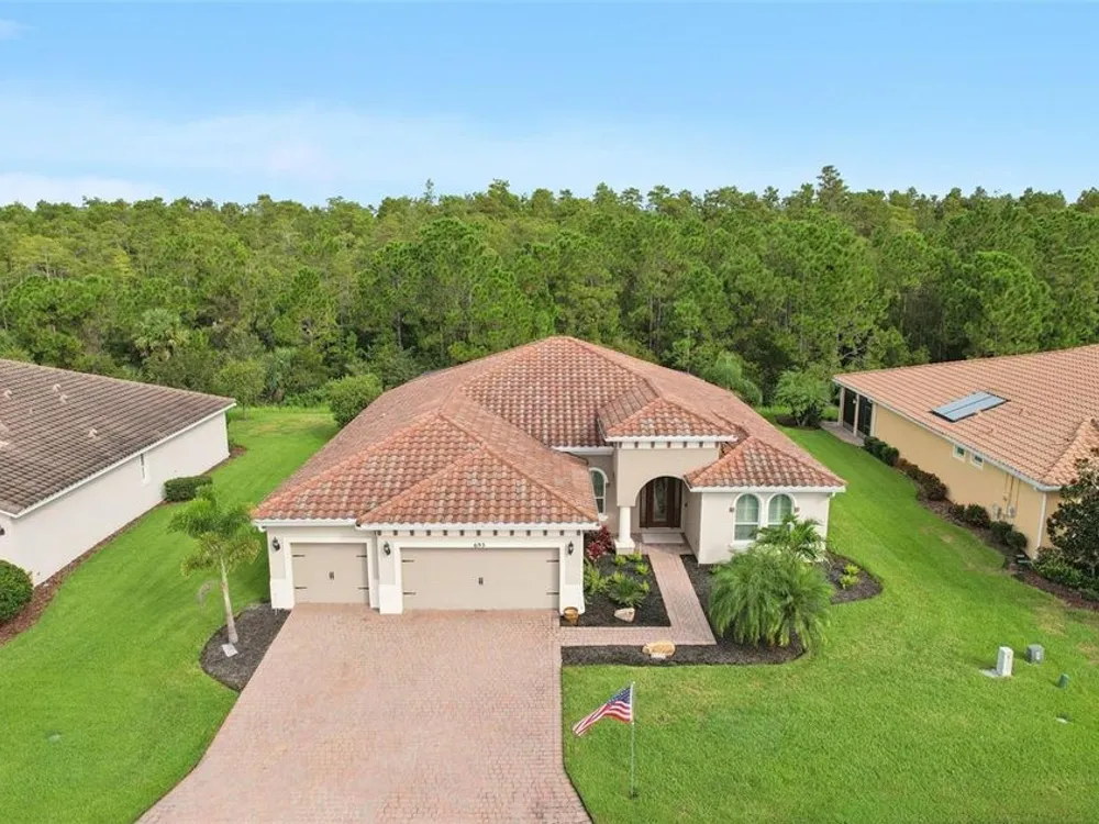 Seller may consider buyer concessions if made in an offer ~ Welcome to resort style living at its finest in the vibrant 55+ gated community of Solivita! This stunning Grand Estate Pesaro model home is perfectly situated on a lush .24 ACRE CONSERVATION LOT in the sought after Portofino Estates subdivision. With picturesque WOODED VIEWS and NO REAR NEIGHBORS, this beautifully upgraded, single story home offers both peace and privacy, along with over 2,700 square feet of thoughtfully designed living space. Enter through a striking leaded glass front door with dual sidelights and experience a home that exudes warmth, sophistication and modern elegance. Extensively RENOVATED IN 2025, this move-in ready floor plan features spacious bedrooms, three full bathrooms, and a versatile FLEX SPACE that easily serves as a fourth bedroom or home office. The split layout delivers privacy for guests and the homeowner, while formal living and dining areas set the stage for special gatherings. At the heart of home is the chef’s dream kitchen, designed to impress with BRAND NEW GE CAFE SERIES APPLIANCES, a Bosch refrigerator, GE profile cooktop, QUARTZ COUNTERTOPS, and a new porcelain tile backsplash. Soft-close drawers and lower pull-outs add convenience, and a casual breakfast nook flows into the inviting family room, creating a seamless space for everyday living. The new picture window in the kitchen frames the tranquil backyard views, and new doors in both the living room and the primary suite lead to a spacious SCREENED LANAI – perfect for enjoying Florida’s idyllic indoor/outdoor lifestyle! Your PRIMARY SUITE is a private retreat at the back of the home with serene views and a spa inspired en-suite bath boasting a luxurious walk-in shower with a diverter and four body sprays, quartz counters, and custom wall tile extending to the ceiling. The two additional bedrooms offer generous closet space with custom organizers and access to beautifully updated full baths, all finished with designer selected materials. Additional noteworthy highlights include: LUXURY VINYL PLANK FLOORING throughout, recessed LED lighting, a NEW LENNOX A/C SYSTEM with SMART THERMOSTAT (2024), a NEW RHEEM WATER HEATER (2024), a state-of-the-art home security system with cameras, and Sonos pre-wire with four in ceiling speakers for the ultimate audio experience. The OVERSIZED 3-CAR GARAGE features an epoxy finished floor and provides ample parking and storage space. Beyond the home, Solivita gives residents an unmatched lifestyle with over 4,300 acres of guard gated community space, including 2 PGA RATED/18 HOLE GOLF COURSES, 14 heated pools, tennis and pickleball courts, a fitness center, walking trails, community gardens, restaurants, entertainment, and over 200 resident clubs and activities. The HOA includes lawn care as well as CABLE & INTERNET, making maintenance a breeze. Whether you are looking for a year-round home or seasonal escape, this gorgeous estate is your gateway to the active, connected lifestyle Solivita is known for. Move in, relax, and enjoy every moment – because here, you don’t just live... you live beautifully! Call today to schedule a tour!