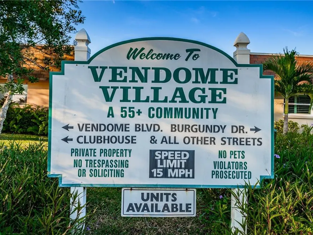 Owner Motivated! Discover the allure of this hidden gem nestled within the vibrant 55+ community of "Vendome Village". This move-in-ready villa offers a perfect blend of comfort and style, featuring one spacious bedroom with a walk-in closet and 1.5 elegantly updated bathrooms. The convenience of a well-appointed 1-car garage adds to the appeal of this residence. Step into the welcoming embrace of the Great Room, seamlessly blending functionality and aesthetics. The villa boasts a bonus room that provides flexibility for various uses, whether it be a cozy den, home office, or hobby space. A rear paver patio beckons you to enjoy outdoor moments in a private and tranquil setting. The luxury of new windows and freshly painted interiors, creating an inviting atmosphere throughout. The property is adorned with new flooring and trim, showcasing attention to detail and modern design. This maintenance-free home ensures that your time is spent enjoying the array of amenities offered by the community. Vendome Village offers more than just a home; it provides a lifestyle enriched with community features. Take a refreshing dip in the community pool, engage in friendly games of shuffleboard, and make use of the dedicated facility for social functions. Embrace the camaraderie of like-minded neighbors while relishing the ease of a meticulously maintained environment. Seize the opportunity to reside in this thoughtfully designed villa where comfort, convenience, and community converge. Your hidden gem awaits in the heart of Vendome Village, offering a haven for those seeking an enriching 55+ lifestyle.