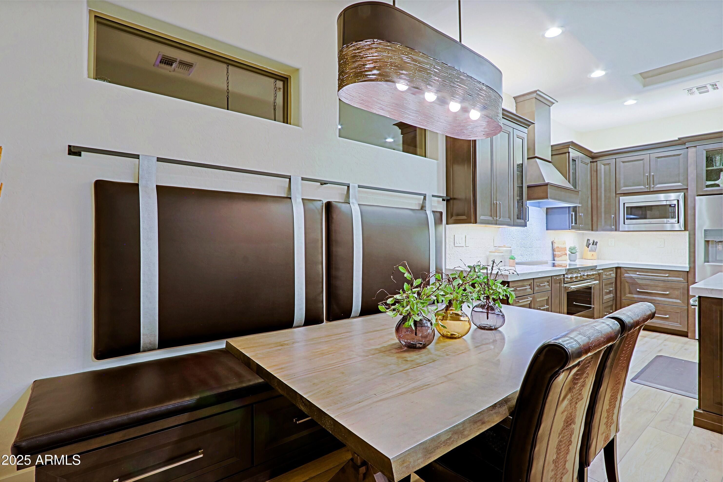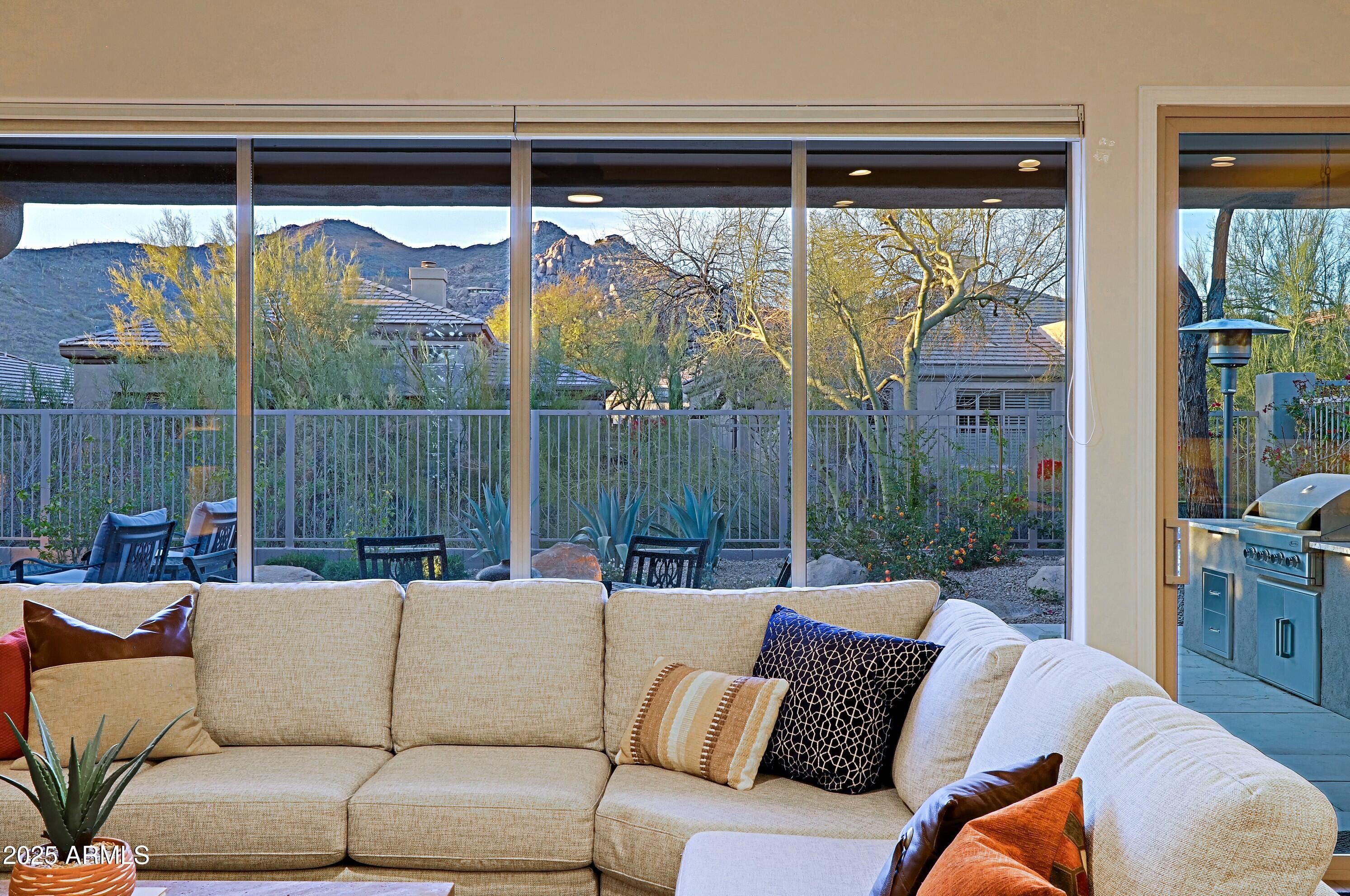 TERRAVITA EXPANDED NOVUS WITH EXQUISITE DESIGNER UPDATES AND MOUNTAIN VIEWS! Two bedrooms and two bathrooms plus casita with full bathroom. Two car garage. New Anderson Windows/AC/Roof. Main bedroom has expanded area for office/seating area. Light porcelain pavers at entrance and backyard. The entrance has a lovely courtyard area for seating to accommodate the main home and casita. Foyer opens to great room, kitchen and dining area. Windows to patio area and taking in Arizona beauty plus mountain views. Great room has large entertainment wall with stacked stone in center with fireplace and TV and side shelving display units. Dining room has doors to patio area plus dining area with amazing built-in bench and wall cushioned backing plus below drawers for storage. Walk to the club