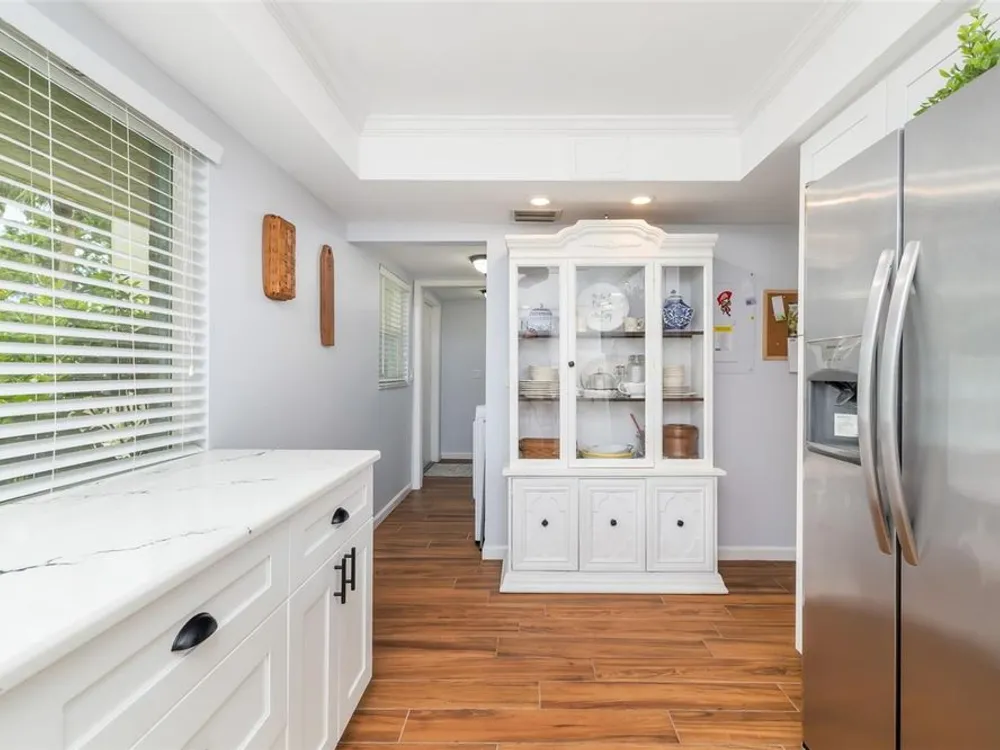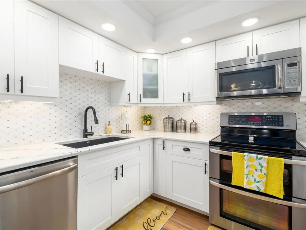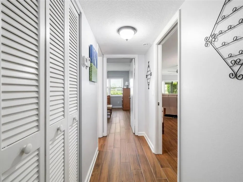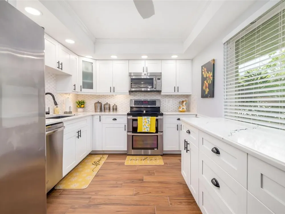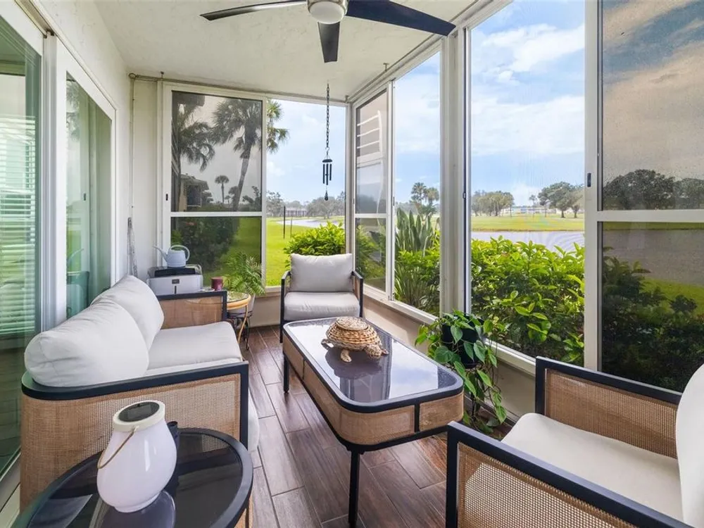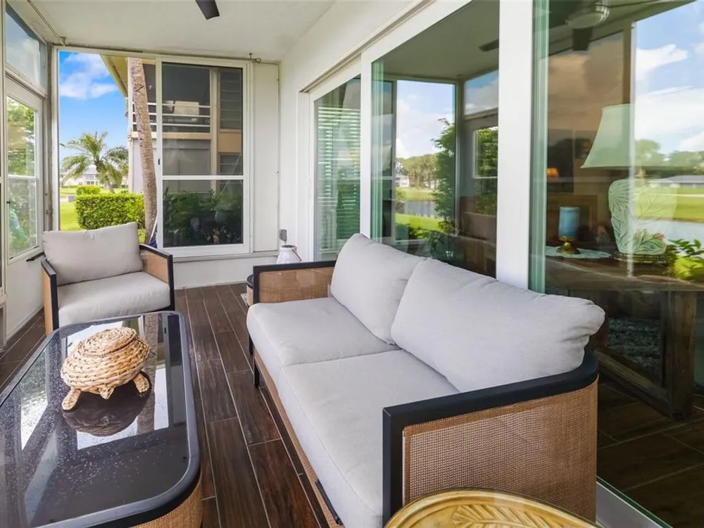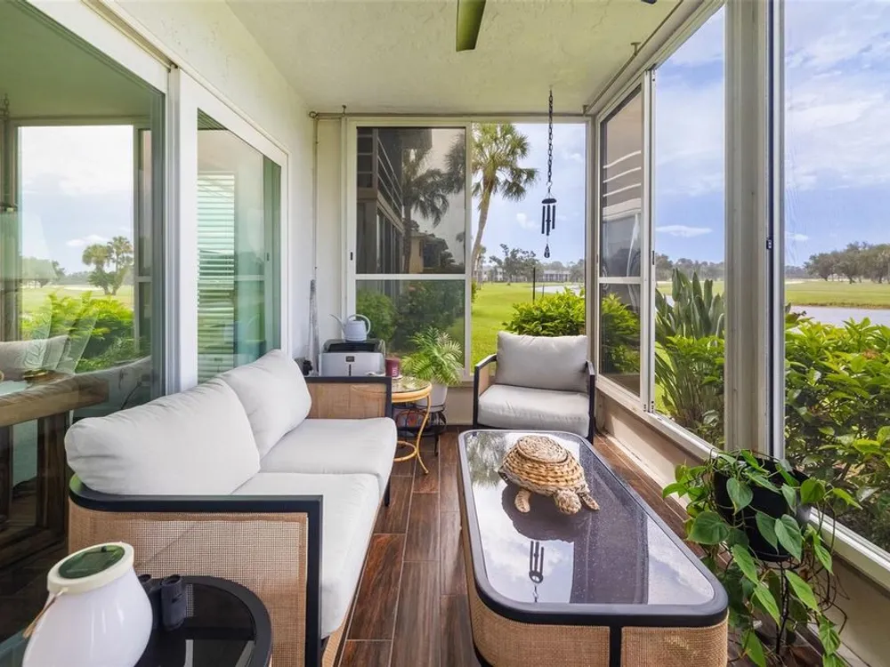 Welcome to your slice of paradise in the prestigious Palm-Aire community, where golf course living meets modern luxury in this stunning condominium. This fully renovated gem sparkles from floor to ceiling, featuring brand new matching porcelain tile floors throughout and fresh ceilings throughout. The owner spared no expense with over $65,000 in recent improvements! The heart of this home showcases a completely reimagined kitchen with sleek new cabinets, quartz countertops, stainless steel appliances, and sophisticated crown molding accented by recessed lighting. The primary bedroom retreat boasts an elegantly renovated bathroom complete with new vanities, granite surfaces, contemporary shower tile, convenient heat lamps, and a pristine glass door. Step onto your screened lanai and prepare to be enchanted by serene water views overlooking the meticulously maintained golf course, where morning coffee becomes a daily celebration and beautiful sunsets paint the sky in brilliant hues from your private lanai. The home is outfitted with new hurricane windows and a new air conditioning and heating system, ensuring both peace of mind and year-round comfort in your personal oasis. Parking is a breeze with a dedicated spot just for you. Monthly fees cover an impressive array of amenities including community pool access, exterior building insurance and maintenance, grounds upkeep, water, sewer, trash, and pest control. Optional country club membership opens doors to two championship golf courses, tennis, pickleball, padel courts, fitness facilities, aquatic center, and dining venues. Location enthusiasts will appreciate the proximity to University Town Center's shopping and dining, downtown Sarasota's cultural attractions, and the sugar-sand beaches of Siesta Key and Lido Beach. This exceptional residence perfectly balances tranquil resort-style living with convenient access to Sarasota's most coveted destinations. Opportunities like this are rare! Secure your private viewing today and see why this condo is the perfect fit for you.