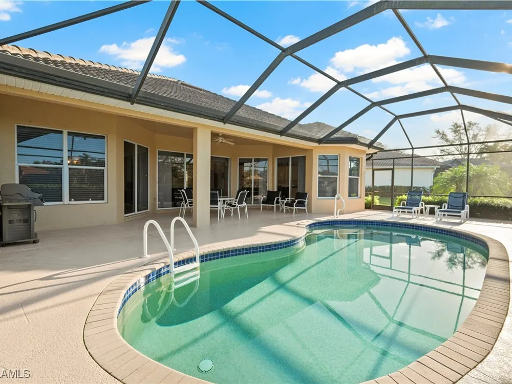 Welcome to paradise! Whether relaxing on the lanai admiring the absolutely beautiful water view, taking a dip in the pool, having friends over for food and drinks or having a relaxing night indoors after a fun day in our Naples sunshine this well cared for and move-in ready home ticks all the right boxes. This home is offered turnkey. All you need to do is pack your bags and come on down to start enjoying our Naples lifestyle. And high-expense maintenance items should be of no concern here. The new roof (2019) negates a large future replacement cost and assists in obtaining a lower insurance premium. The new A/C (2023) should provide many years of worry-free performance. Additionally, both the interior and exterior of the home have been recently repainted. Also, the home sits on one of the highest land elevations in the area. This is not a mandatory flood insurance zone. This home offers easy peasy and worry-free living by any measure. Masters Reserve is ideally located within Lely Resort, considered one of the finest resort-style communities in Naples. The subdivision is very well managed and features beautiful landscaping and low HOA fees. Residing directly between Marco Island and downtown Naples, it is an approximately 10-mile journey in either direction to be on one of our world class, white sand beaches or dining out at a number of prime Naples or Marco Island hot spots. There are also local plazas, with many dining and shopping opportunities within community grounds and/or just a handful of miles away. To top it all off, Lely Resort is known for the incomparable Player's Club & Spa. And this home has no wait list for membership! You can immediately begin enjoying one of the very best resort-style clubhouses around. Great dining, fitness activities, a spa and an endless social activities schedule are at your fingertips. This is a great home in one of our very best resort communities. Paradise awaits your attendance.