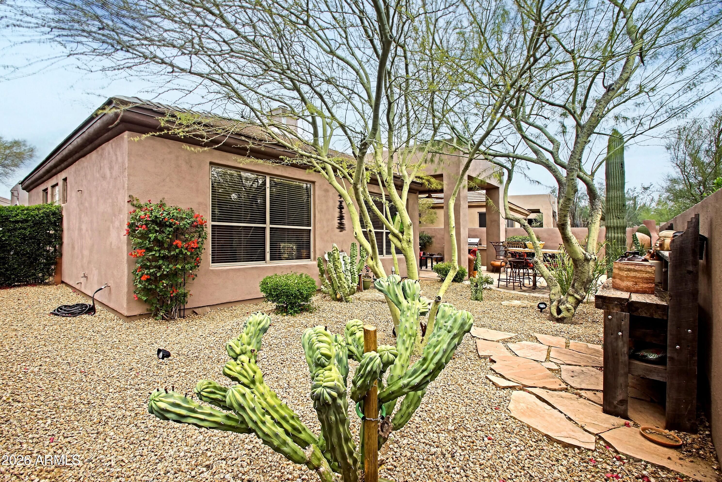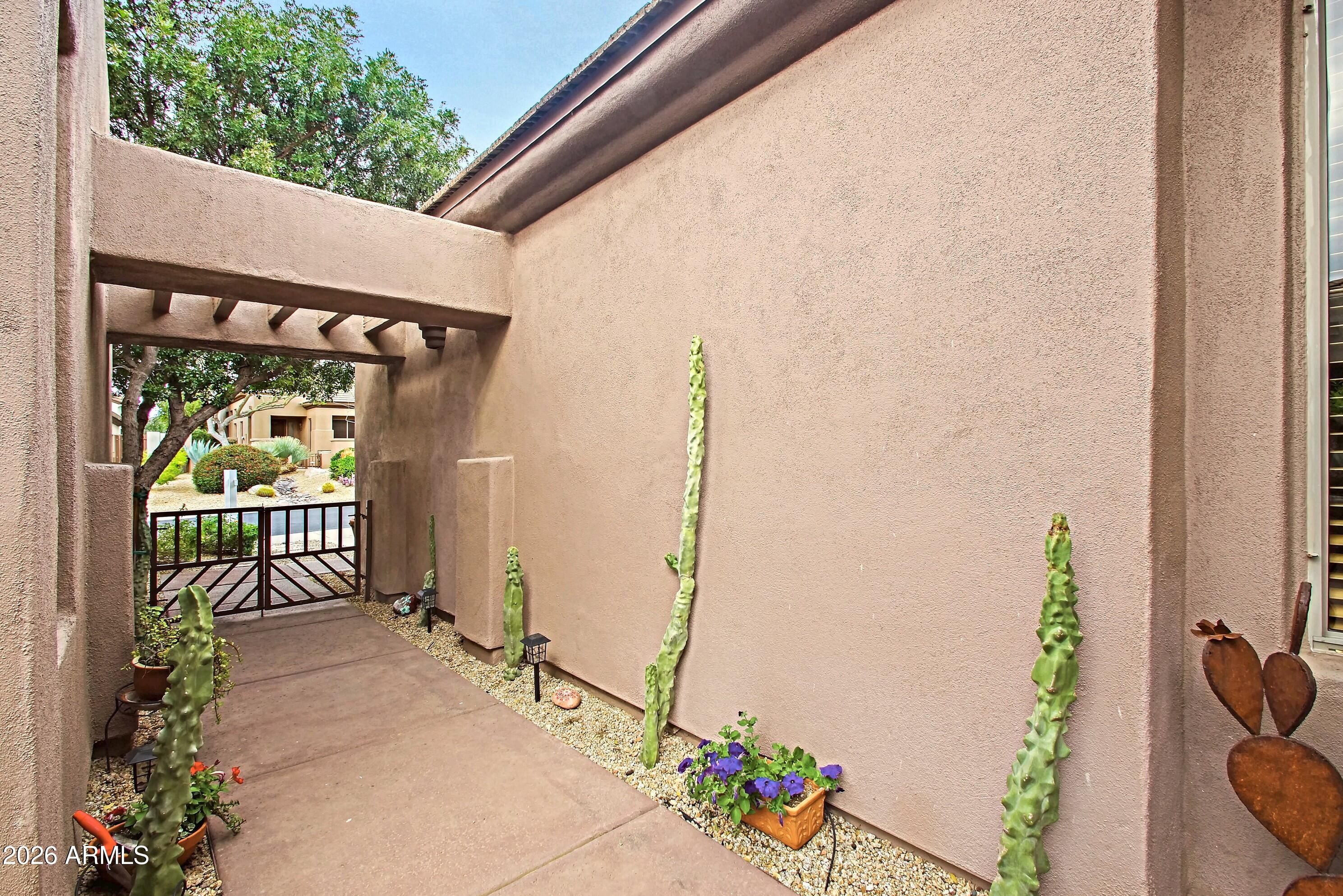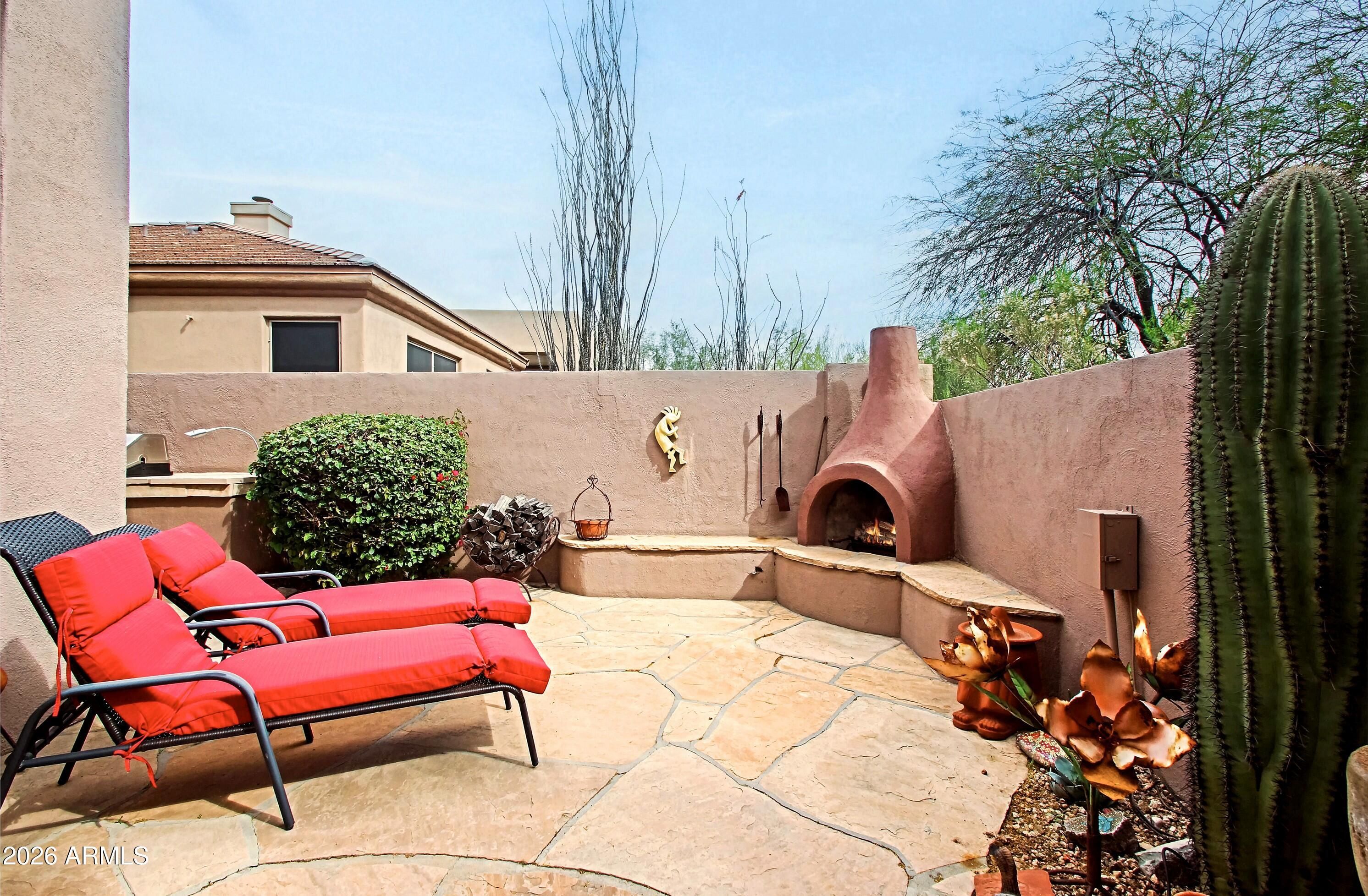 North Scottsdale - Terravita Lifestyle - Vallis model with Casita. Resort style living with the comfort, security, and tranquility in an award-winning community. This home resides on an oversized with private rear patio. Terravita Golf & Country Club features an 18-hole golf course, wonderful clubhouse facility, heated pool. Fitness center & tennis courts, great walking paths and Pickleball courts. Peaceful courtyard entrance brings you into the living/dining area. Travertine floors throughout no carpet Kitchen offers quarts counter tops, fabulous stainless-steel appliances, eat in kitchen and more. This special Vallis floor plan incorporated the open den area into a master bedroom expansion. An added special feature you won't want to miss. Yard has built in BBQ, fountain, covered patio. The casita is as lovely and comfy as the rest of the home. Added built in cabinets are a plus along with a pull-down ladder for extra storage. New Roof in 2022 and both A/C in 25