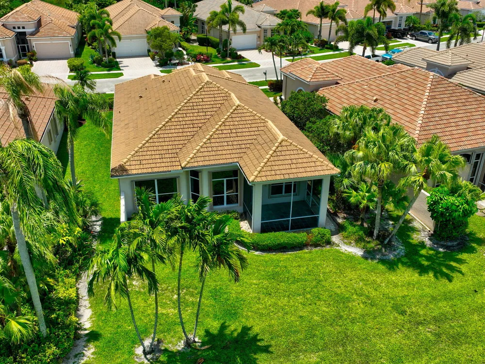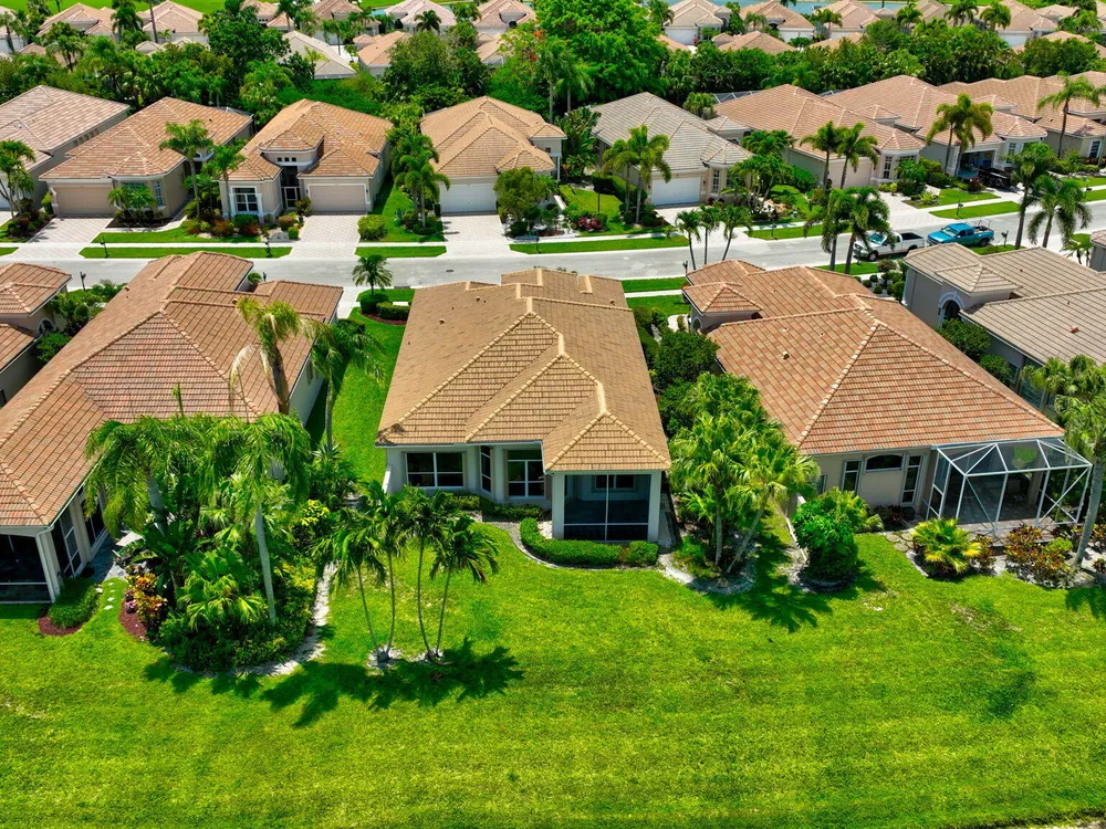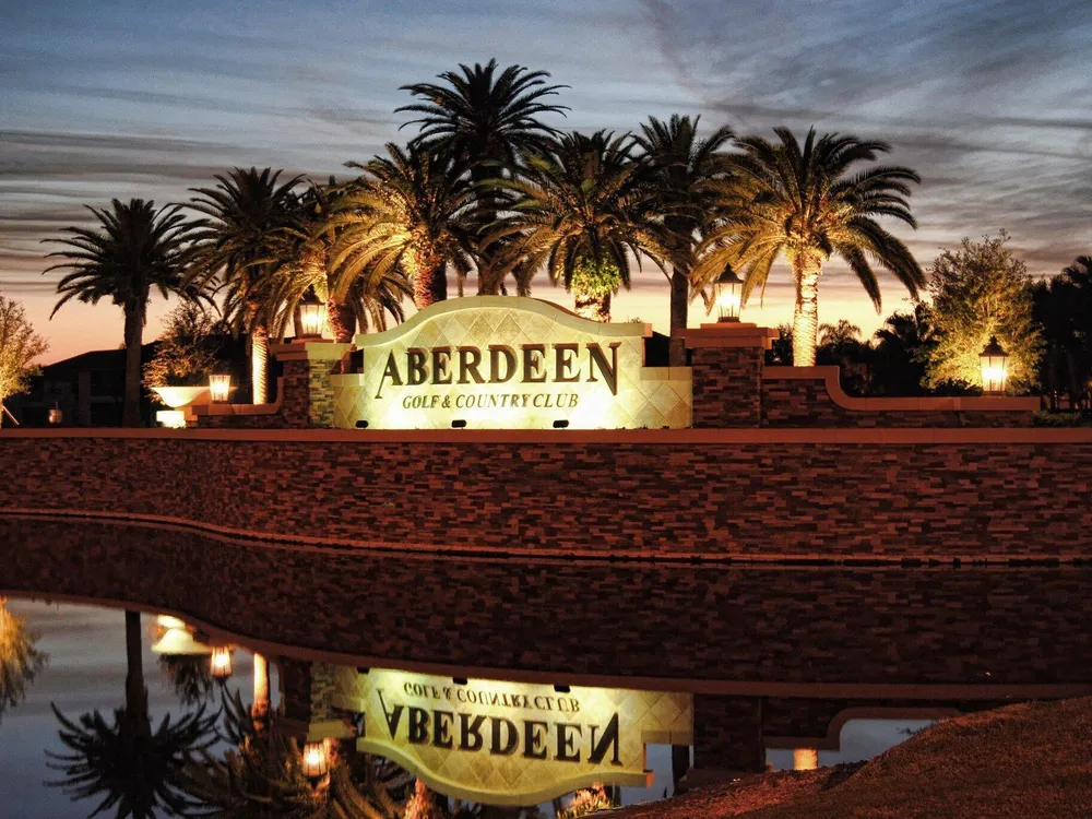FRESHLY PAINTED & NEW FLOORING IN GUEST BEDROOMAccordion Shutters Looking for one of the best water & golf views in Aberdeen!ROOF 2018Complete with dramatic ceilings this home is made for entertaining & relaxation. Enjoy serene sunsets from either your covered lanai in your private back yard. The split floor plan is excellent for guests. Being a valued part of Aberdeen Country Club comes with its set of exclusivities. It starts with enjoying the club's luxurious lap and beach pools, the Fazio 18-hole golf course, 14 har-tru tennis courts, a quartet of pickleball courts, and a pair of Bocce courts. Aberdeen spoils members with diverse dining options, an active lounge, planned social activities, hot tub, steam showers, and dedicated locker rooms for golf and tennis passionates