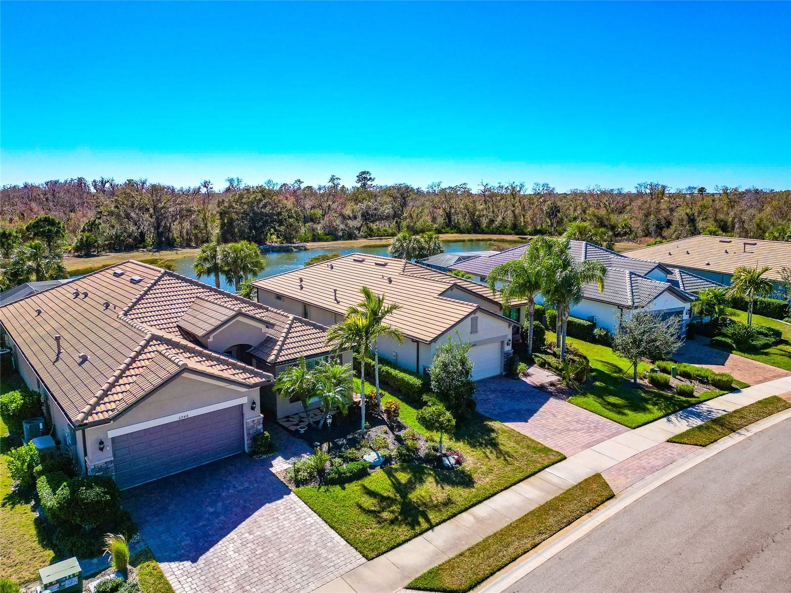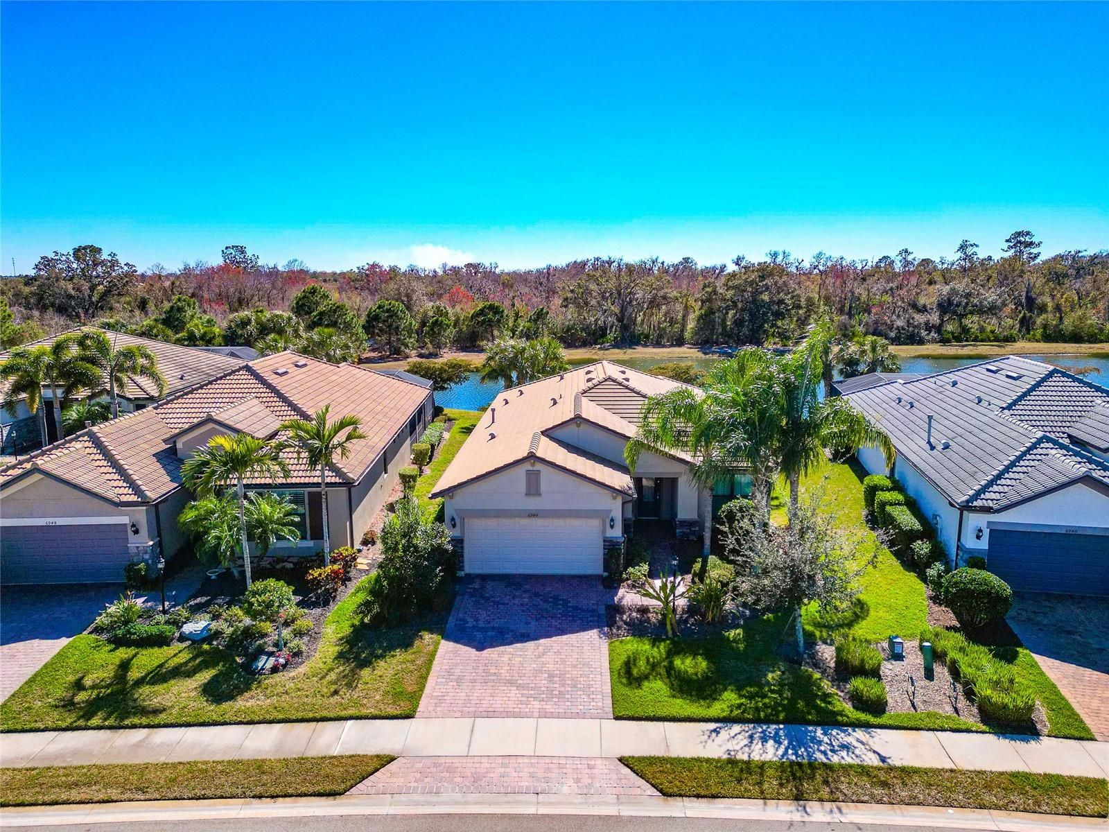 This lightly lived-in home in Del Webb Lakewood Ranch checks boxes that are hard to find—a quiet cul-de-sac setting with full southern exposure overlooking both a lake and preserve. You get long water views and privacy. That combination is rare. Priced to sell and easy to love! The home shows like new and offers an open, functional layout with a dedicated den, a well-sized guest bedroom, and a spacious screened lanai that fully captures the view. For peace of mind, the rear of the home is equipped with accordion-style hurricane shutters, offering convenient storm protection without sacrificing everyday enjoyment. The kitchen is the heart of the home, featuring a large center island, granite countertops, wood cabinetry, natural gas cooktop, and a separate wall oven—ideal for anyone who actually enjoys cooking. The primary suite includes a tray ceiling, generous walk-in closet, dual vanities, and a walk-in shower. An oversized garage provides space for a golf cart, storage, or a second vehicle. Del Webb Lakewood Ranch is a gated 55+ community designed for active living, with a heated resort-style pool, pickleball and tennis courts, bocce, dog park, state-of-the-art fitness center, and a full-time activities director. Residents also enjoy a full-service restaurant and bar, making it easy to meet neighbors and stay social. Conveniently located near shopping, dining, medical facilities, and everything Lakewood Ranch has to offer. Be sure to view the 3D virtual tour to fully appreciate the setting and layout.