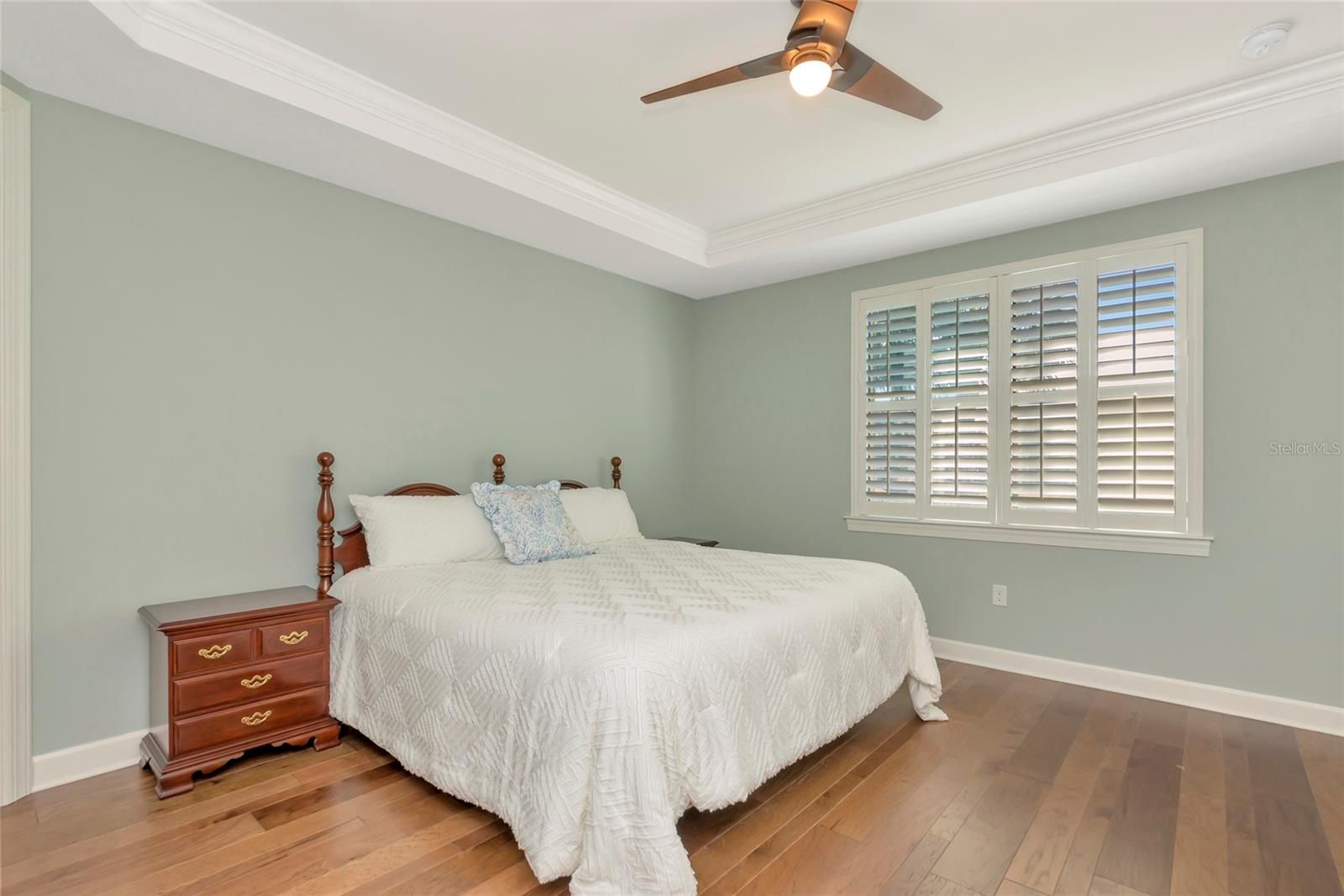 - Ceiling Fan(s), Kitchen/Family Room Combo, Open Floorplan, Main Level Primary, Solid Surface Counters, Solid-Wood Cabinets, Split Bedrooms, Tray Ceiling(s), Walk-In Closet(s), Window Treatments