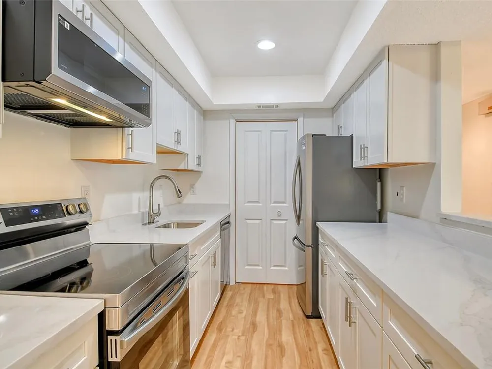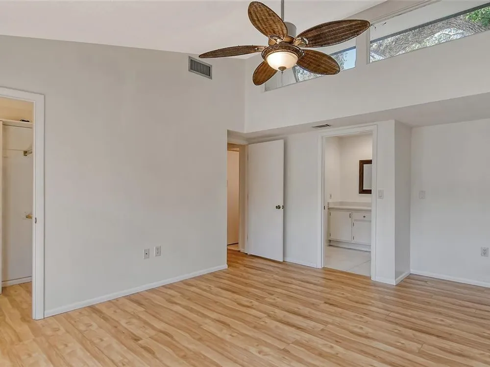 - Ceiling Fan(s), High Ceilings, Kitchen/Family Room Combo, Main Level Primary, Solid-Wood Cabinets, Stone Counters