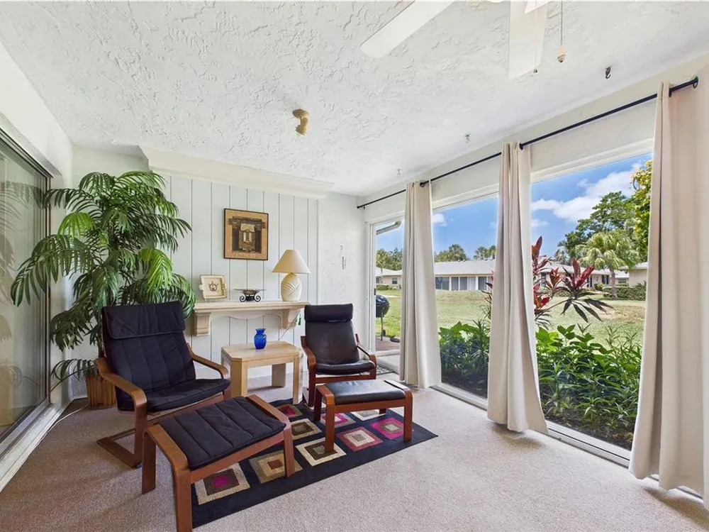 Welcome to this charming and spacious 2-bedroom, 2-bath end-unit villa located in the highly desirable Palm-Aire Golf & Country Club community! Just steps from the community pool, this move-in-ready home offers a perfect combination of comfort, privacy, and location. The open layout includes a generous living space, a flexible den or dining area, and a glass-enclosed lanai overlooking a beautifully landscaped garden. You'll appreciate the natural light, tile and carpet flooring, ample storage, and the convenience of an attached garage. Nestled in a golf course community, the optional club membership allows access to golf, tennis, pickleball, fitness center, and social events—everything you need for an active Florida lifestyle. Located in a prime area of Sarasota, just minutes from: - University Town Center (UTC) for shopping, dining, and entertainment, - Nathan Benderson Park with rowing, running, and outdoor events, - SRQ Airport, - Downtown Sarasota, and cultural attractions like the Ringling Museum - The award-winning Gulf Coast beaches, including Lido Key and Siesta Key Perfect as a full-time residence, winter getaway, or investment property.