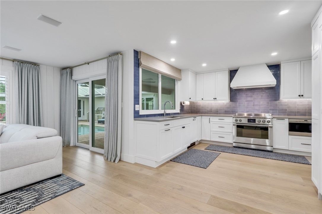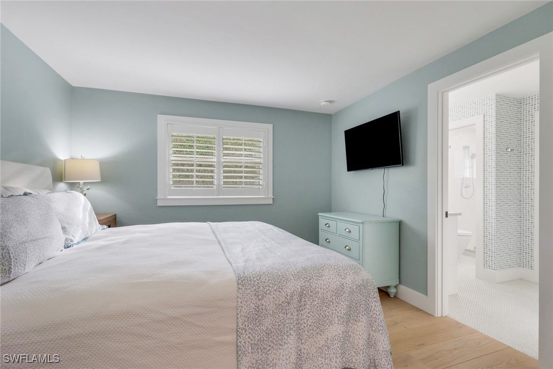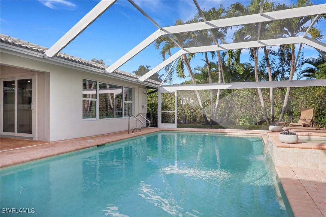 Welcome to an exceptional opportunity in the heart of the Moorings: where thoughtful design, privacy, and modern luxury come together. This beautifully remodeled single-family residence is tucked away on a quiet, secluded street in one of Naples’ most prestigious neighborhoods on a large .33 acre lot. The main home offers four bedrooms and four bathrooms in total, including a private one-bedroom, one-bath casita with its own entrance, ideal for guests, extended family, or a serene home office retreat. Recent professional renovations elevate the home throughout, highlighted by a striking contemporary kitchen featuring quartz countertops, a Fisher & Paykel induction cooktop, 54” Fisher & Paykel refrigerator/freezer, Wolf microwave drawer, TruBrand ice maker, and integrated refrigerated drawers. Wide-plank white oak hardwood floors flow seamlessly through the living spaces, bringing warmth and understated elegance. The primary suite is a true sanctuary, complete with a spa-inspired bathroom and a walk-in steam shower with bench seating. Outdoors, a private pool and spa are framed by a new pool cage with panorama screens, offering uninterrupted views of the lush, landscaped grounds. A privacy fence and mature hedges create a peaceful, resort-like setting perfect for relaxation or entertaining. Ideally located just minutes from Naples’ renowned beaches, fine dining, and upscale shopping, this home also benefits from being situated in an X500 (500-year) floodplain with levee protection—an added peace of mind. A rare offering in the Moorings, this residence delivers refined living, exceptional amenities, and a coveted Naples lifestyle.