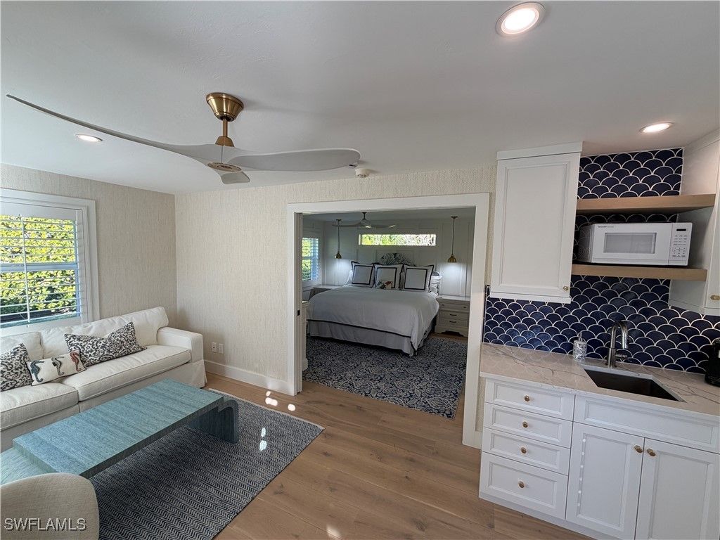 Stop the search! This home has all and more of what your heart and family desires. Experience the epitome of luxury in this exquisitely remodeled single-family home located in the prestigious Moorings area of Naples, FL on a secluded street. Offering 4 bedrooms and 4 bathrooms in total, this residence includes a stunning one-bedroom, one-bathroom casita with a private entrance, perfect for guests or an in-law suite. The home showcases recent professional renovations, featuring an ultra-modern kitchen equipped with quartz countertops, a Fisher & Paykel induction cooktop, a 54" Fisher & Paykel Refrigerator/Freezer, Wolf microwave drawer, TruBrand ice maker, and refrigerated drawers. Elegant white oak hardwood floors flow throughout the home, adding a touch of warmth and sophistication. The master bathroom boasts a luxurious walk-in steam shower with a bench seat. Step outside to enjoy the private pool and spa, surrounded by a new pool cage with panorama screens, ensuring unobstructed views of the beautifully landscaped garden. A privacy fence and lush hedges provide the perfect backdrop for tranquility and relaxation. Located close to beautiful beaches, fine dining, and shopping, this home is a true gem in the heart of Naples. Another great benefit is this home is located in the X500-year Floodplain incl. levee protected area. Don't miss the opportunity to live in one of the most sought-after locations with unparalleled amenities and style!