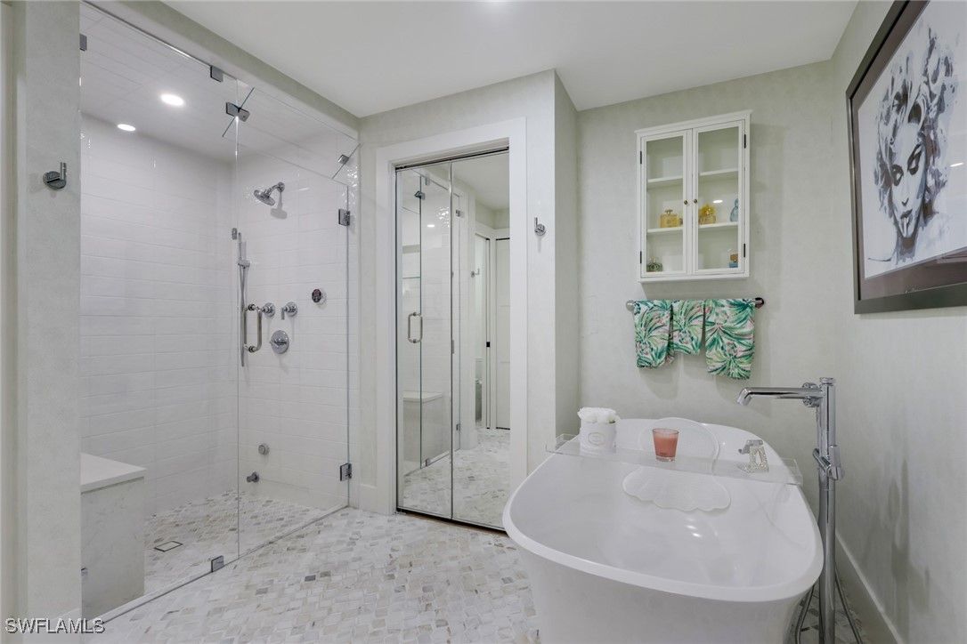 - Wet Bar, Built-in Features, Bedroom on Main Level, Bathtub, Closet Cabinetry, Dual Sinks, Living/Dining Room, Multiple Shower Heads, Separate Shower, Walk-In Closet(s), Window Treatments