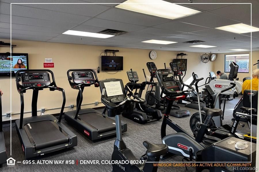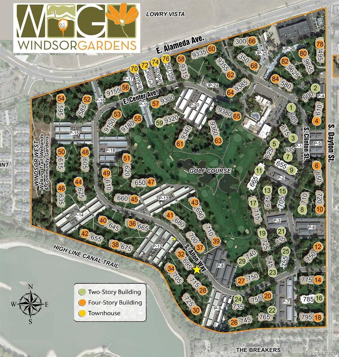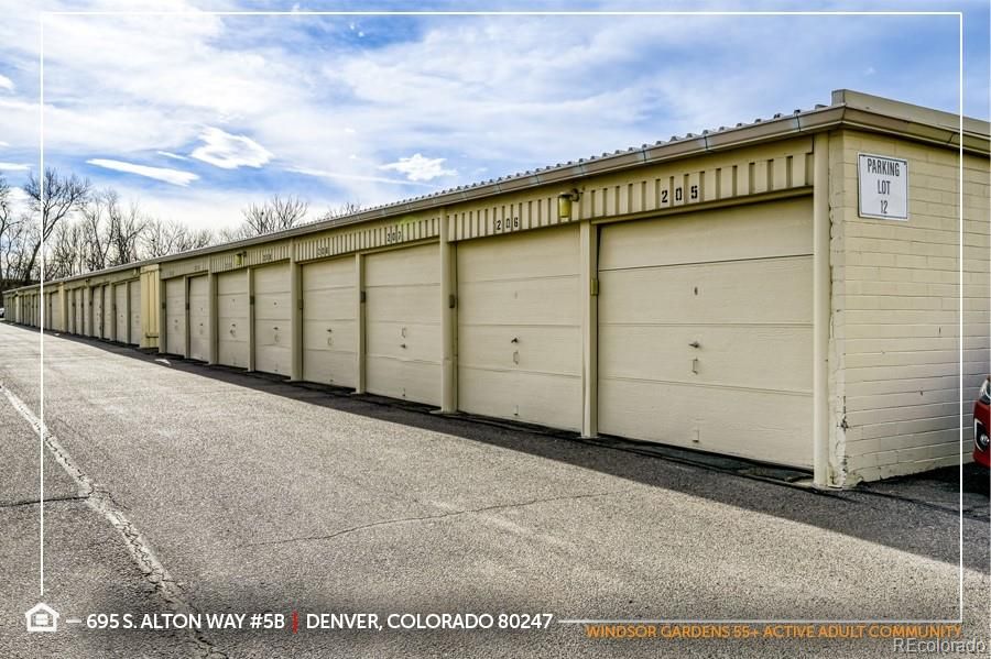 Exceptional Opportunity in Windsor Gardens, a safe & quiet age-restricted (55+) Active Adult Community for empty-nesters seeking an active lifestyle without the hassle of home maintenance! “G” Floorplan features a 1,380 sqft 2 bed | 2 bath Condo featuring Bonus Room / Den which can flex as additional living room, craft room, office or non-conforming bedroom if needed. Enjoy the open-concept floorplan with kitchen featuring an abundance of floor-to-ceiling cabinetry and all appliances are included. Laminate Wood flooring adorns the living room, bonus room, hallways and bedroom #2. Oversized primary bedroom has newer carpet, huge walk-in closet + ¾ ensuite bathroom with walk-in shower. Bedroom #2 is spacious with newer carpet. Both bathrooms have tile flooring and grab bars for additional safety. Both bedrooms & great room are air-conditioned for added comfort. Enjoy coffee or entertaining guests on your sun-filled screened-in Lanai which offers plenty of natural sunlight throughout the day with two sliding glass doors! Storage galore! This unit offers a walk-in storage room that could be used as a workshop + multiple hallway closets + bonus locked storage closet in the community laundry room conveniently located directly across the hall. Desirable End Unit features a single common/shared wall and unbeatable central location with easy access to the elevator, laundry room as well as dual staircases for quick access to your Detached Garage. Amenities include a 9-Hole Par-3 Emerald Greens Golf Course; Indoor & Outdoor Swimming Pools; On-site Restaurant; Fitness Center; Community Center with classrooms, auditorium, library, crafting, game & meeting rooms. Take a stroll along the scenic High Line Canal, a popular spot for nature lovers, hikers and cyclists or enjoy the six-acre nature preserve. RV/Boat storage also available. Short commute to Lowry, Cherry Creek Shopping Center, DIA or Downtown Denver to catch a sporting event, concert or Broadway show. See this one today!