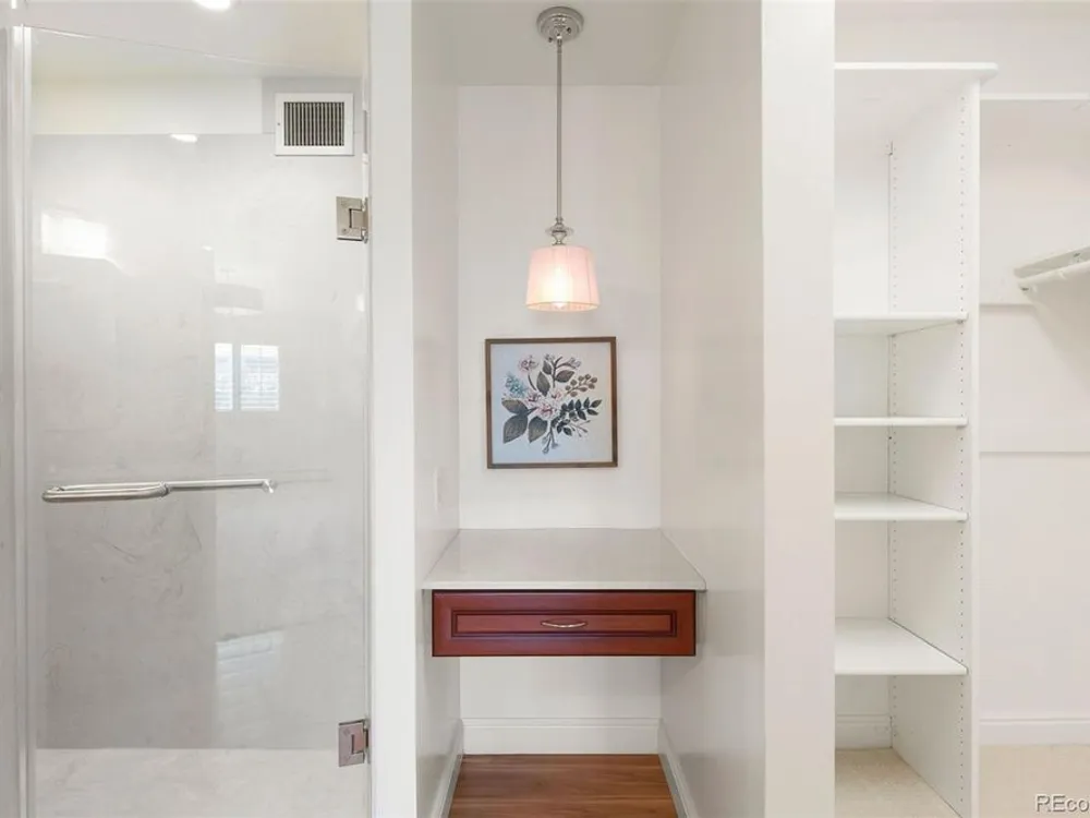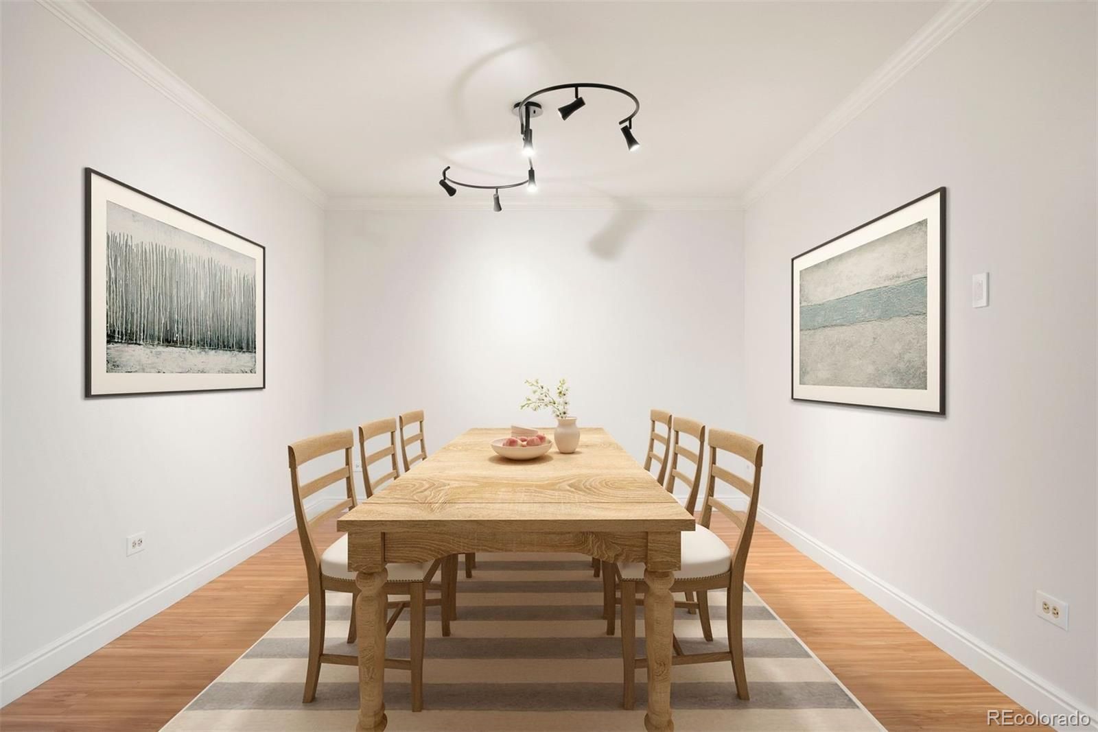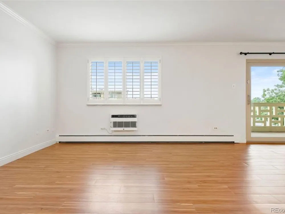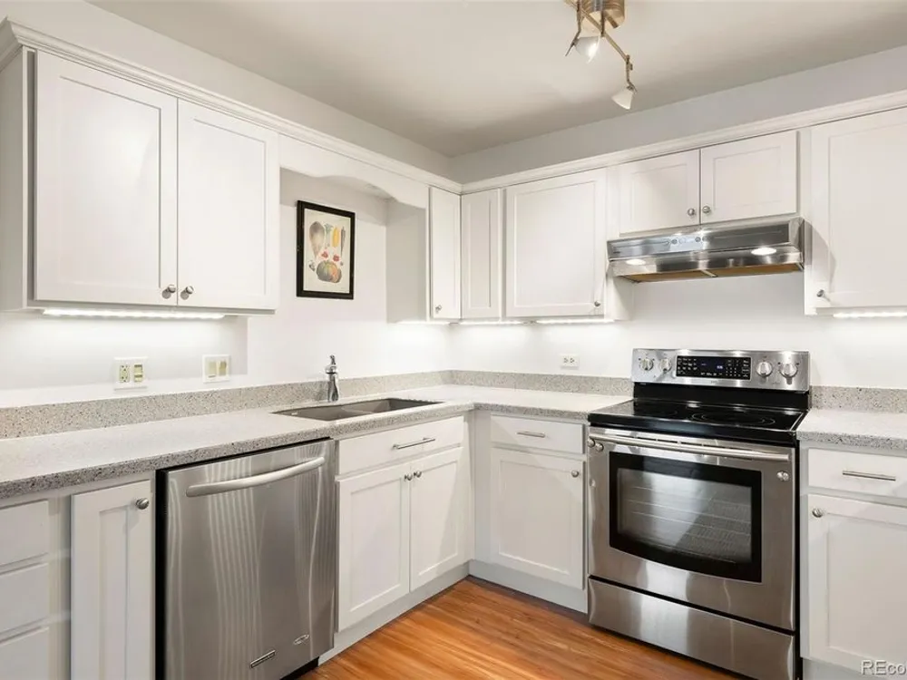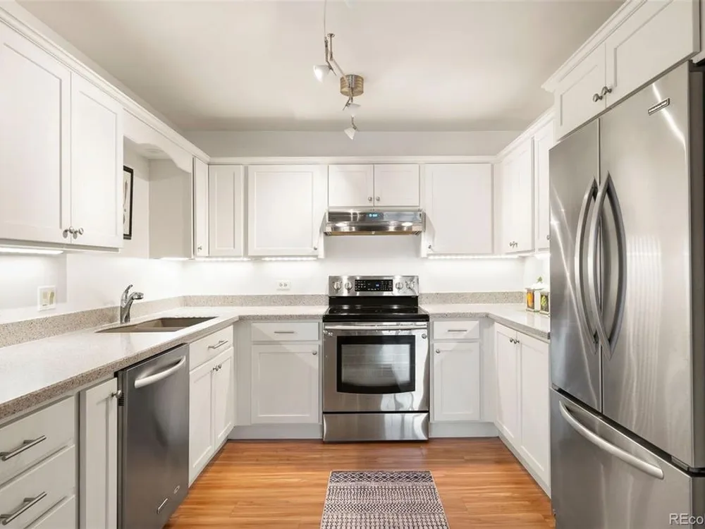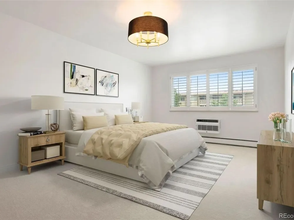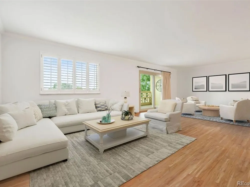 This is the 55+ condo you’ve been waiting for—fresh, move-in ready, and one of the largest floorplans in Windsor Gardens. The standout kitchen is thoughtfully designed and beautifully styled, featuring crisp white cabinetry with soft-close drawers, clever pull-outs, under-cabinet lighting, and abundant storage. Stainless appliances—including a KitchenAid French door refrigerator and dishwasher—pair perfectly with Corian countertops and an integrated sink. Upgraded wood flooring extends from the kitchen through all main living areas, creating a seamless, polished feel throughout. The spacious living and dining areas offer crown molding, plantation shutters, and excellent natural light. A newer sliding glass door opens to a large covered patio—perfect for morning coffee or summer evenings. The primary suite includes a generous walk-in closet, an updated ensuite bathroom with quartz countertops, an upgraded shower with frameless Euro-style shower glass, and a separate vanity area. A huge, versatile hall closet adds flexibility for crafts, hobbies, or collections. Additional highlights include additional storage in the hallway storage unit, a detached and conveniently located garage, and an easy-access building with ample parking right out front. Windsor Gardens is Denver’s premier 55+ community, offering low-maintenance living and resort-style amenities: clubhouse, indoor and outdoor pools, fitness center, 9-hole golf course, walking paths, on-site restaurant, library, and a full calendar of social events. Monthly HOA dues include property taxes, heat, water, sewer, trash, building insurance, and more. This well-run community is FHA and VA approved. It also qualifies for Community Reinvestment Act (CRA) financing incentives through Sunflower Bank (& other participating banks). Buyers may be eligible for a 1.75% lender credit of their loan amount, which can be applied toward closing costs or lowering interest rate. Start summer off right in this move-in ready condo!