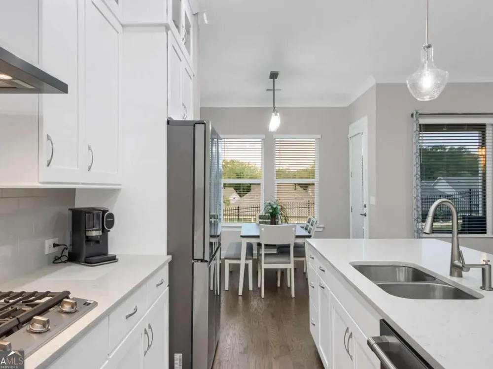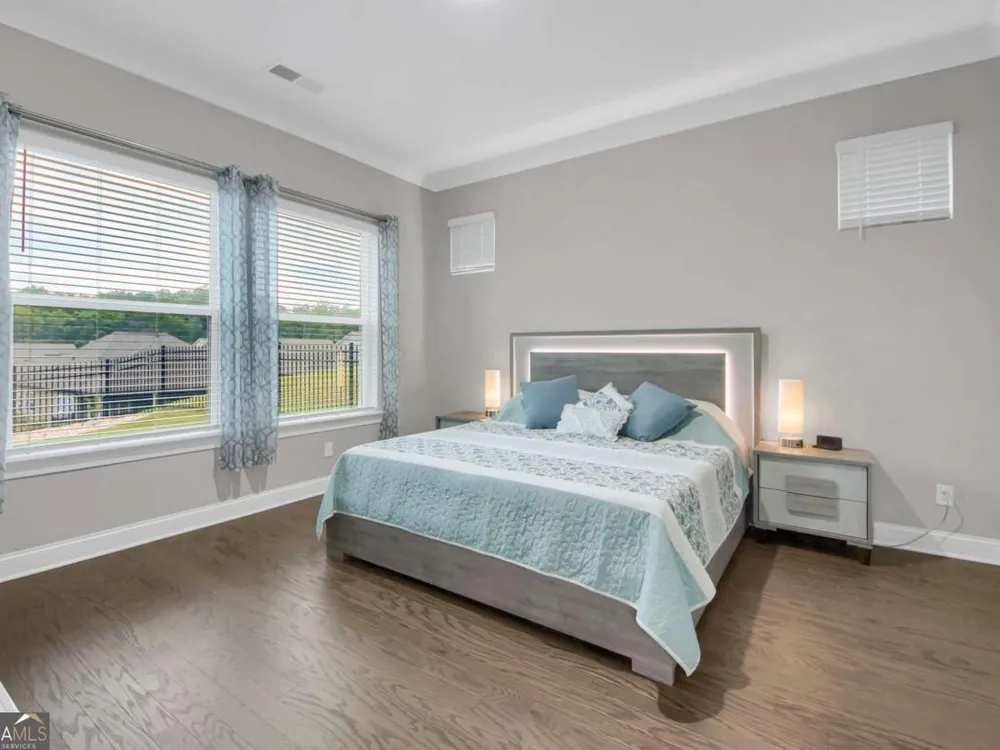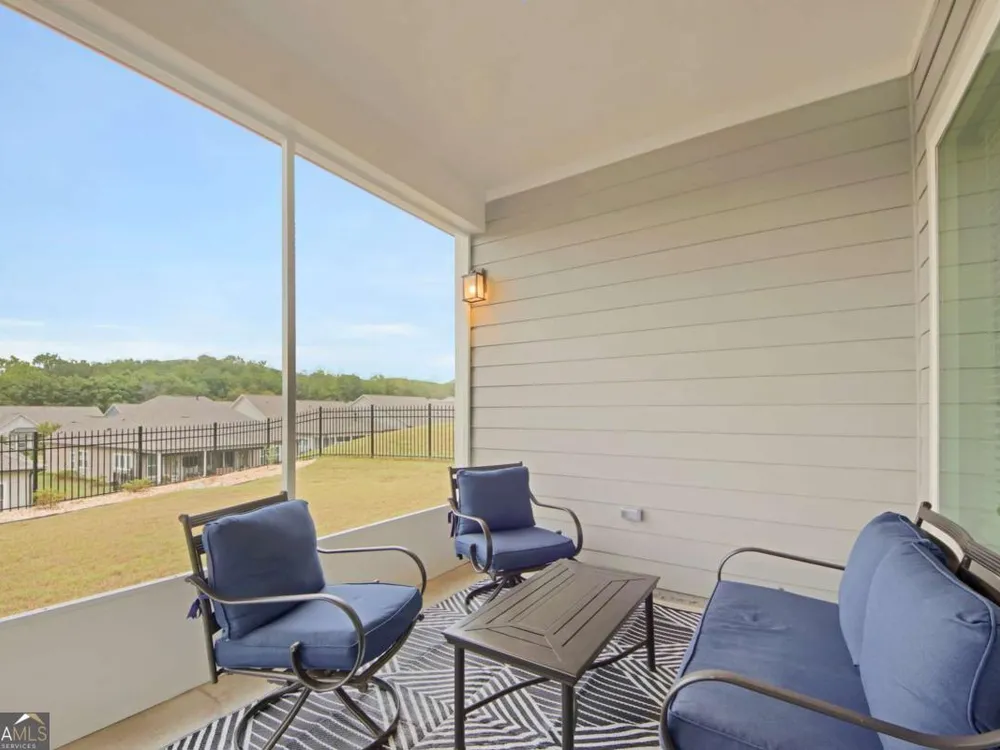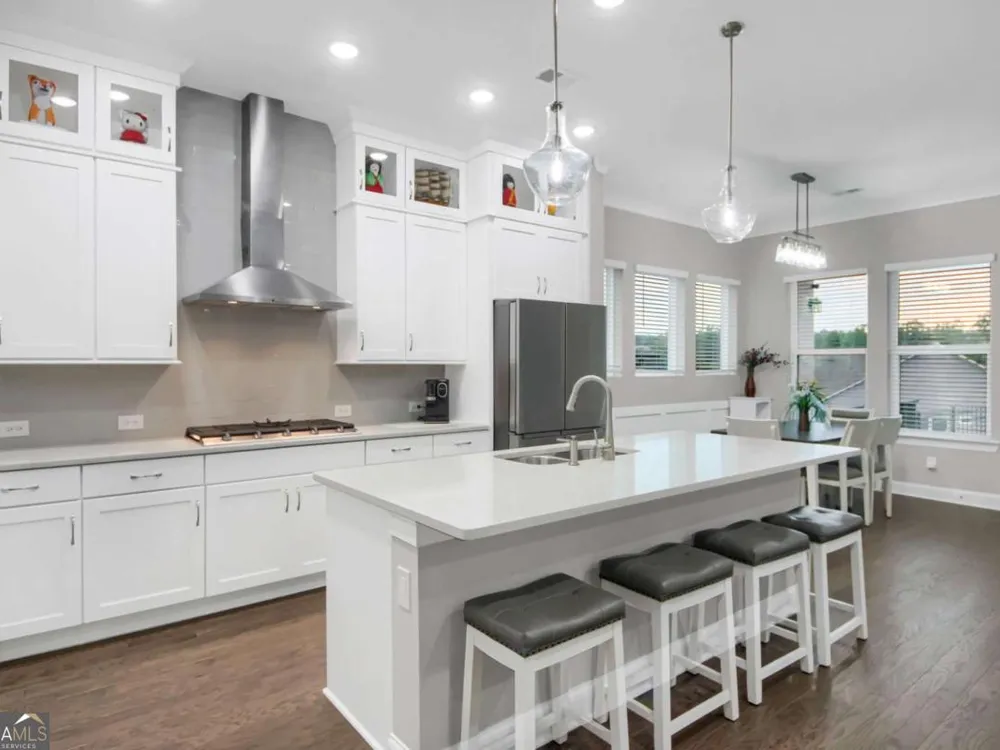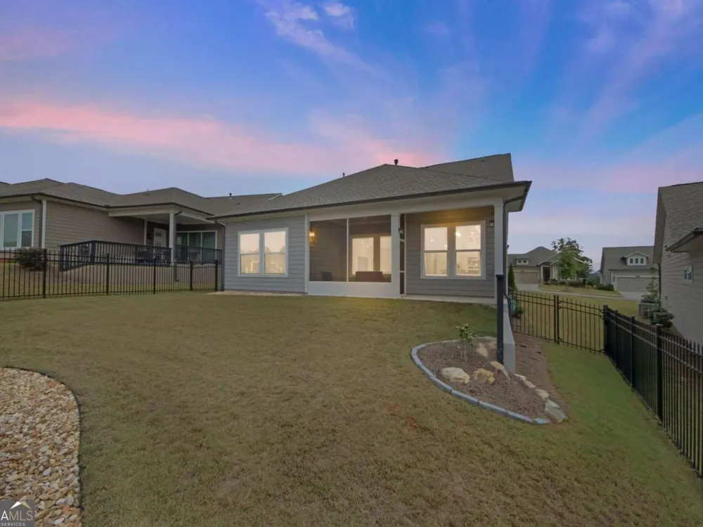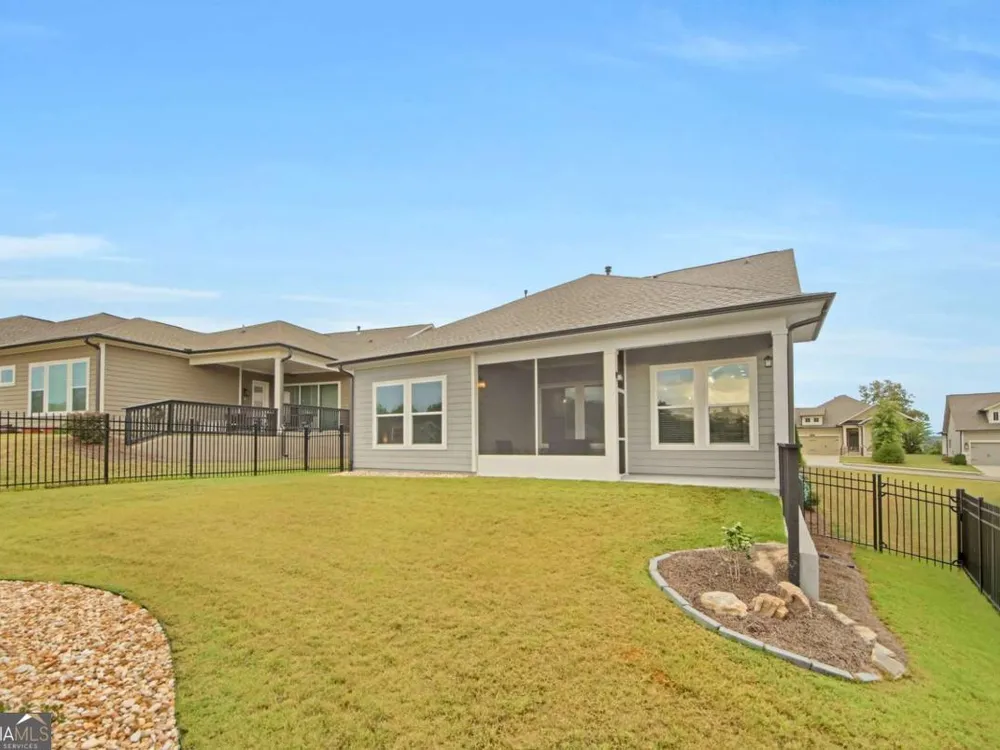 Experience resort-style living at The Retreat at Sterling on the Lake in one of the most spacious floor models available. This beautifully upgraded David Weekley home in the exclusive 55+ gated community, The Retreat at Sterling on the Lake, combines luxury, comfort, and an unbeatable lifestyle. Step into a chef's dream kitchen featuring quartz countertops, double ovens, a 36" gas cooktop, custom ceiling-height cabinetry, stainless steel appliances, and a massive island perfect for entertaining. The open floor plan flows seamlessly into the living area and peaceful screened patio with gorgeous sunset views, while hardwood floors, 10 foot ceilings, and crown molding add timeless elegance. Enjoy main-level living with an oversized primary suite and private guest quarters upstairs featuring a spacious bedroom, bathroom, and living area. A flat, fenced yard and thoughtful details like weekly lawn maintenance make living here a breeze. Here, it's not just a home-it's a lifestyle. The Retreat offers private amenities plus access to Sterling on the Lake's resort-style pools, tennis and pickleball courts, fitness centers, theater, library, kayaking, and miles of walking trails. With community events like Food Truck Fridays, Concerts in the Park, and Holiday Celebrations, there's always something to do. HOA-maintained landscaping means more time to enjoy life. There is so much to do and enjoy your friends and family will never want to leave. Close to Lake Lanier, shopping, and dining, and with Hall County senior tax exemptions available to those who qualify, this east-facing home is the perfect blend of beauty, convenience, and community.