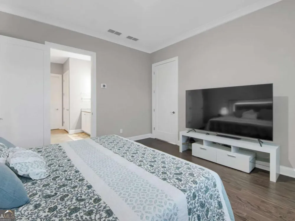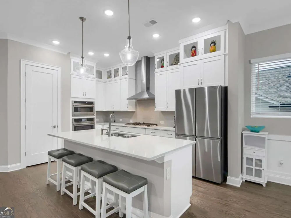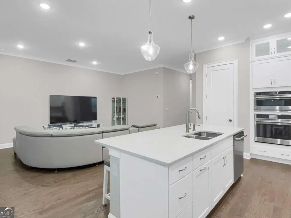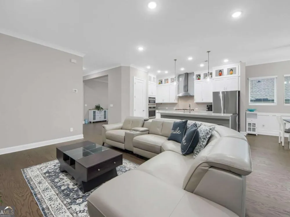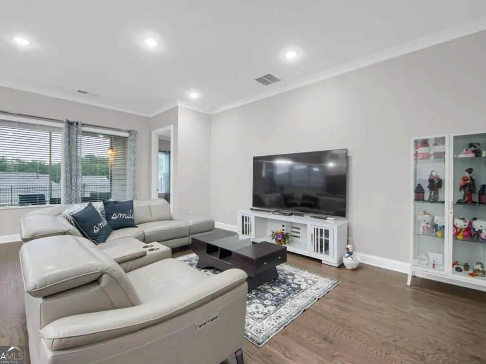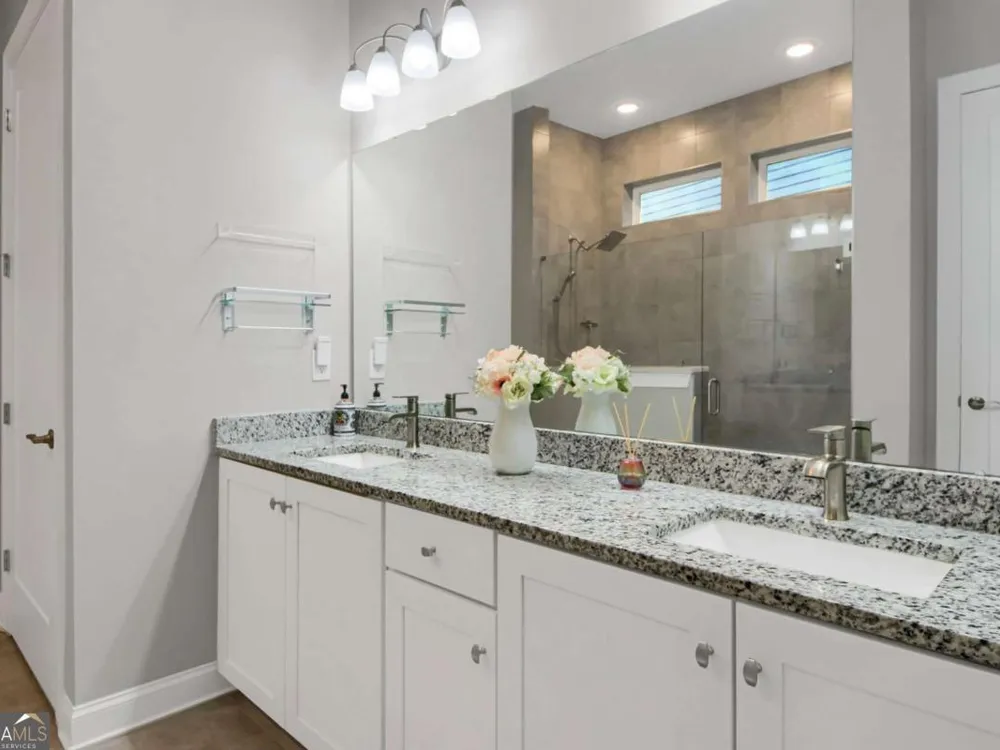 Experience resort-style living at The Retreat at Sterling on the Lake in one of the most spacious floor models available. This beautifully upgraded David Weekley home in the exclusive 55+ gated community, The Retreat at Sterling on the Lake, combines luxury, comfort, and an unbeatable lifestyle. Step into a chef's dream kitchen featuring quartz countertops, double ovens, a 36" gas cooktop, custom ceiling-height cabinetry, stainless steel appliances, and a massive island perfect for entertaining. The open floor plan flows seamlessly into the living area and peaceful screened patio with gorgeous sunset views, while hardwood floors, 10 foot ceilings, and crown molding add timeless elegance. Enjoy main-level living with an oversized primary suite and private guest quarters upstairs featuring a spacious bedroom, bathroom, and living area. A flat, fenced yard and thoughtful details like weekly lawn maintenance make living here a breeze. Here, it's not just a home-it's a lifestyle. The Retreat offers private amenities plus access to Sterling on the Lake's resort-style pools, tennis and pickleball courts, fitness centers, theater, library, kayaking, and miles of walking trails. With community events like Food Truck Fridays, Concerts in the Park, and Holiday Celebrations, there's always something to do. HOA-maintained landscaping means more time to enjoy life. There is so much to do and enjoy your friends and family will never want to leave. Close to Lake Lanier, shopping, and dining, and with Hall County senior tax exemptions available to those who qualify, this east-facing home is the perfect blend of beauty, convenience, and community.