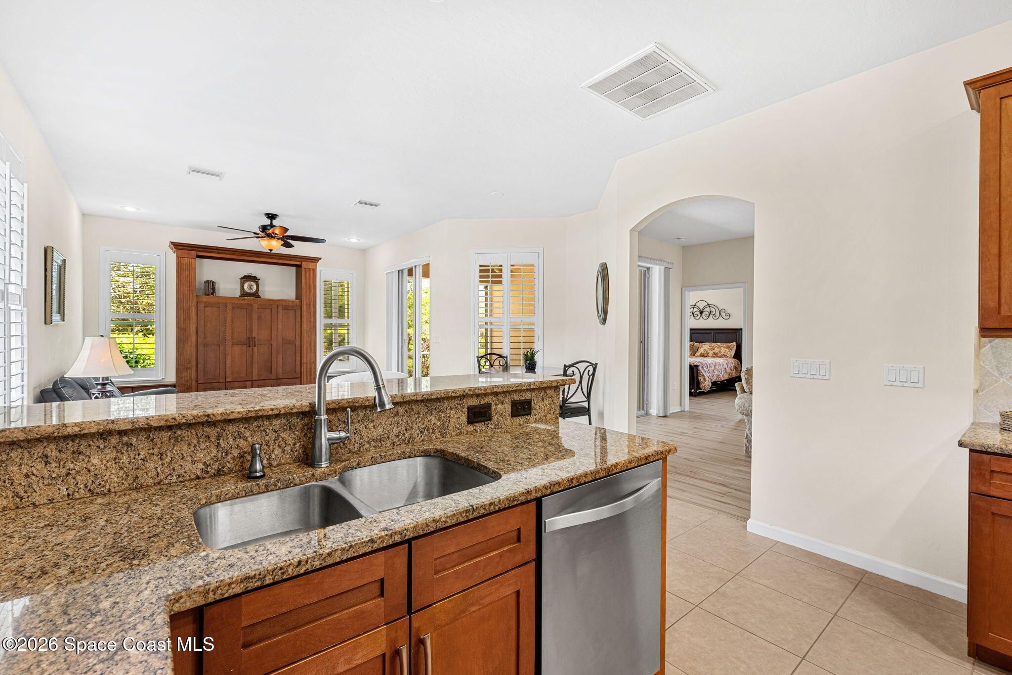 Experience effortless living in the sought-after 24hr Guard-Gated Active Adult community of Heritage Isle in Viera! This beautifully maintained 3BR/2BA home showcases exceptional attention to detail throughout. Enjoy a spacious eat-in kitchen featuring stainless steel appliances, granite countertops & a tile backsplash. The flexible layout offers two living areas, perfect for entertaining or relaxing, while tray ceiling detail, plantation shutters & custom built-ins add a touch of class. Brand new LVP flooring in 2026 enhances the home's modern appeal. The oversized primary suite features dual granite vanities, a soaking tub & tiled walk-in shower. Major updates include a NEW ROOF (2026) & W/H (2025), while accordion shutters make storm prep easy. Resort-style amenities include a clubhouse, café, heated pool & spa, tennis, pickleball, fitness center & vibrant social scene. Prime Viera location near shopping, dining, Golf, healthcare facilities & more!
