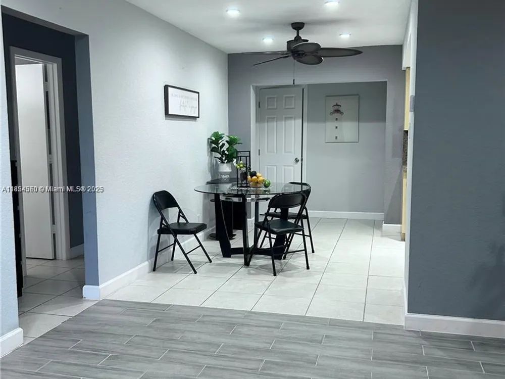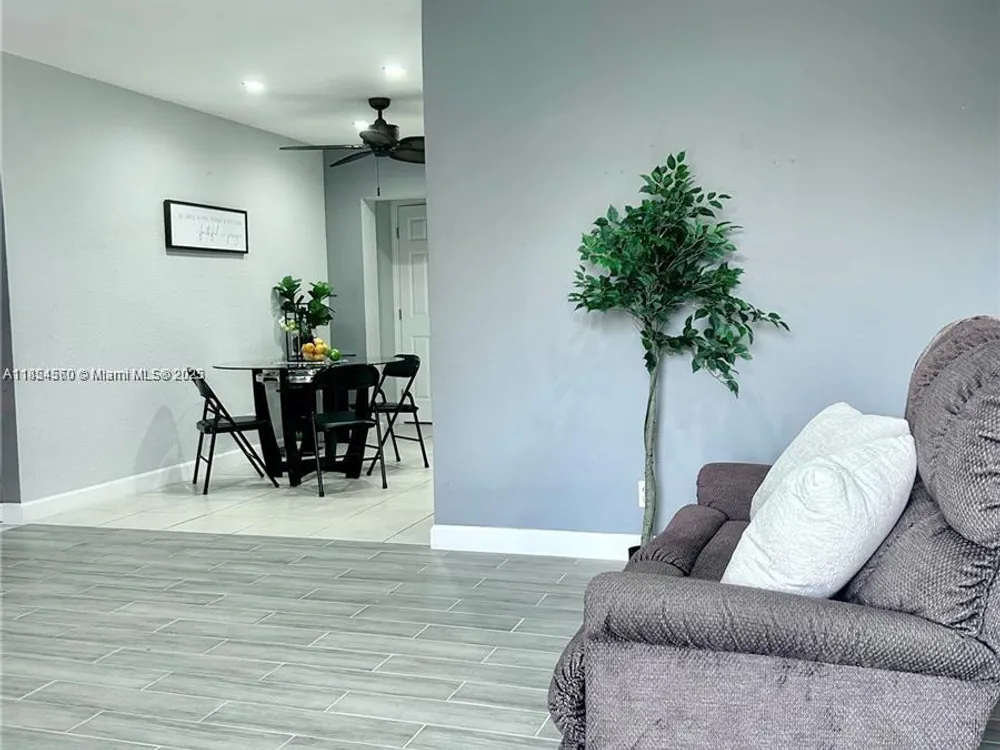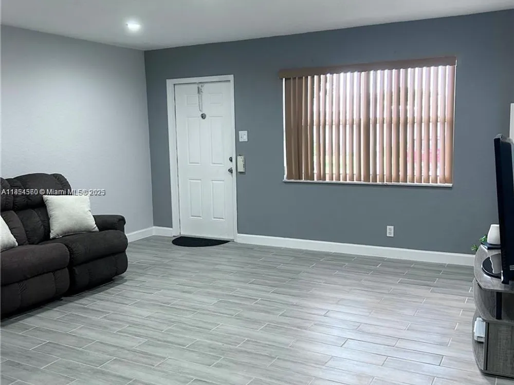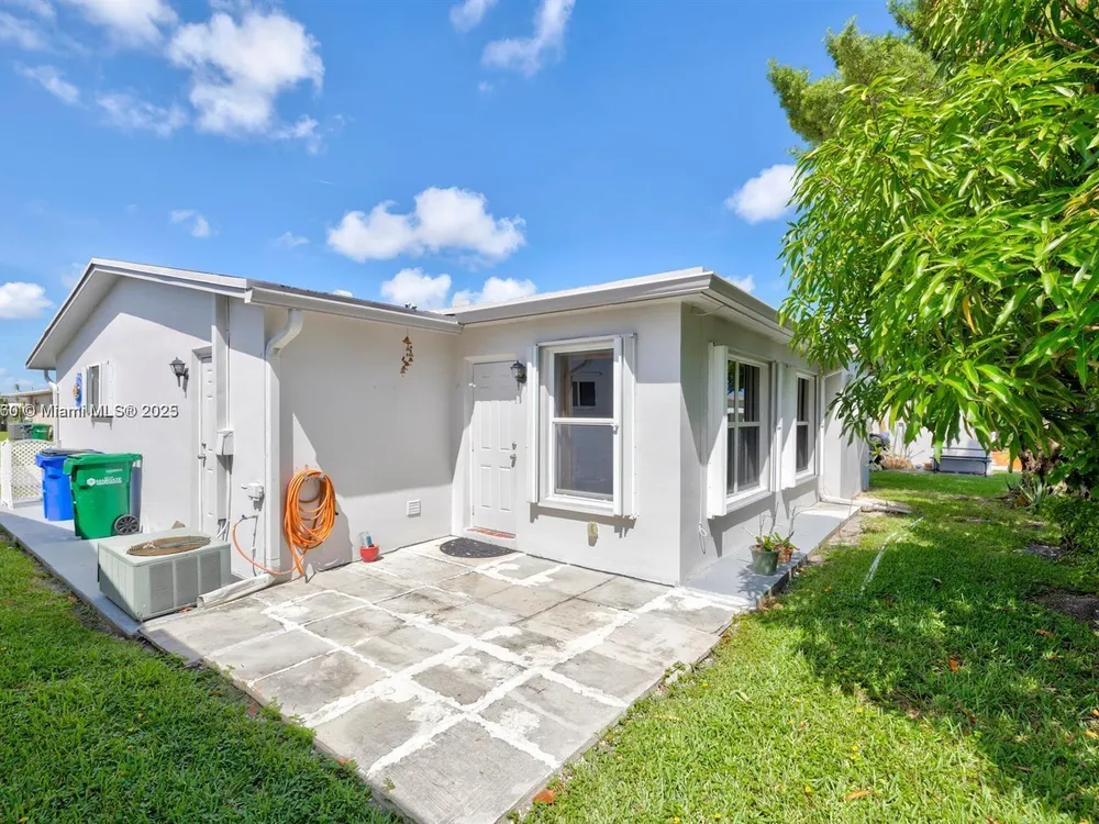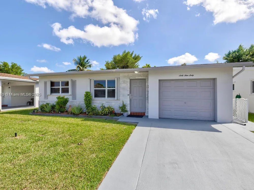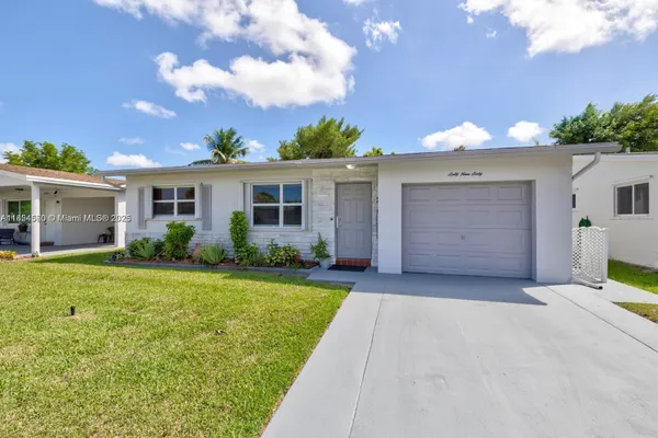 Step into charm and comfort with this delightful 2-bedroom, 1-bath home featuring a 1-car garage and a spacious driveway that accommodates two vehicles. The lush patio offers a serene space for relaxing or entertaining. Inside, you'll find an updated kitchen that blend style and functionality. Recent upgrades include a brand-new roof (2025), new AC system (2024), newer appliances, vinyl flooring in the living and dining areas, and updated windows with shutters throughout—ensuring year-round.