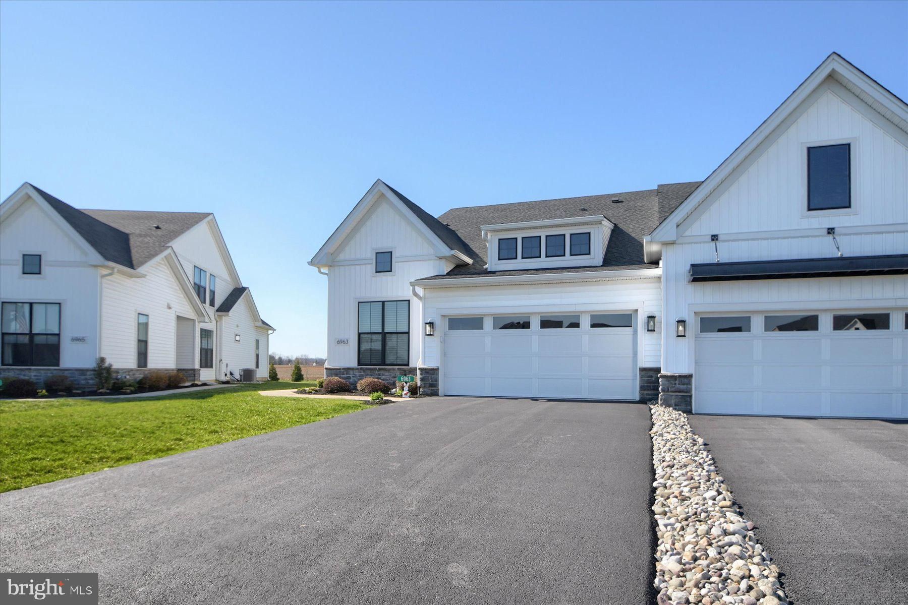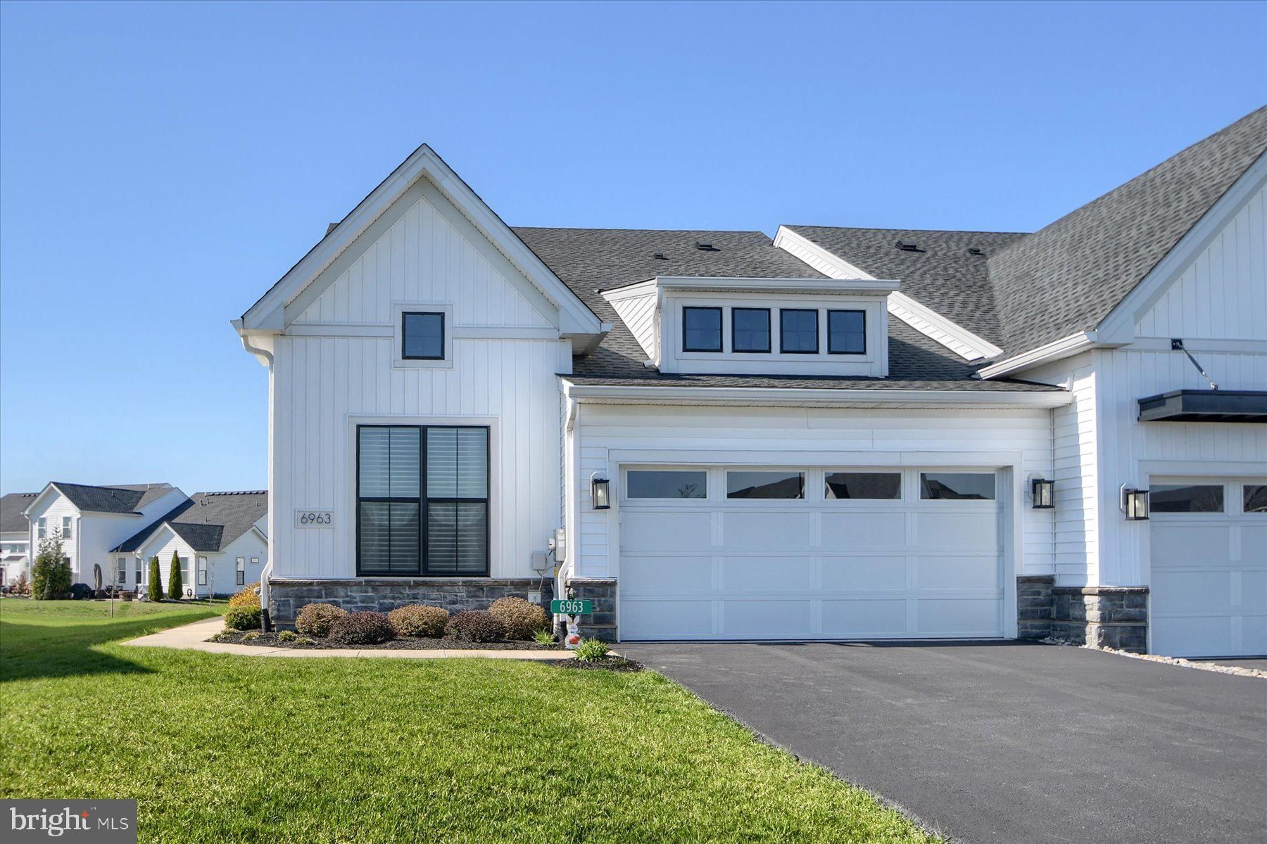 Impressive Stonewyck Modern Carriage House in Regency at Creekside Meadows 55+ gated community sitting on a premium lot! Boasting 9-foot ceilings throughout and a raised 11-foot-high ceiling in the great room, this home seamlessly combines comfort and sophistication. The expanded great room and master bedroom exude openness and grandeur. Upgraded gourmet kitchen featuring an expanded center island. With 2 beds, 3 full baths, and a finished loft that can serve as an office, family room, or 3rd bedroom, this home offers flexibility and space. Revel in upgraded interior finishes, including a gas fireplace in the great room, wide plank luxury vinyl flooring in the foyer, dining room, kitchen, and great room, stainless steel appliances, granite countertops, and ceramic tile backsplash in the open kitchen. The first-floor primary bedroom suite features a tray ceiling, luxurious fully tiled oversized bath retreat, and a nicely sized walk-in closet. Outside, the professionally landscaped paver patio is sure to impress. Enjoy the community's private clubhouse and outdoor amenities and embrace the low-maintenance lifestyle it offers. Don't miss this opportunity!